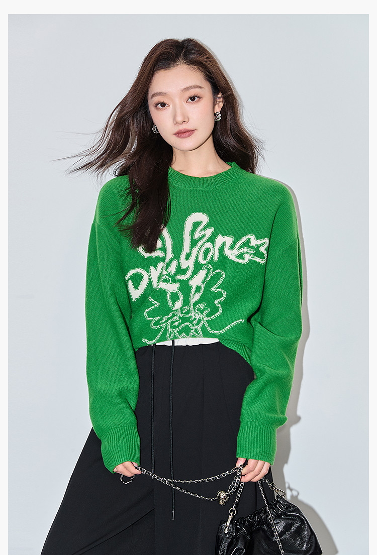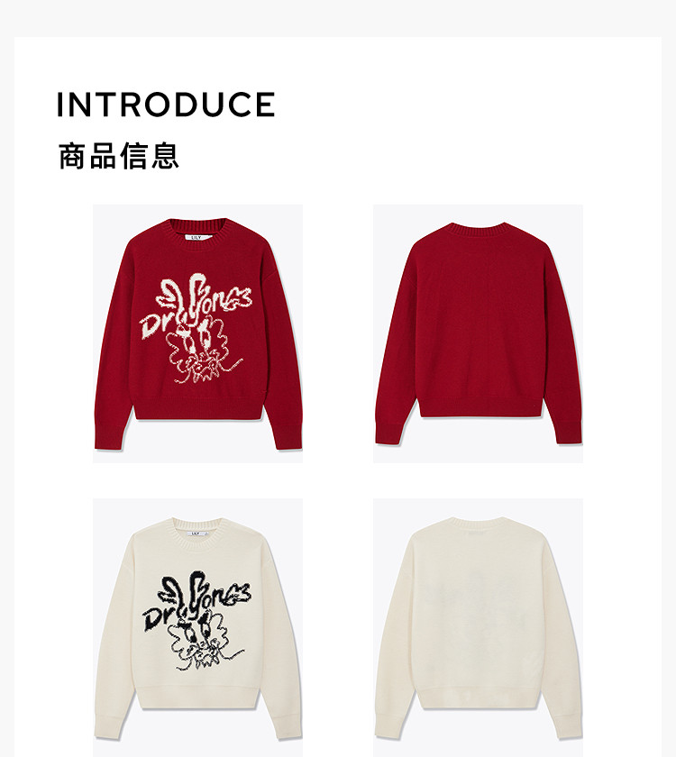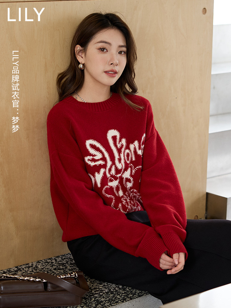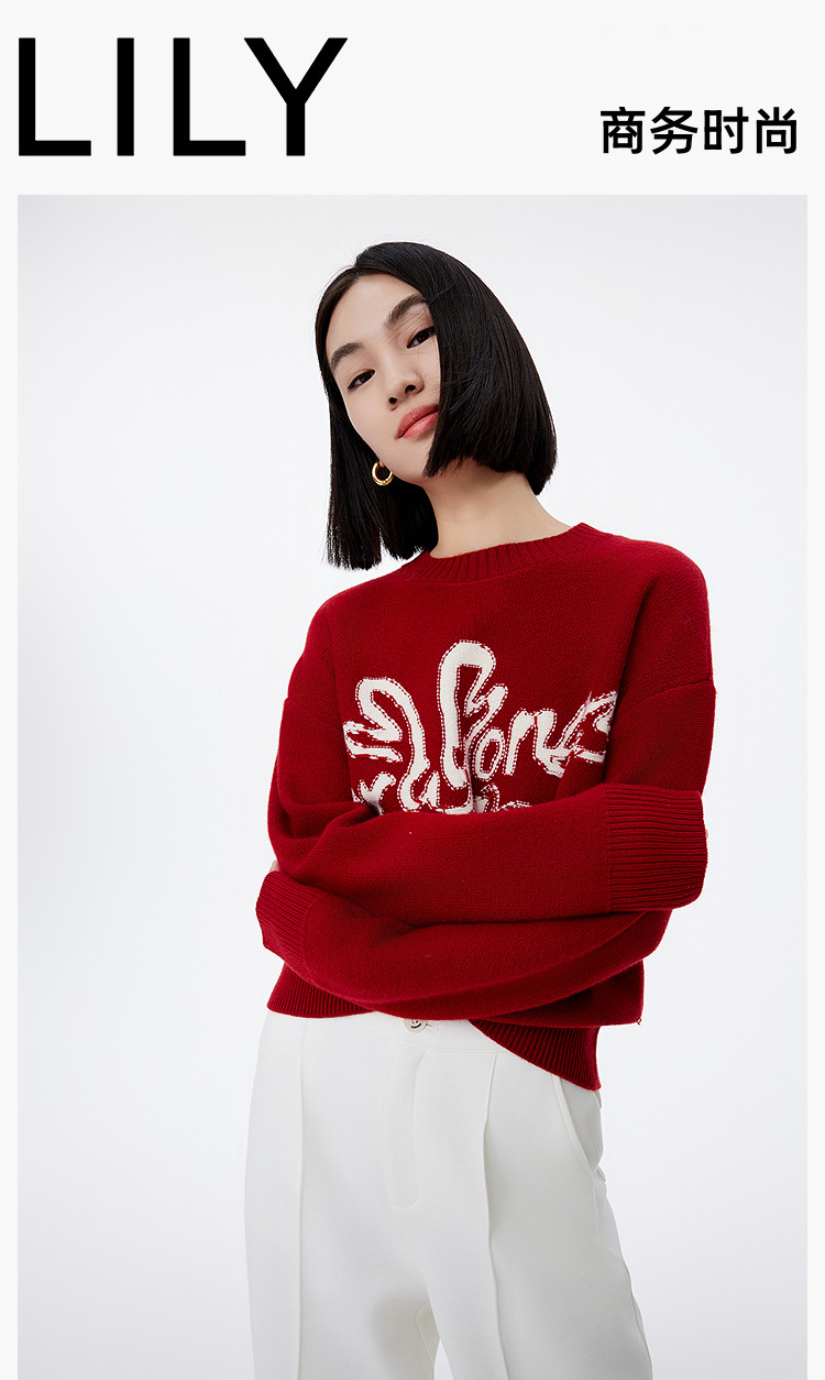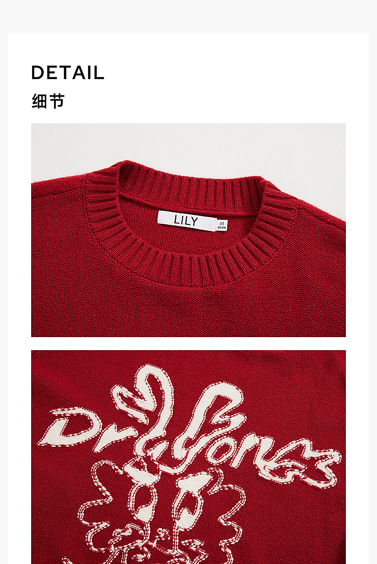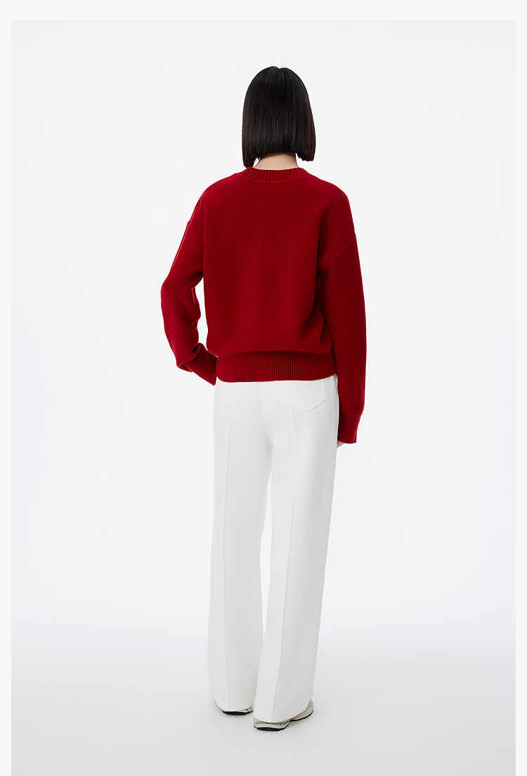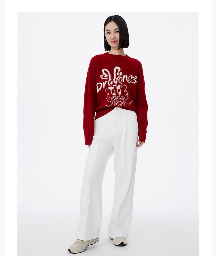商品名称:【龙年衣】春季款季拜年红色毛衫全绵羊毛针织衫毛衣女上衣 769691