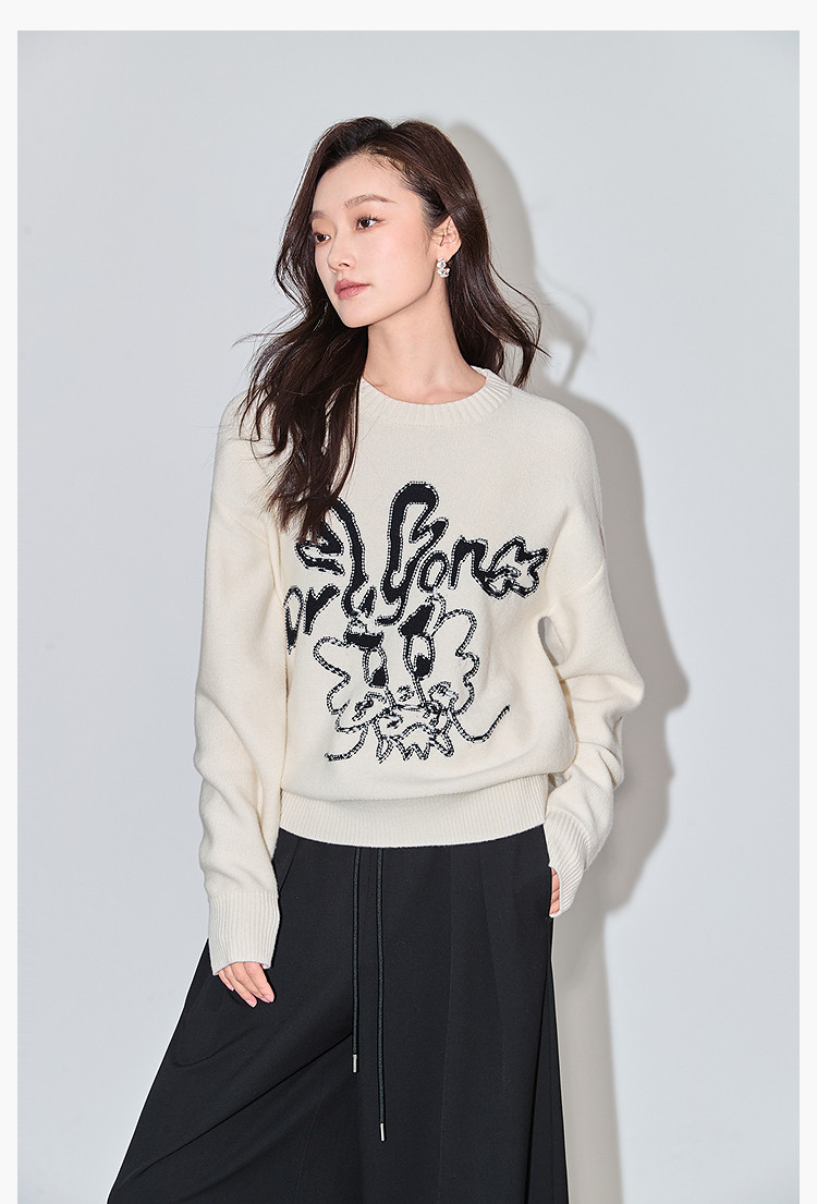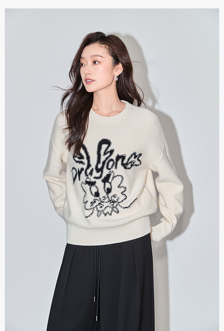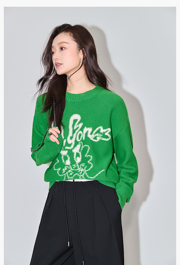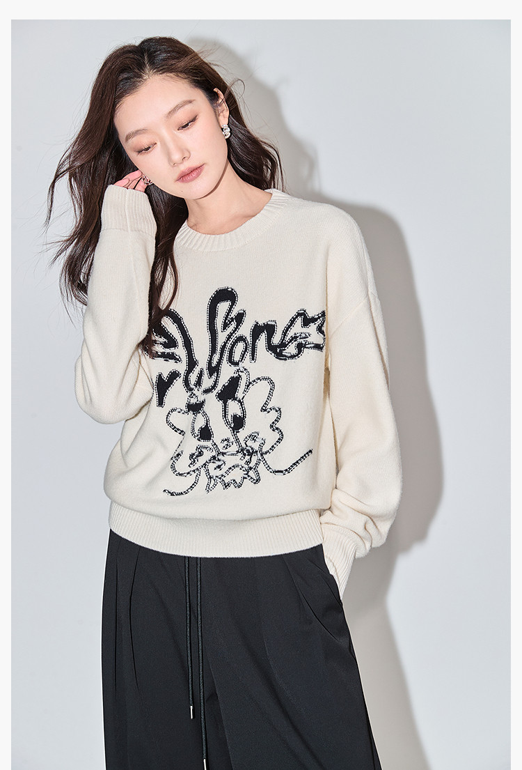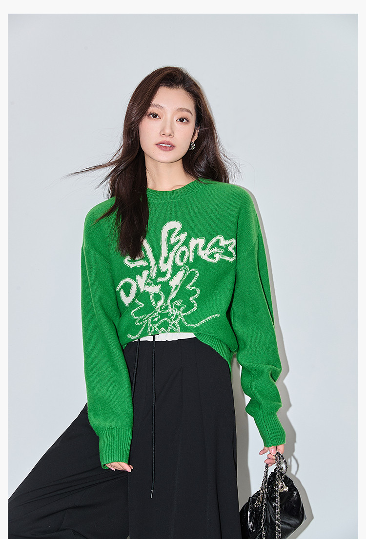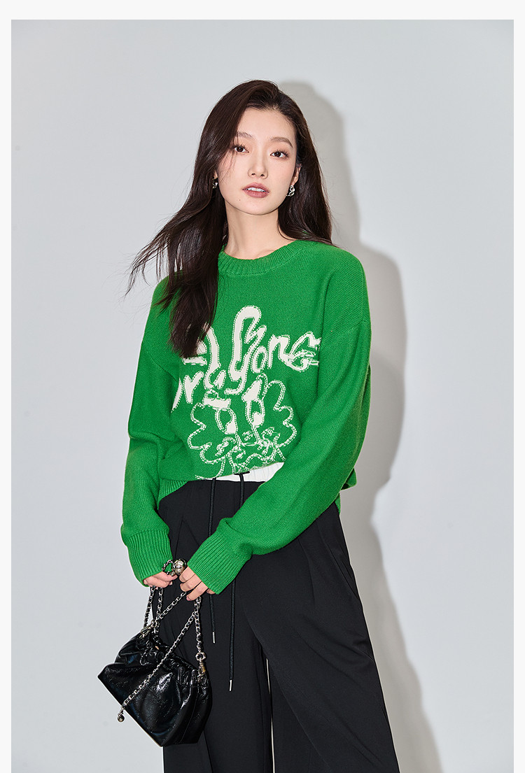 商品名称:【龙年衣】春季款季拜年红色毛衫全绵羊毛针织衫毛衣女上衣 769691