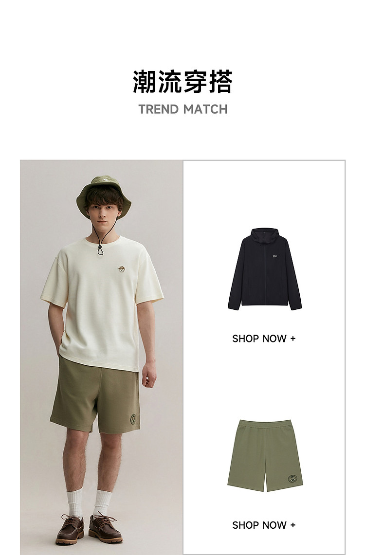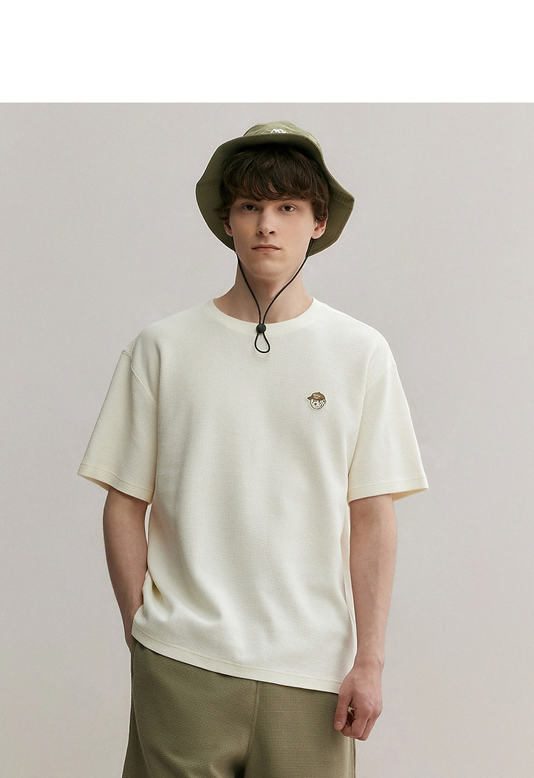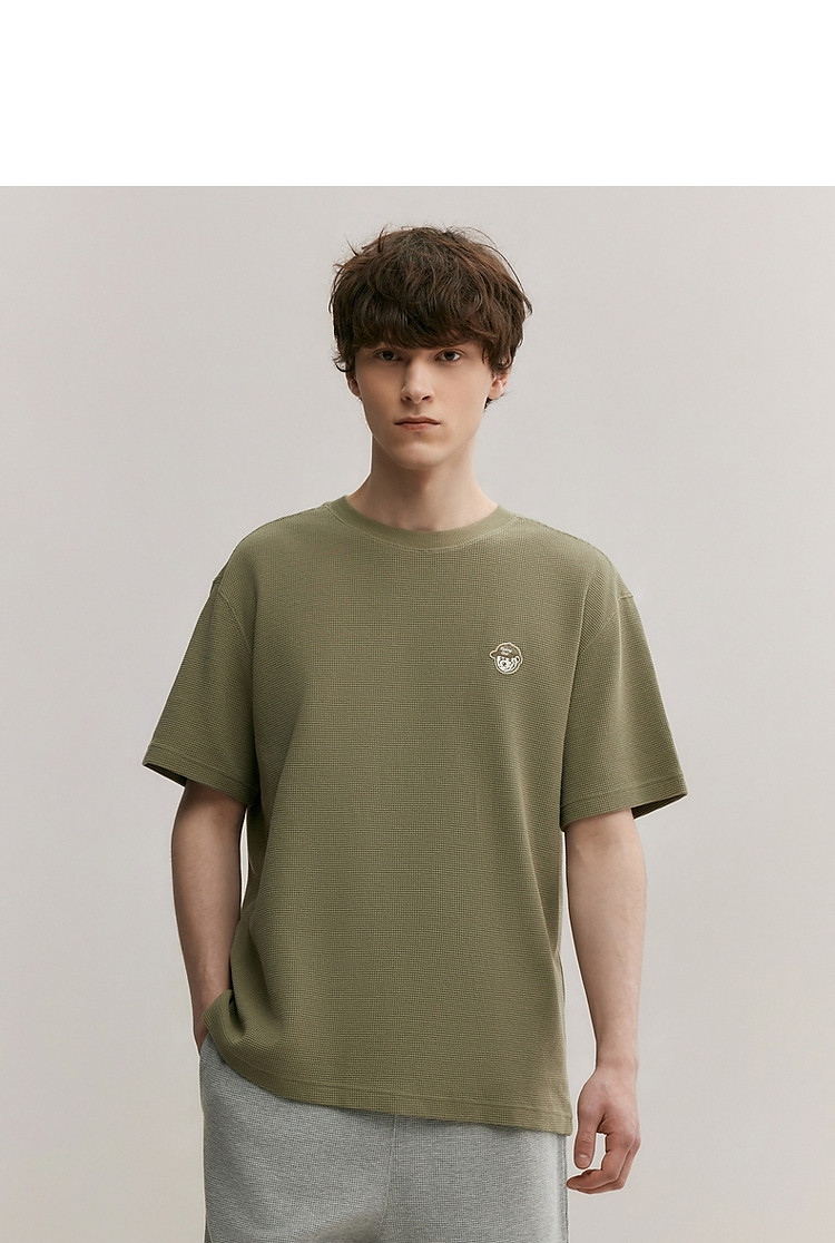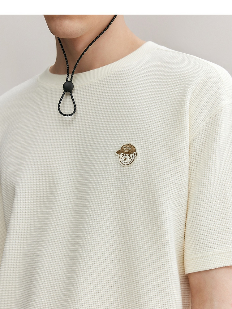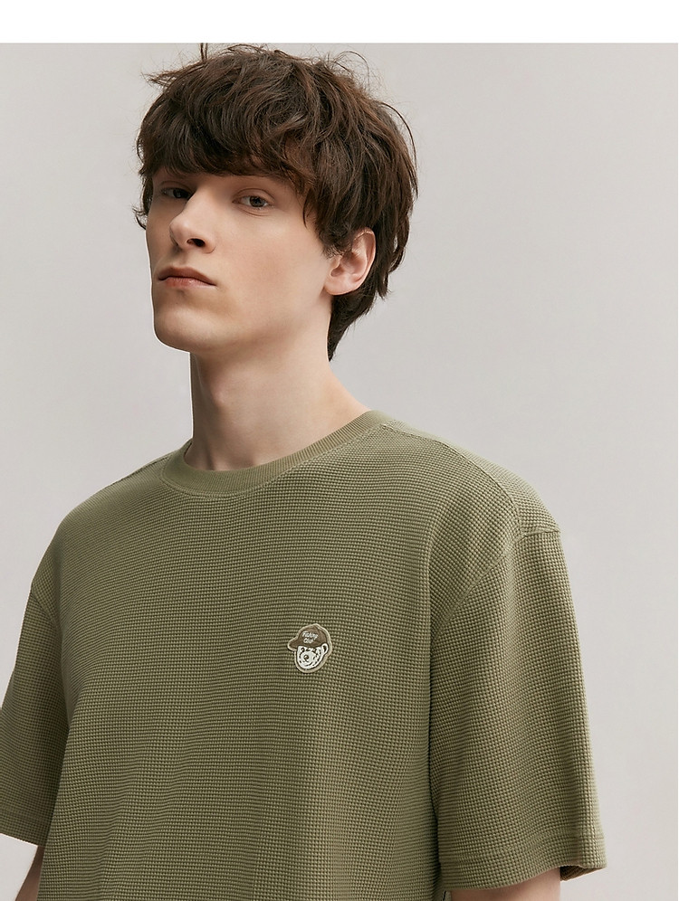 商品名称:小熊男装简约时尚潮流圆领T恤男夏季休闲宽松华夫格短袖情侣t恤 137153