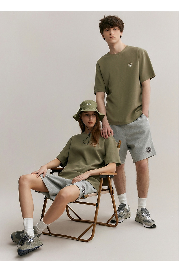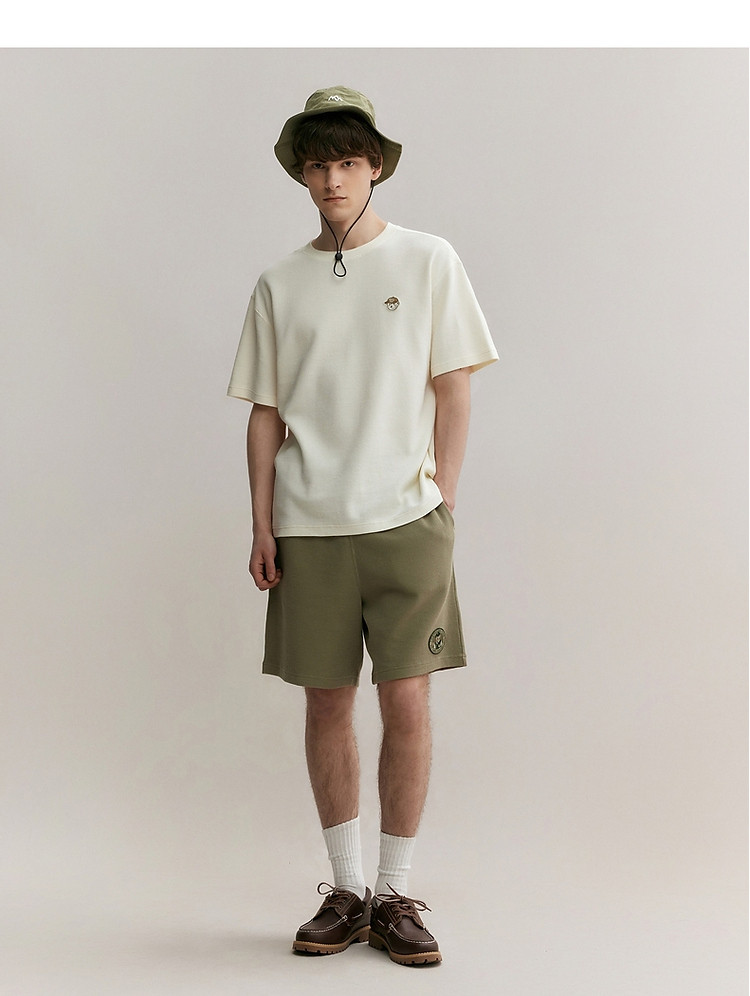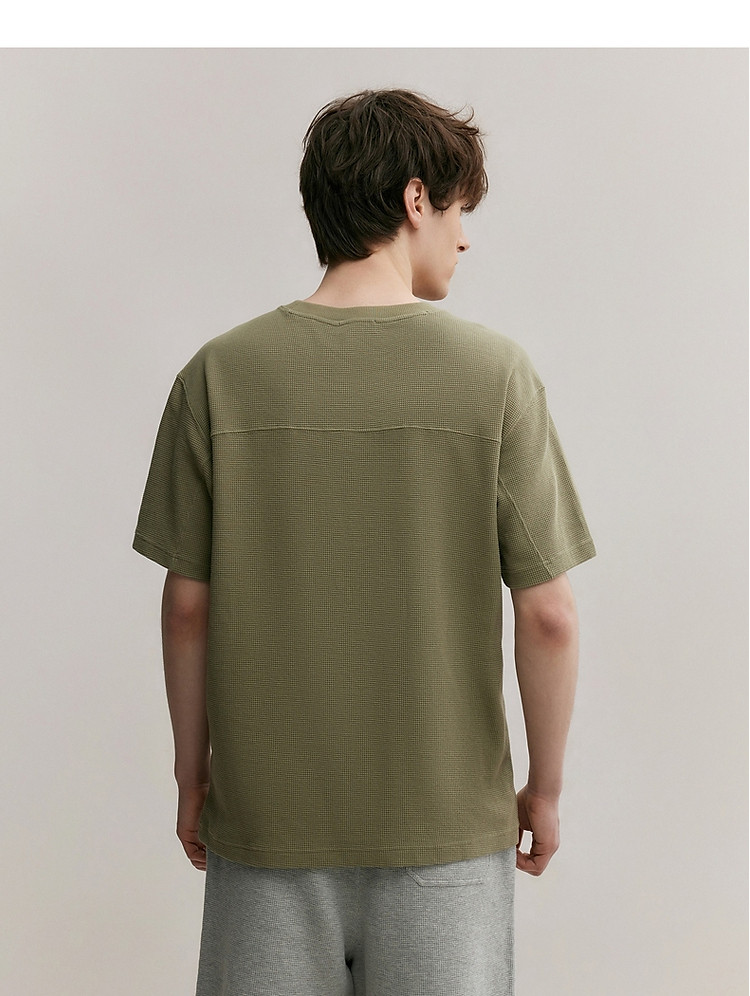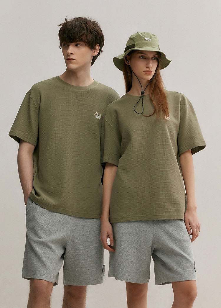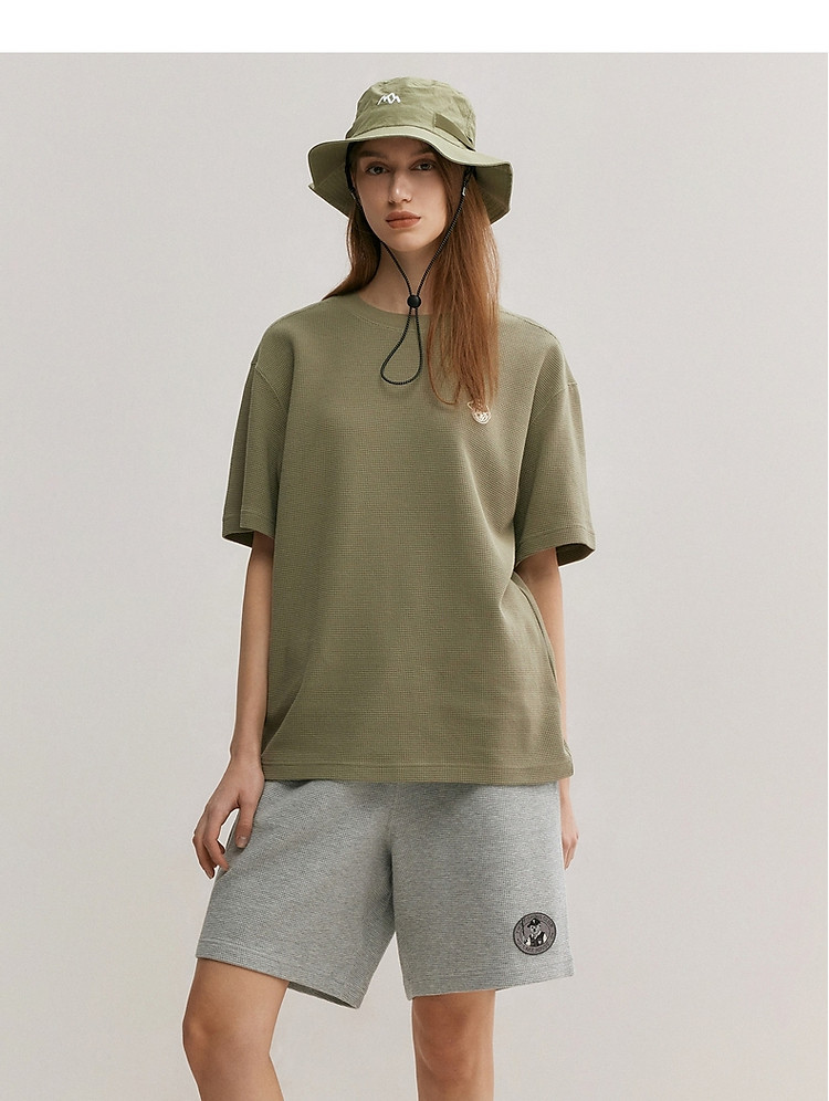 小熊男装简约时尚潮流圆领T恤男夏季休闲宽松华夫格短袖情侣t恤 137153