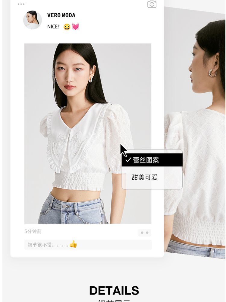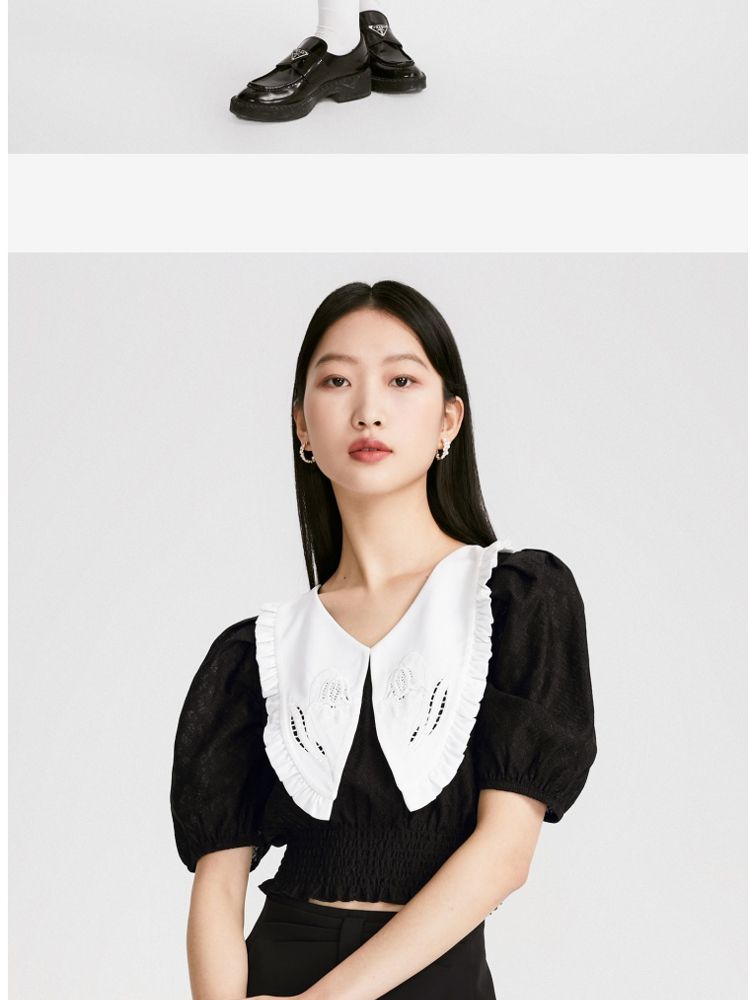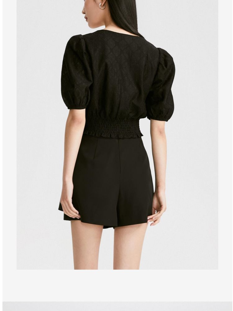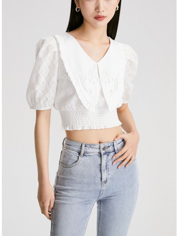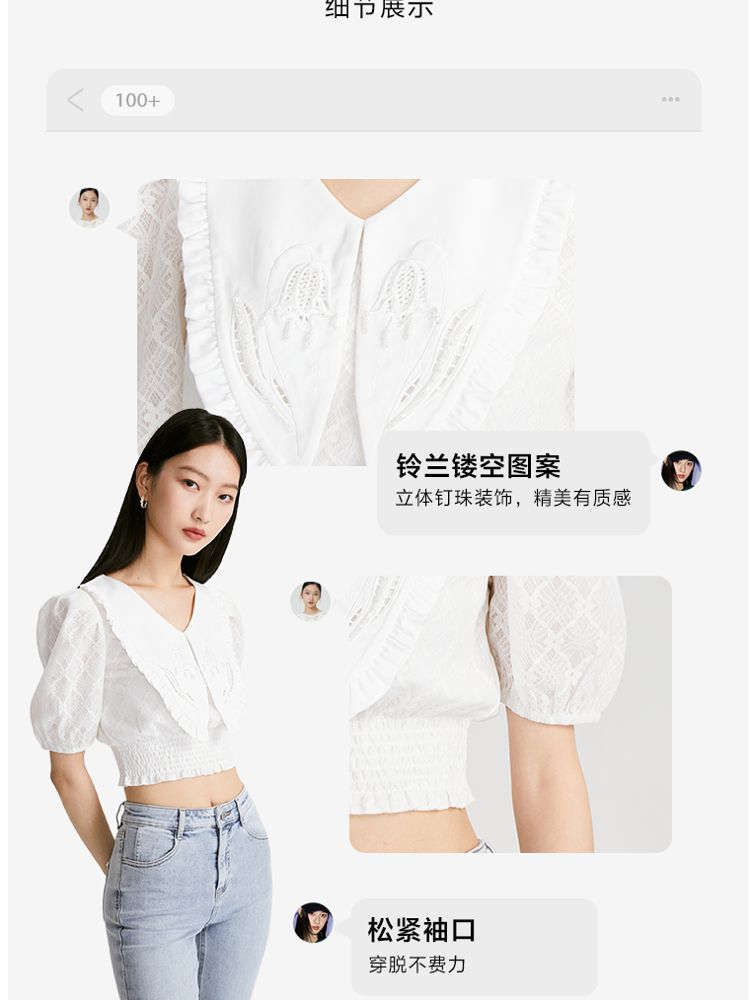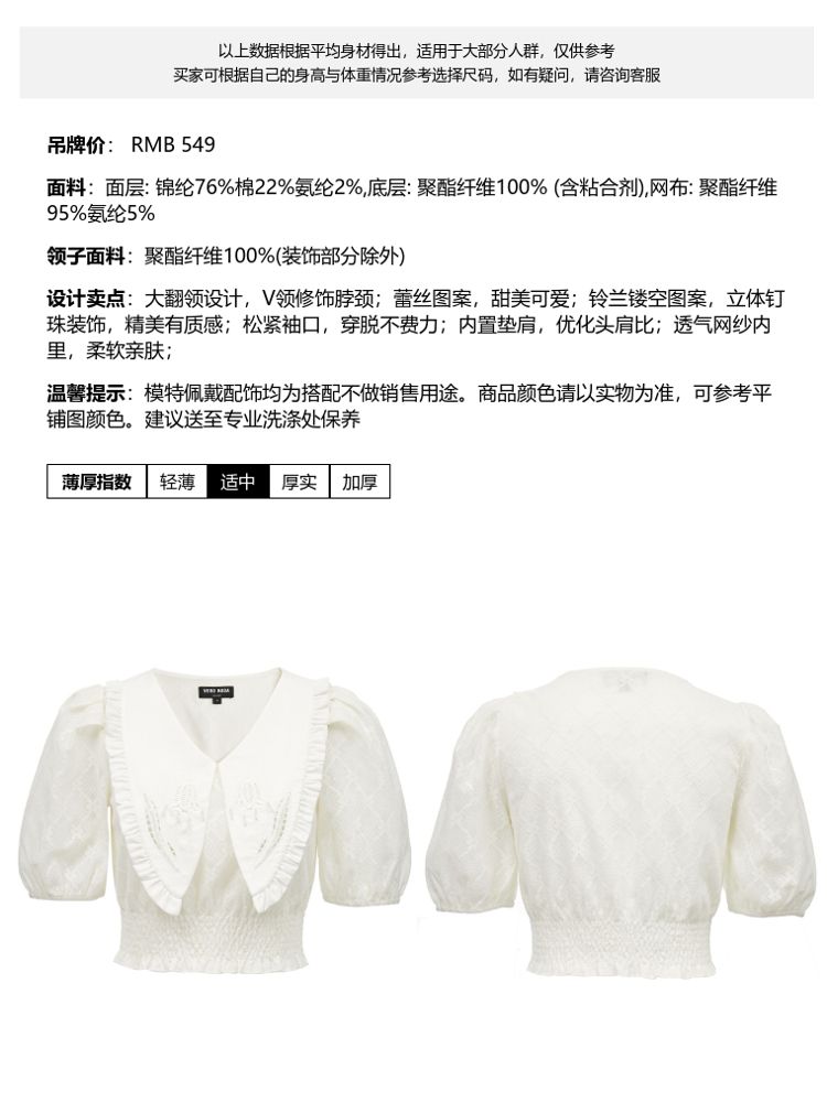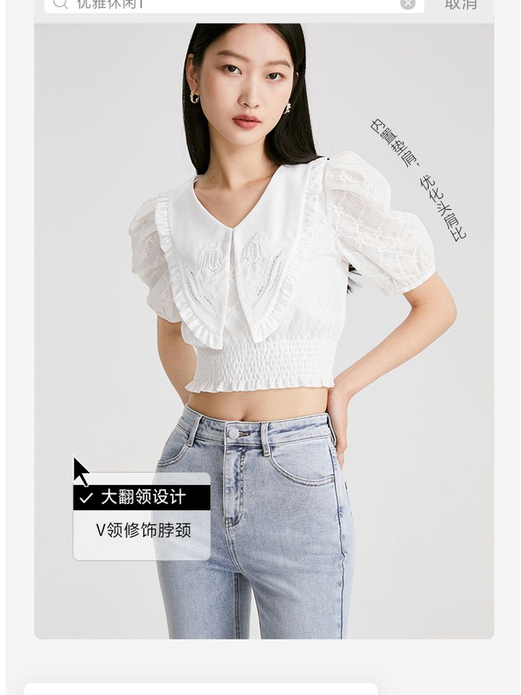 商品名称:【蕾丝娃娃领】春夏专柜款夏优雅甜美泡泡袖五分袖雪纺衫女百搭 995473
