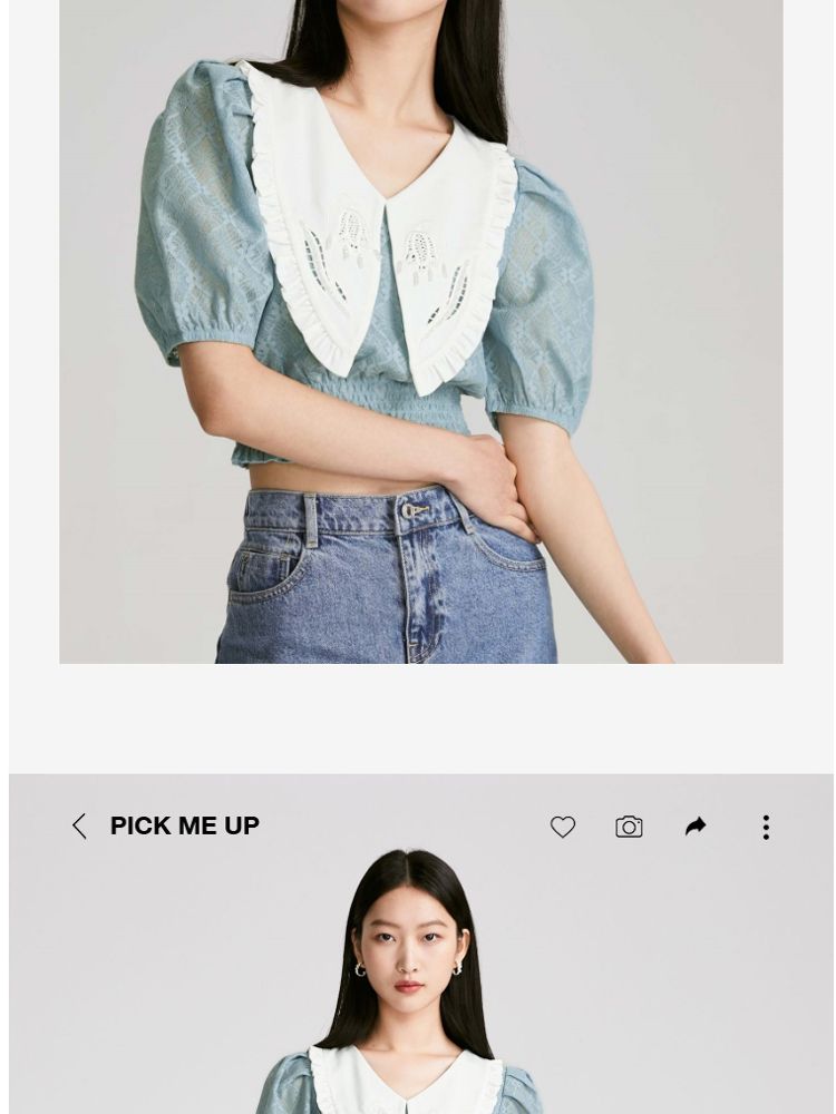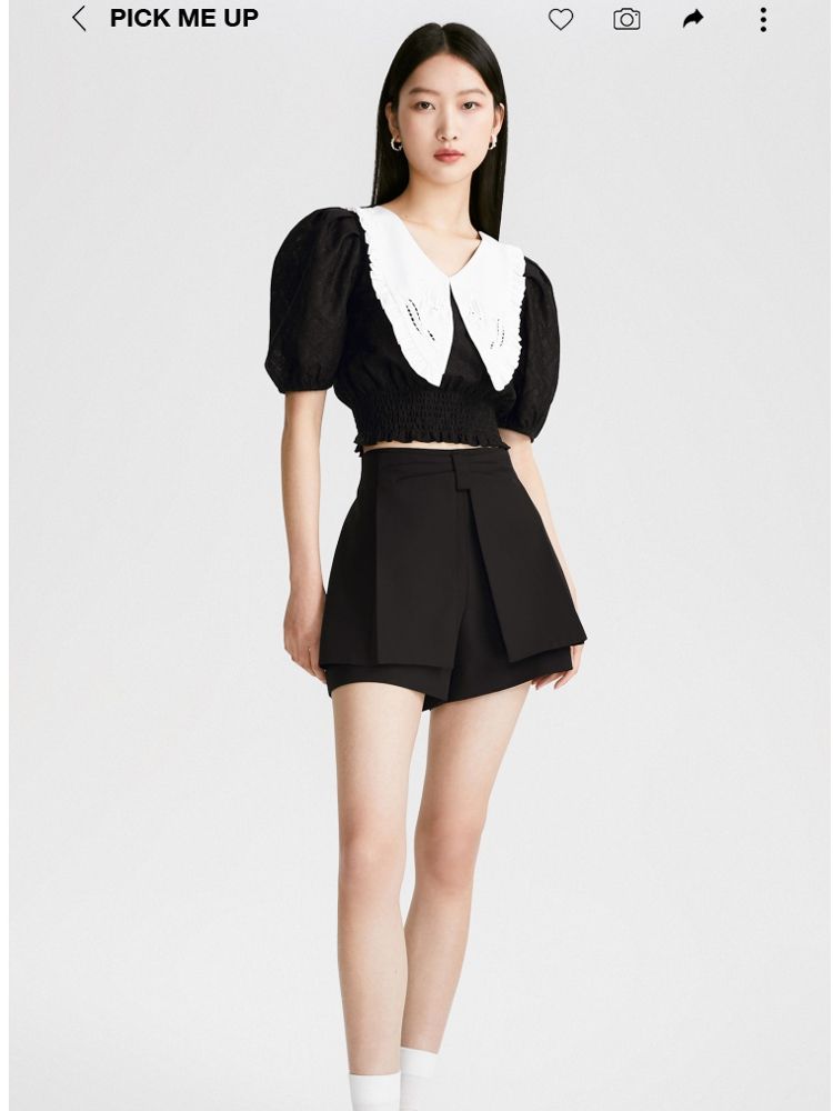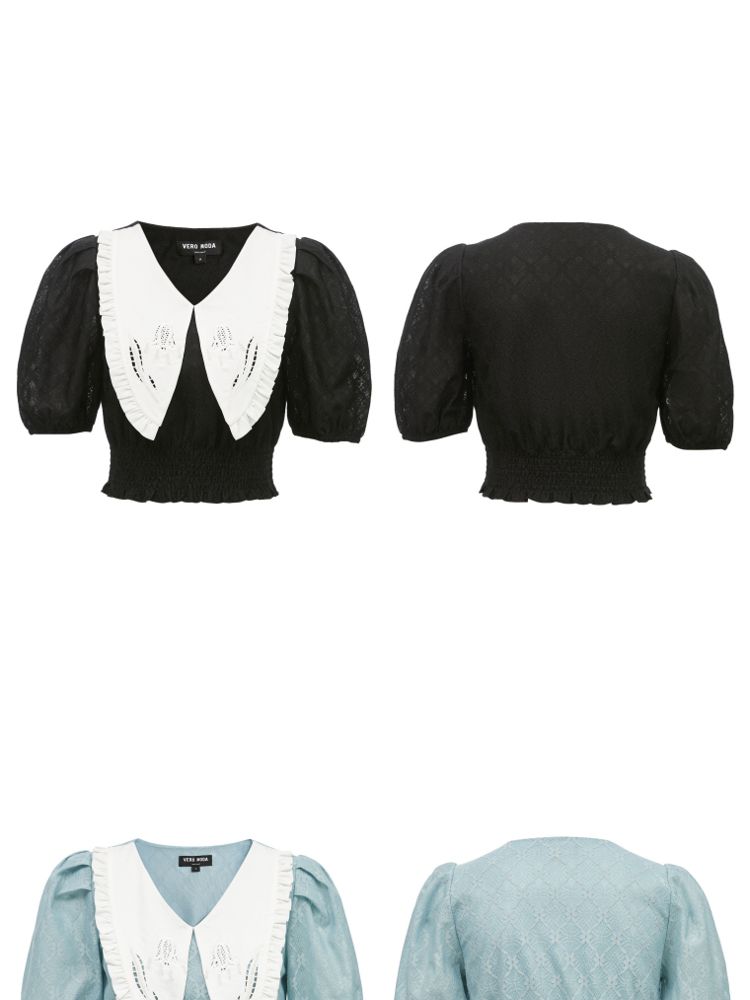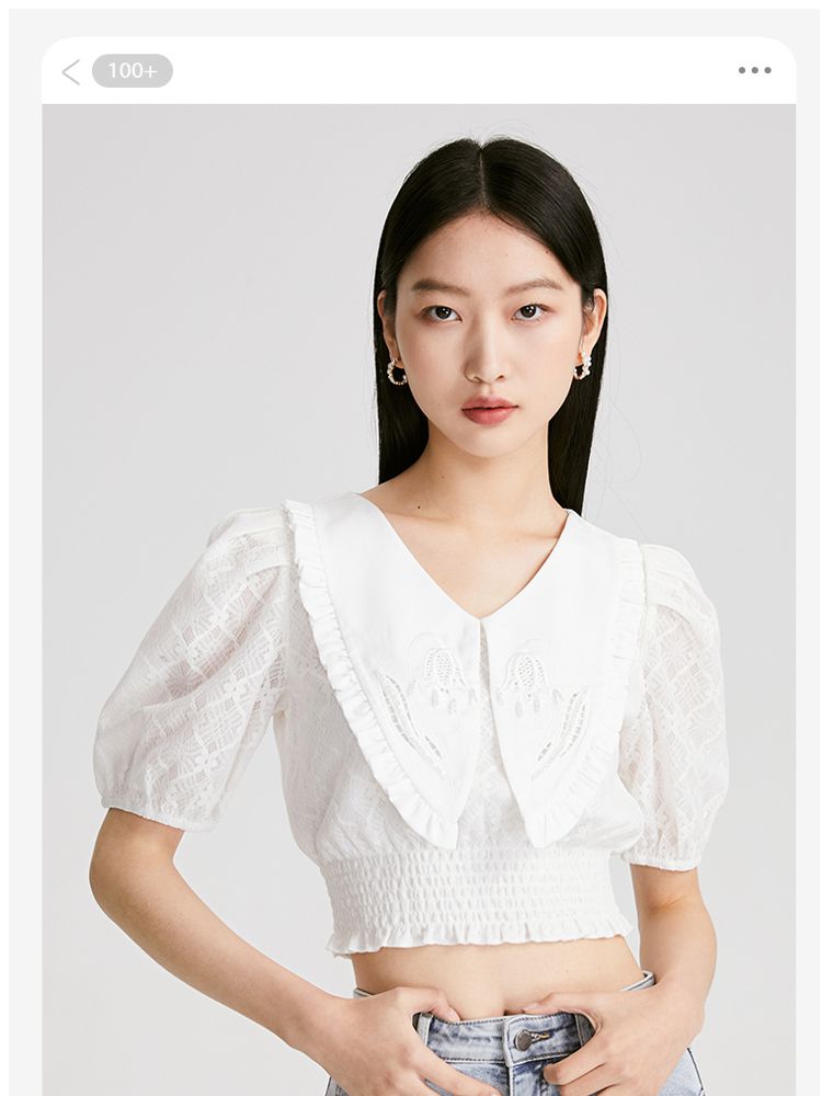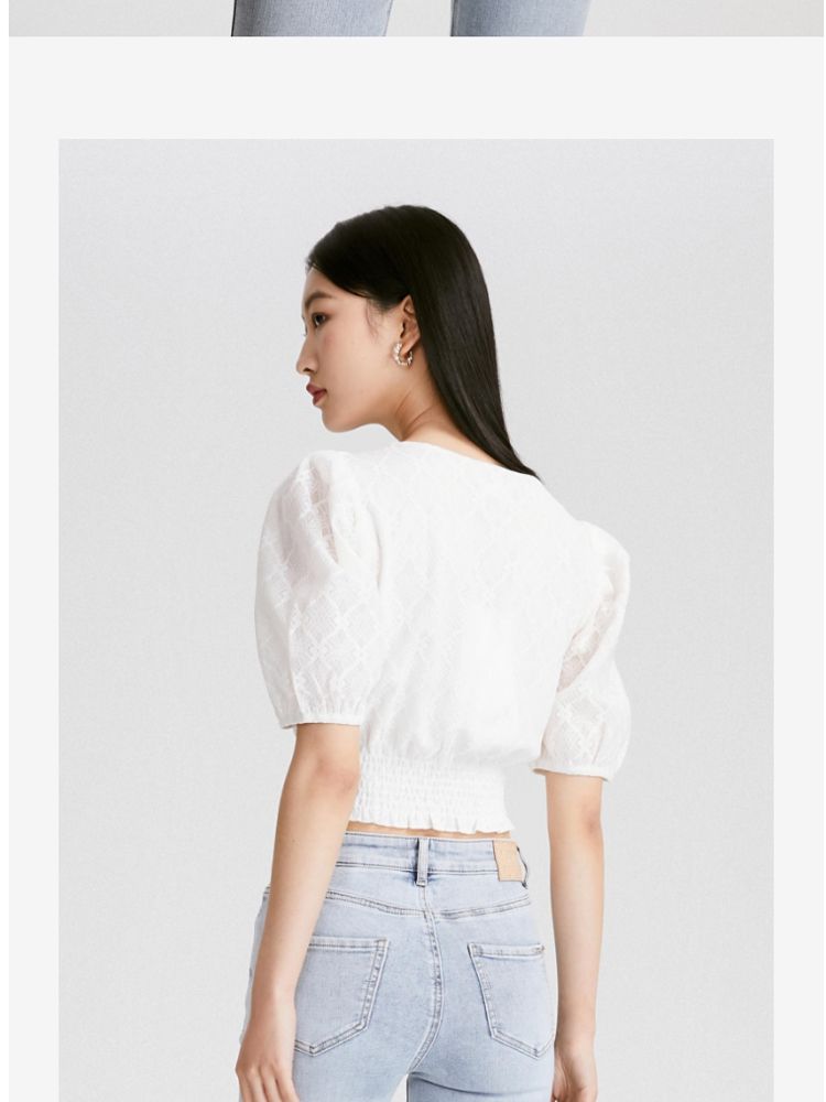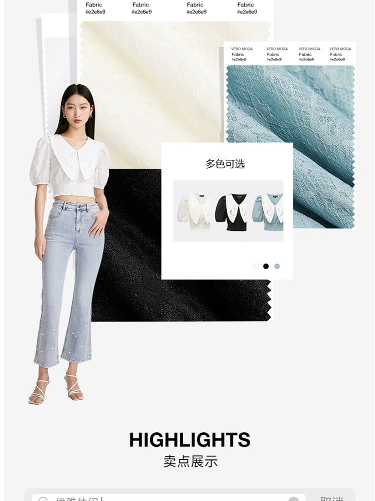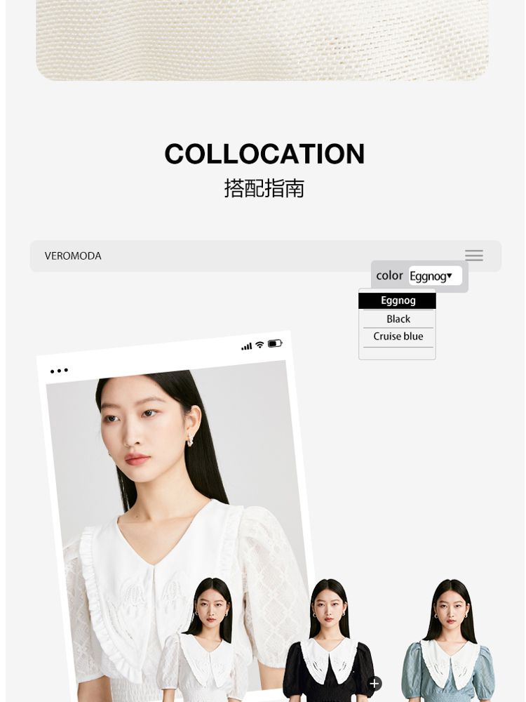 商品名称:【蕾丝娃娃领】春夏专柜款夏优雅甜美泡泡袖五分袖雪纺衫女百搭 995473