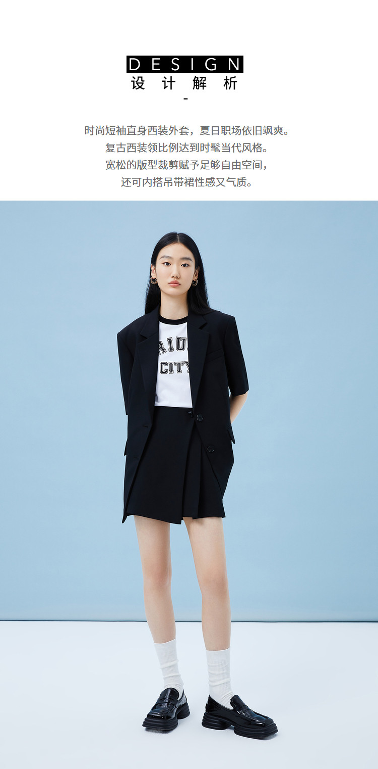 商品名称:【商场同款】春季西服女外套气质通勤复古单排扣短袖西装外套女 716187