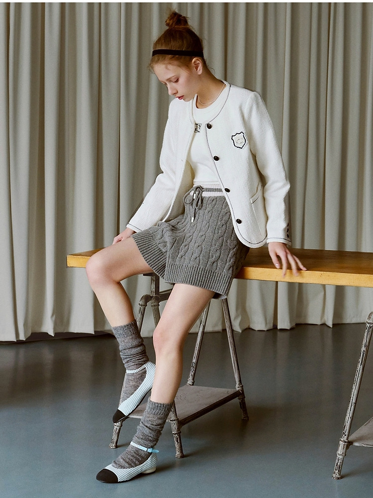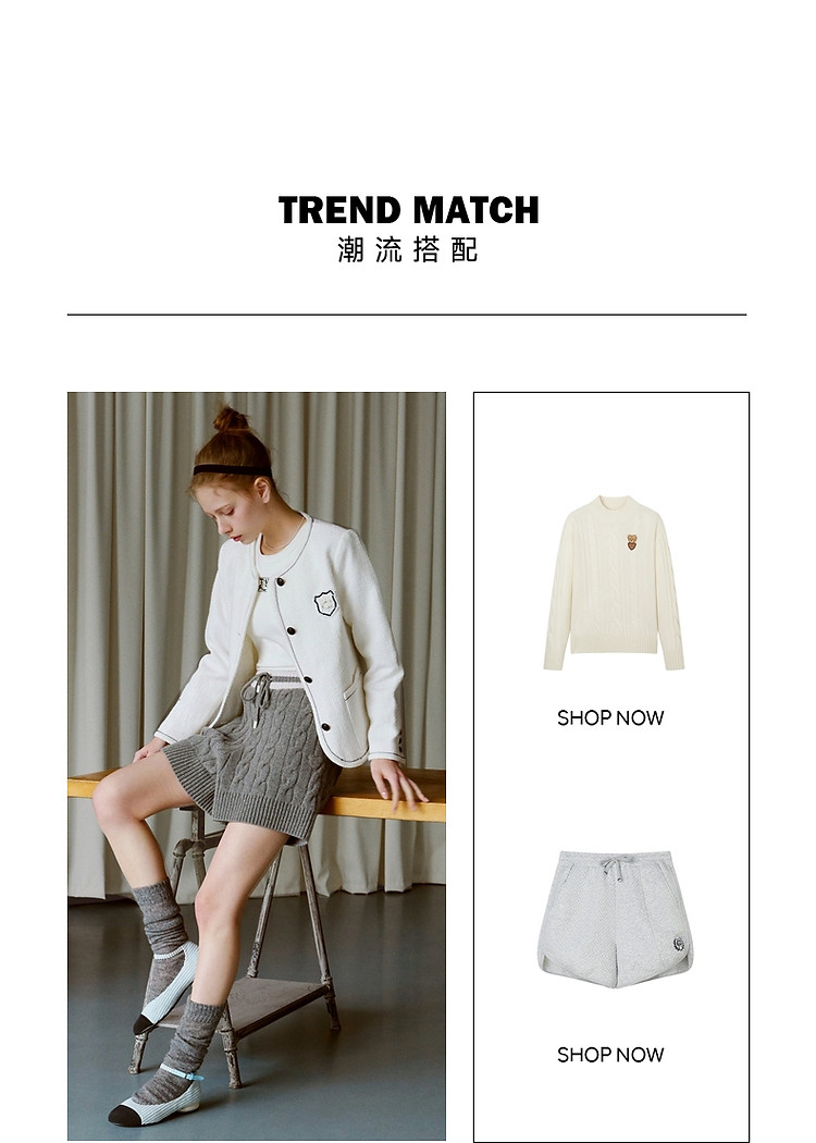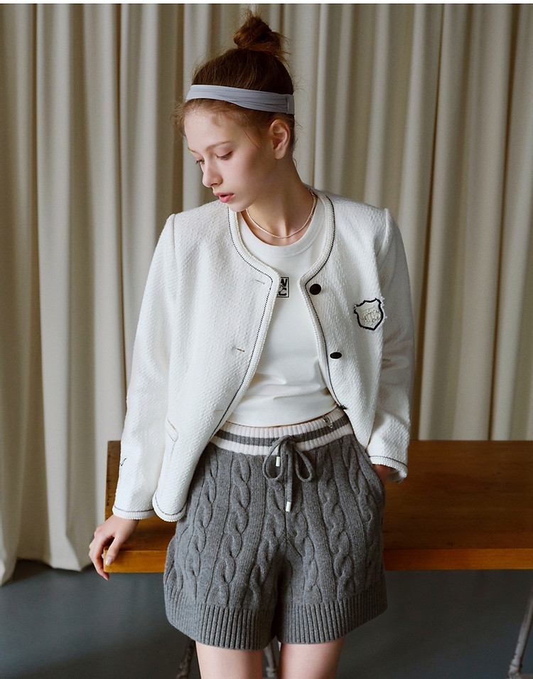 商品名称:小熊春秋款简约韩系小香风外套撞色V领上衣女 209345