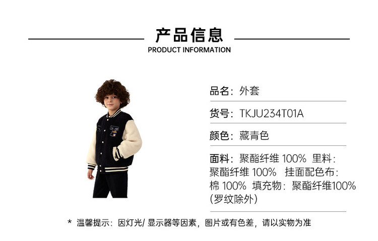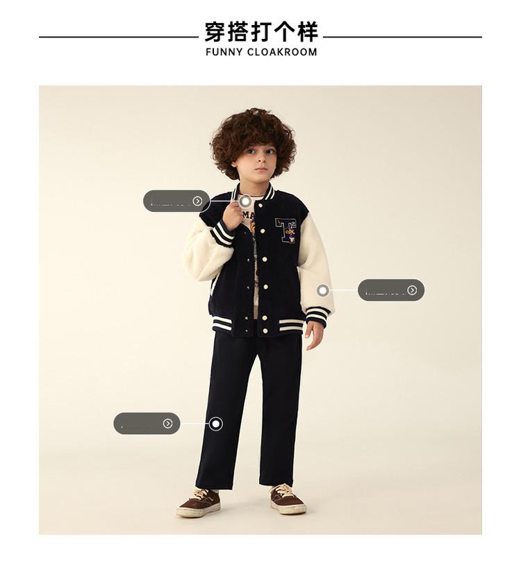 商品名称:小熊童装春季款男童仿羊羔绒长袖棒球服 536065