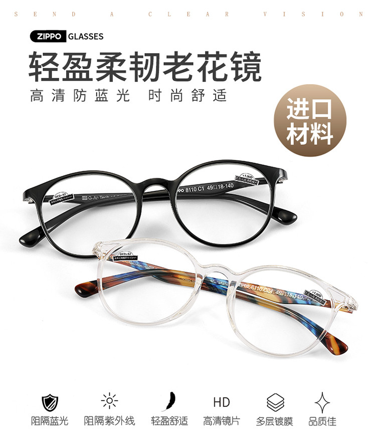 商品名称:新颖镜框老花镜男高清超轻显年轻老人老花眼镜 191262