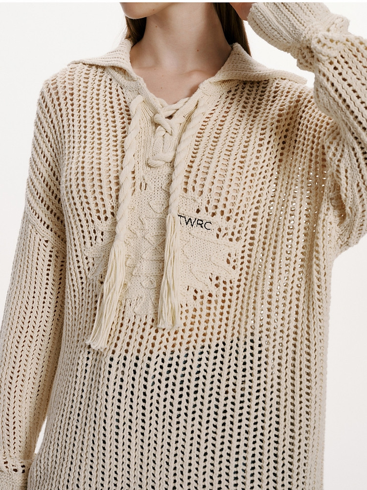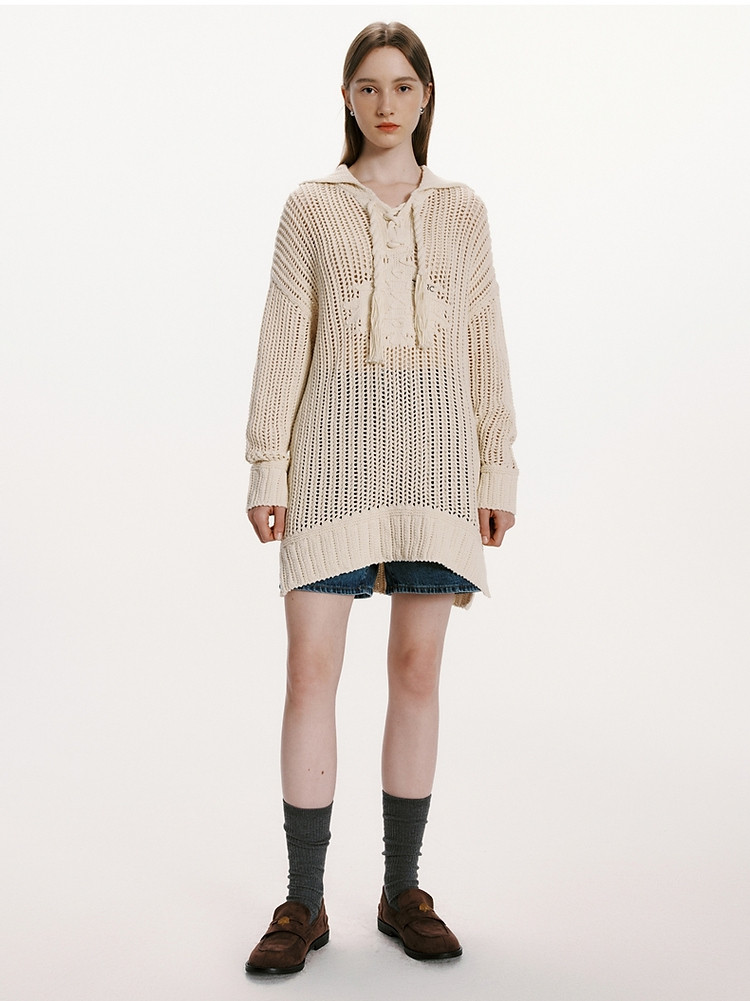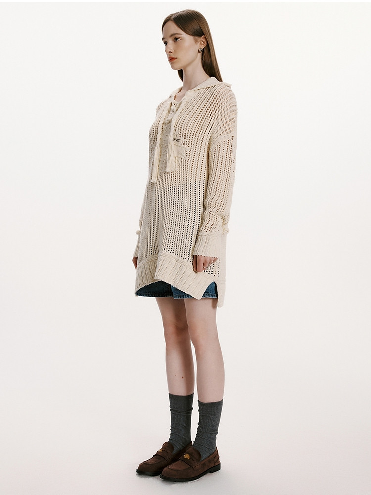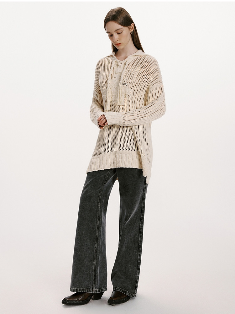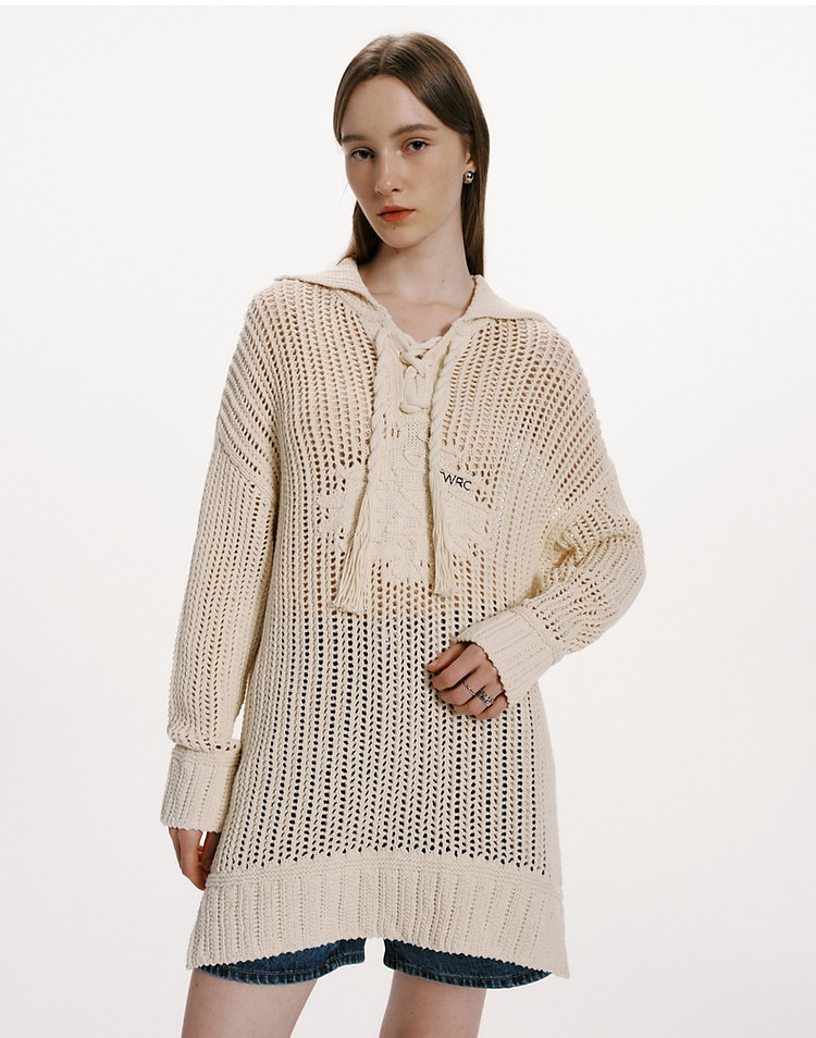 商品名称:小熊女装春秋款针织衫宽松镂空钩花套头毛衣女 246529