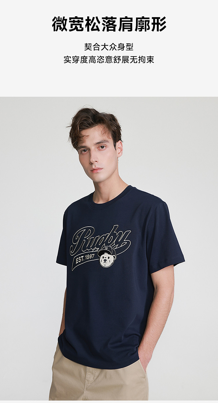 商品名称:T恤小熊男装简约运动夏季t恤男款时尚潮流潮牌休闲棉质男式t恤 966081