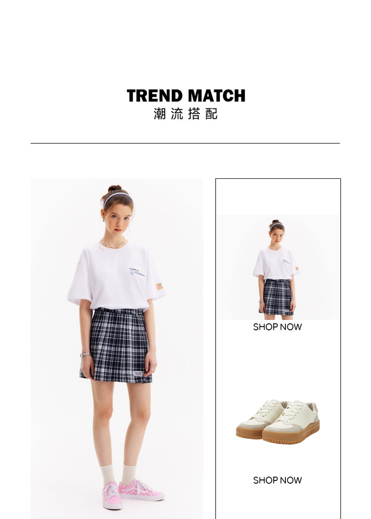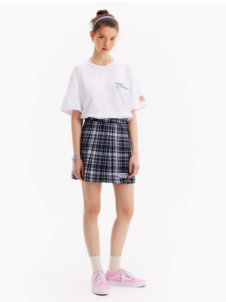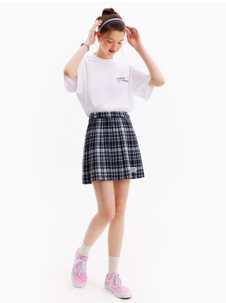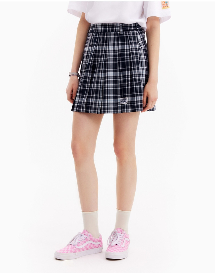 商品名称:小熊夏季复古学院风简洁格纹百褶裙半身裙女 959681
