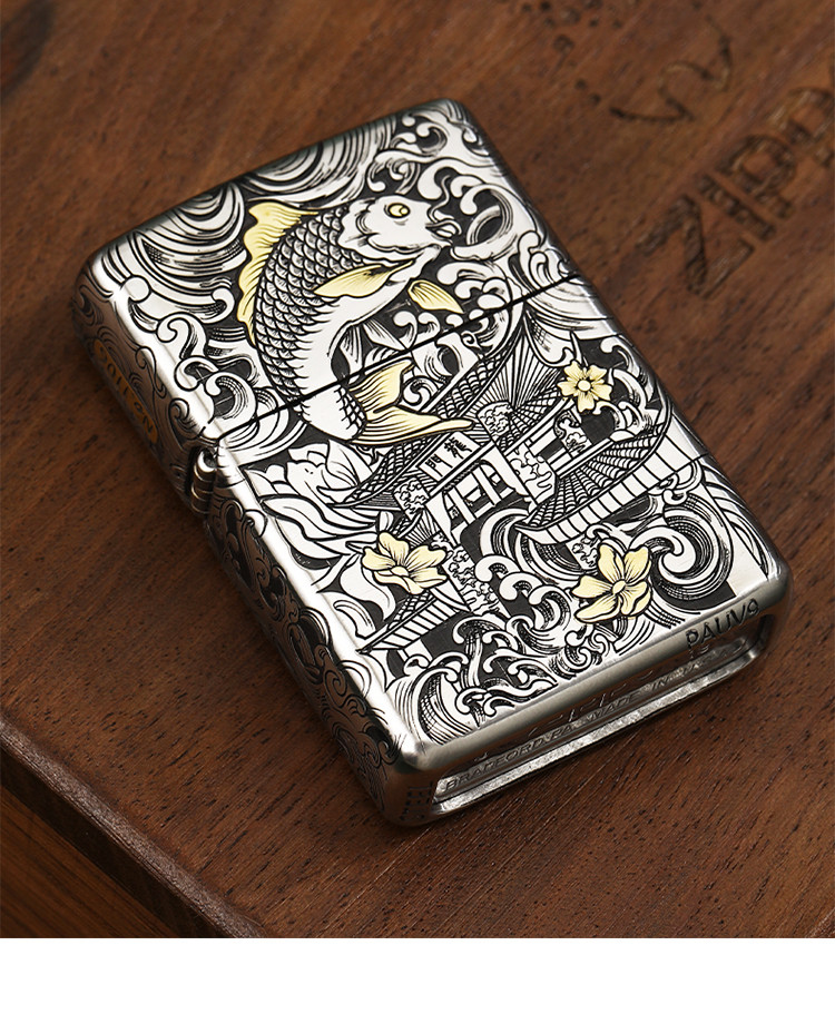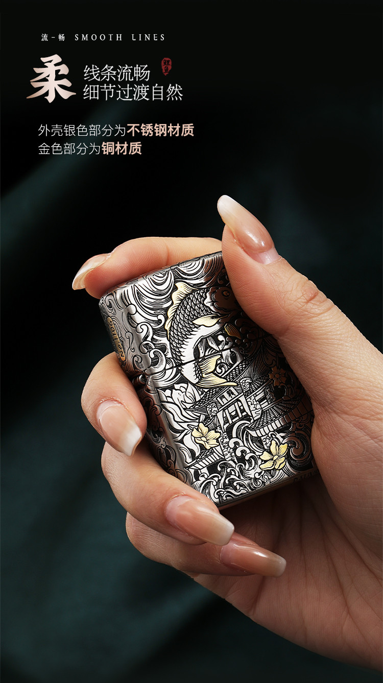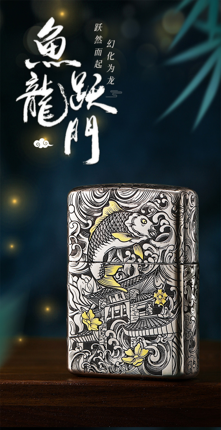 打火机原装正品错金套壳鱼跃龙门煤油防风高级感男士礼物礼品 768222