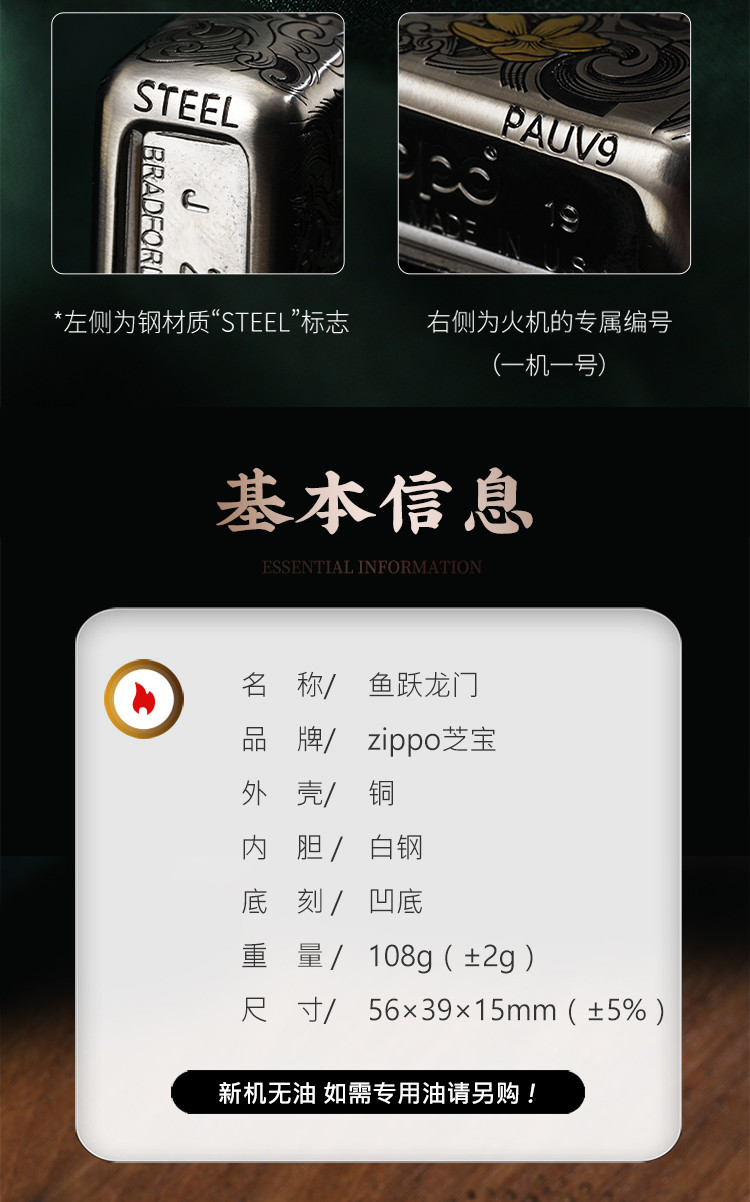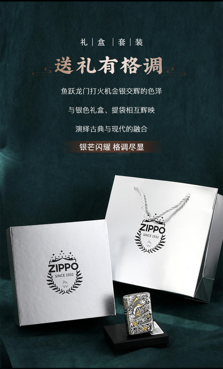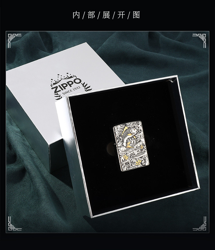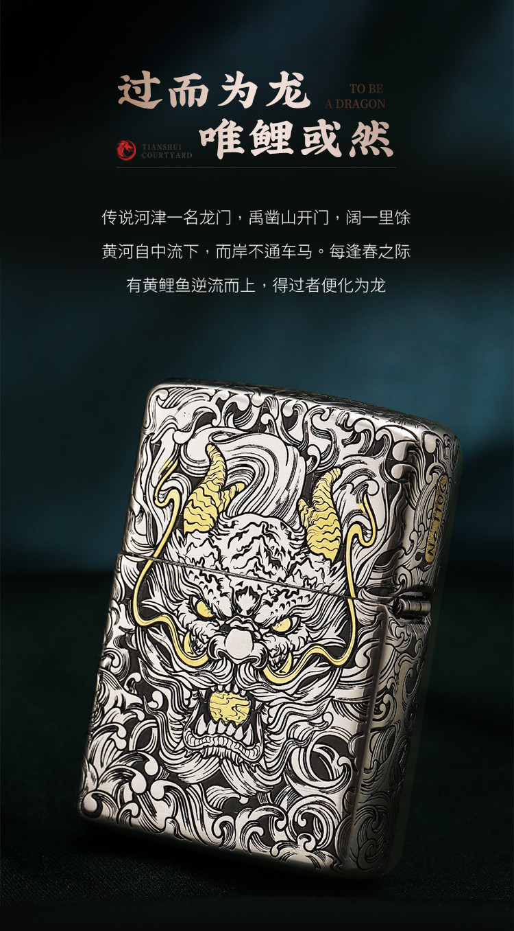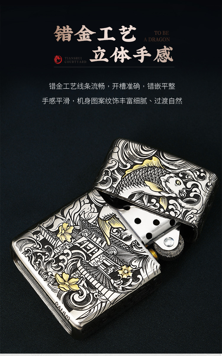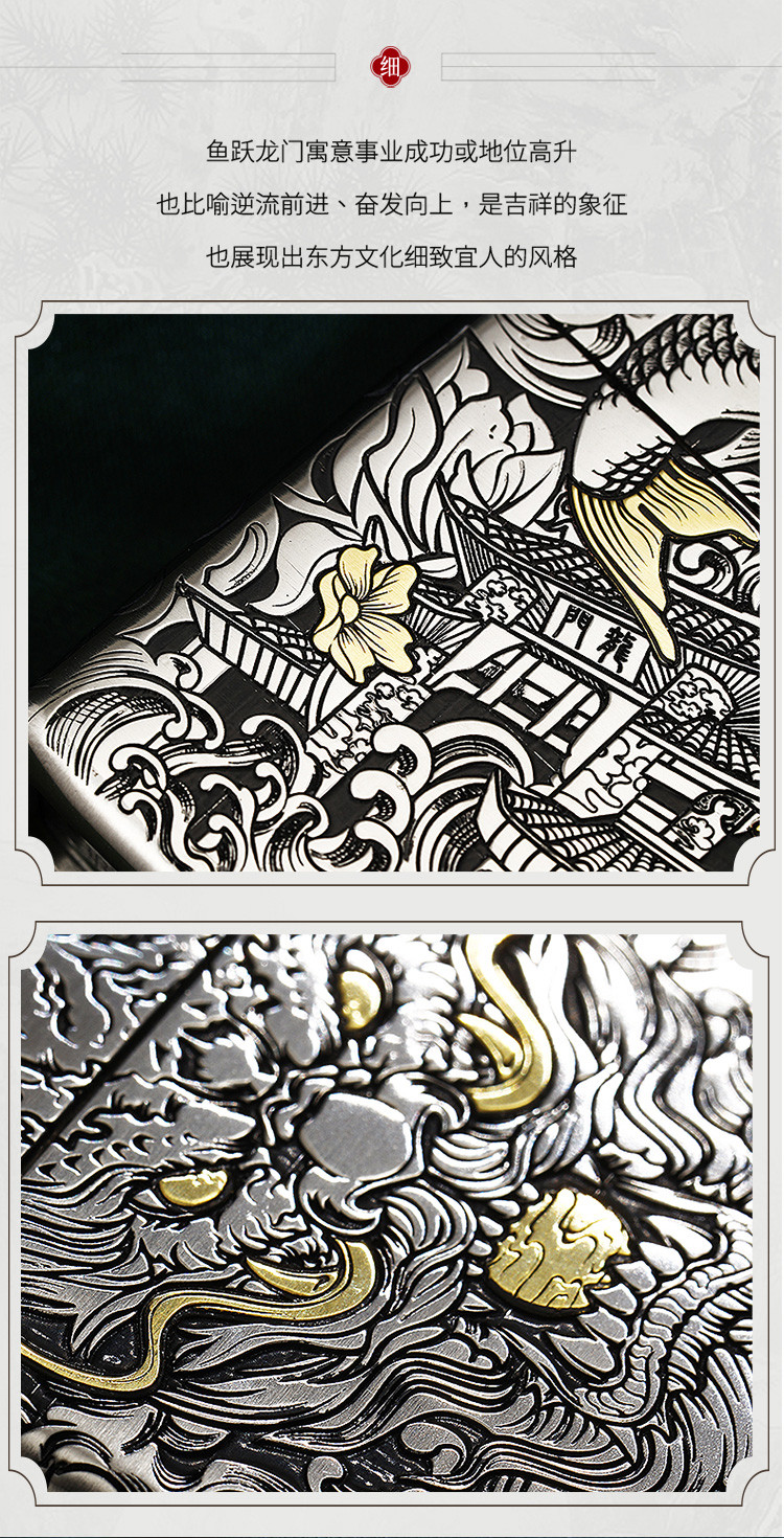 商品名称:打火机原装正品错金套壳鱼跃龙门煤油防风高级感男士礼物礼品 768222