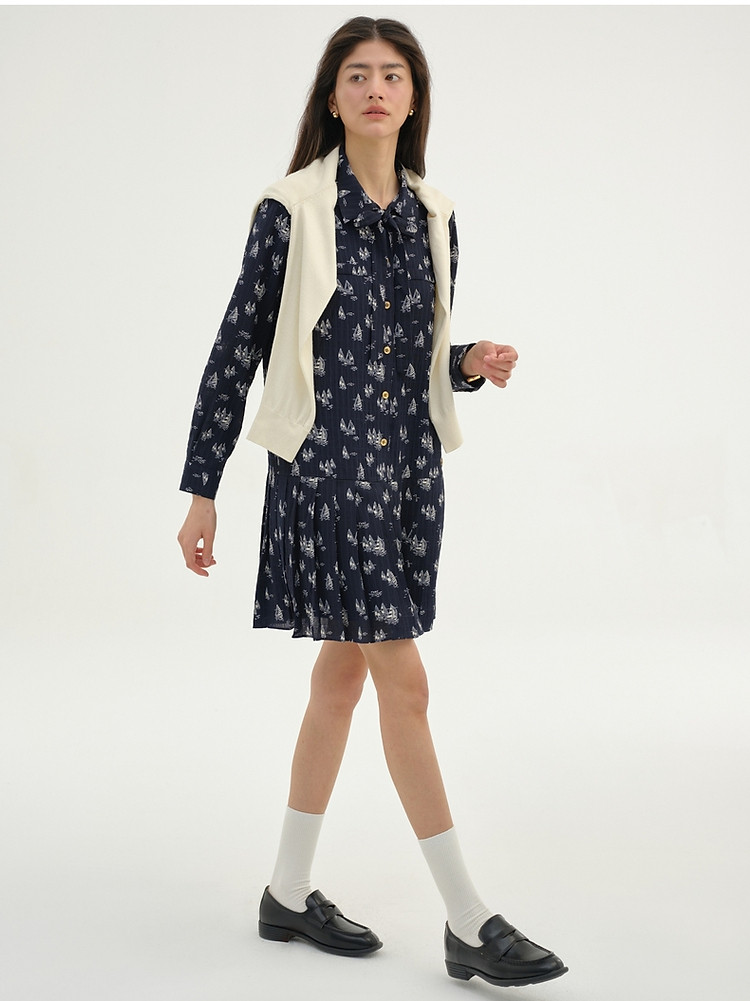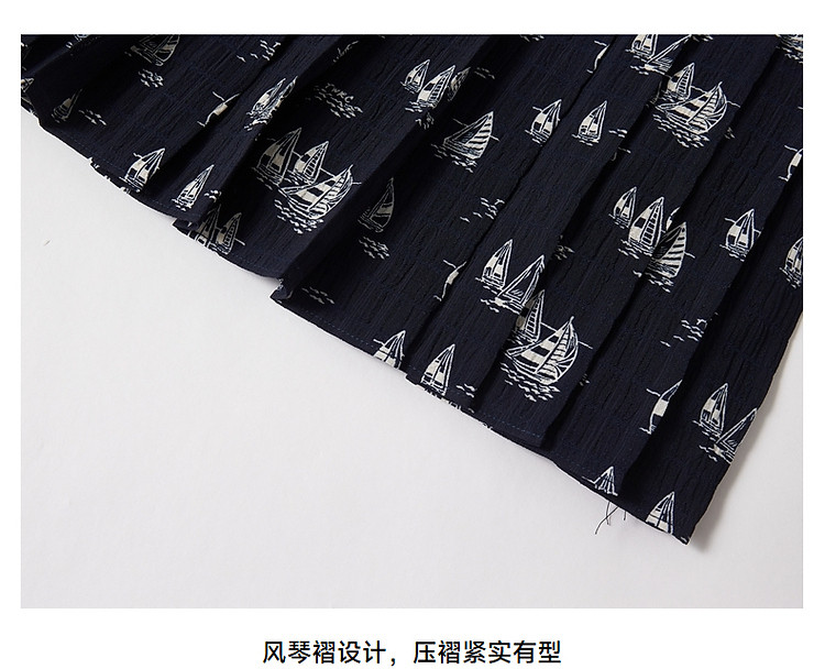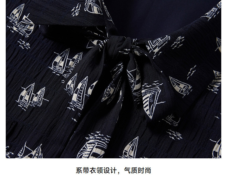 商品名称:雪纺连衣裙女夏季百褶满印长袖连衣裙短裙女 384833
