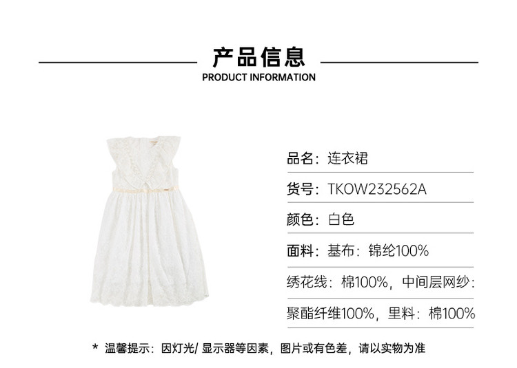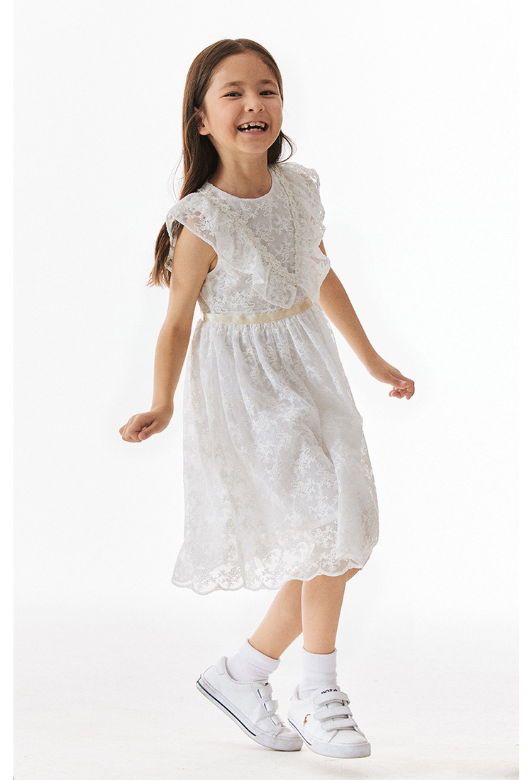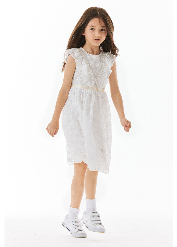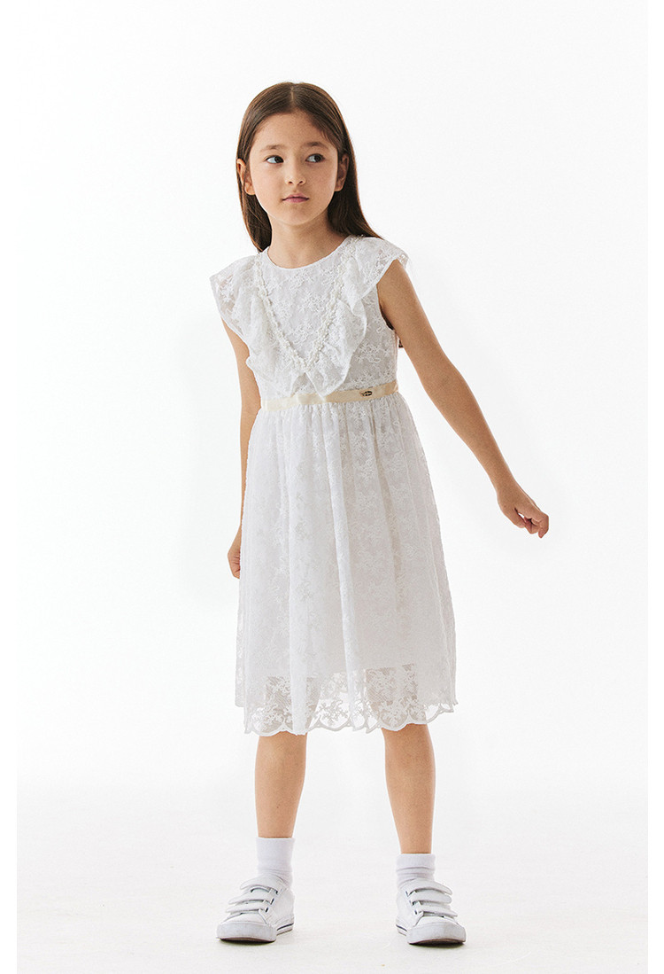 商品名称:小熊童装女童夏季华丽珍珠无袖蕾丝裙 318913