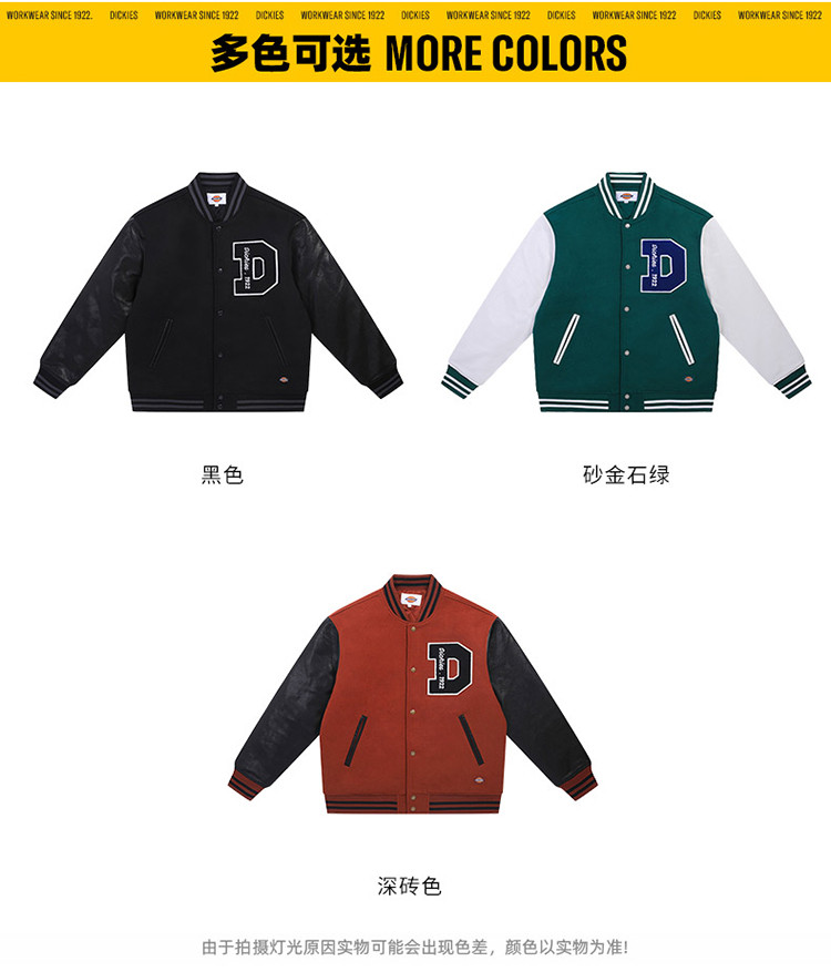 商品名称:Dickies男式拼接袖配色休闲棒球服夹克 DK012258 377680