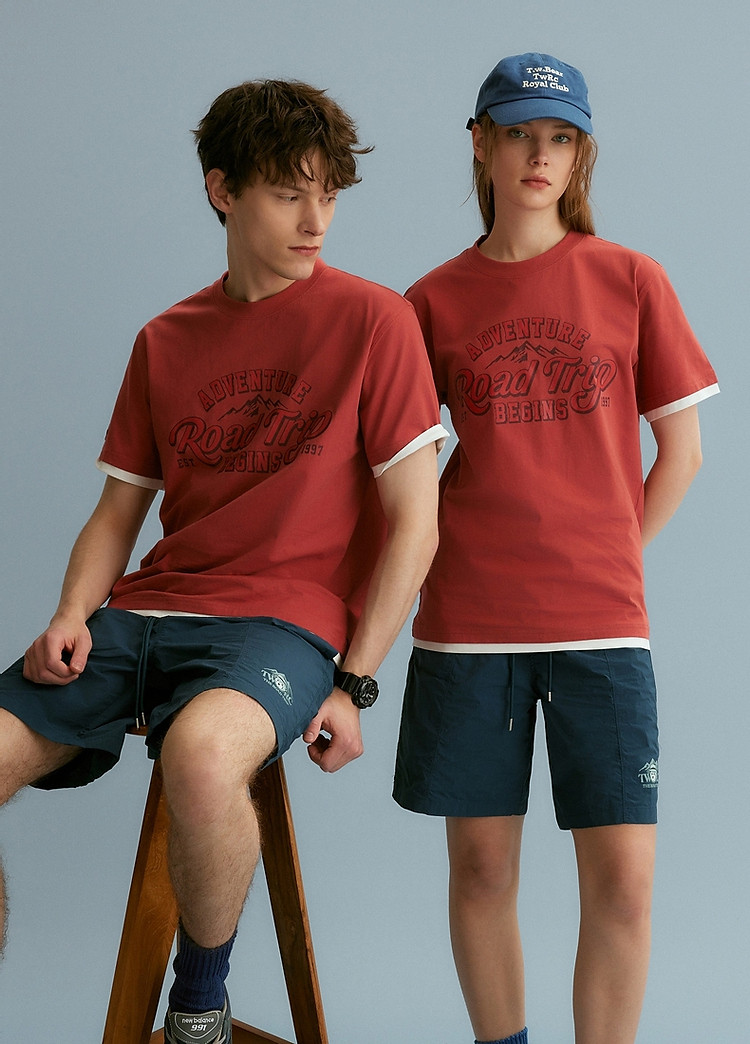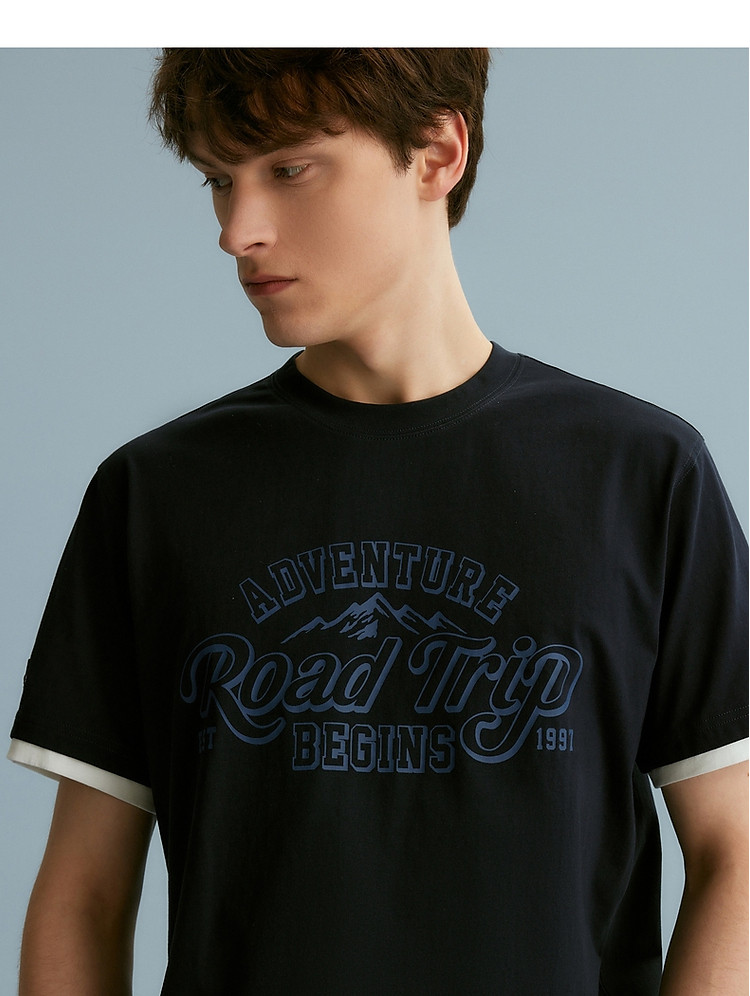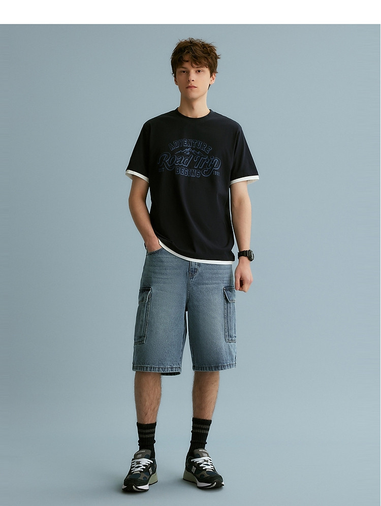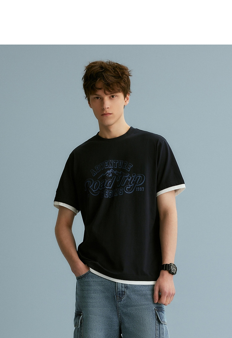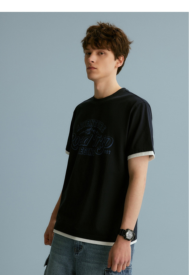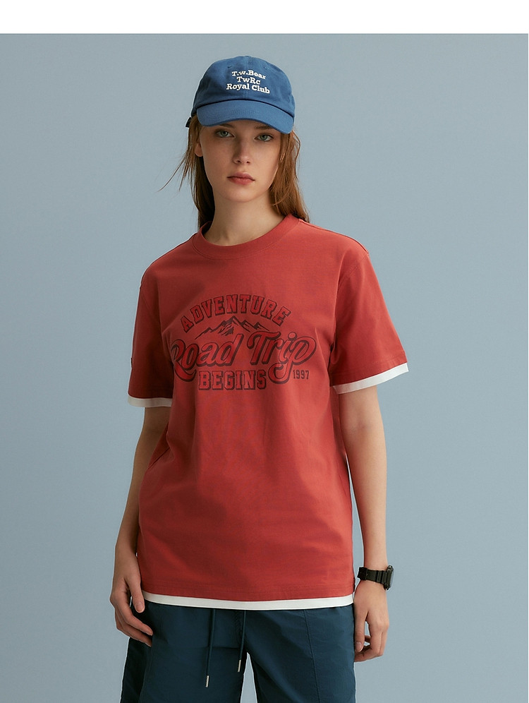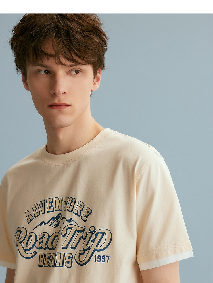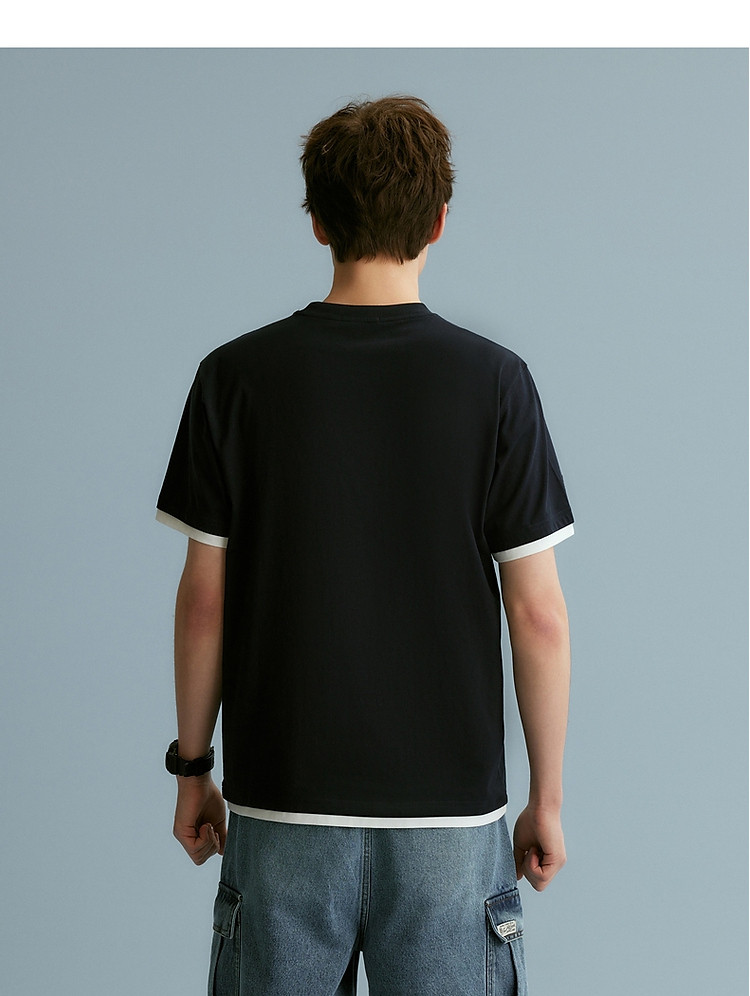 【情侣同款】T恤小熊时尚短袖假两件夏季潮流休闲宽松圆领T恤 754689