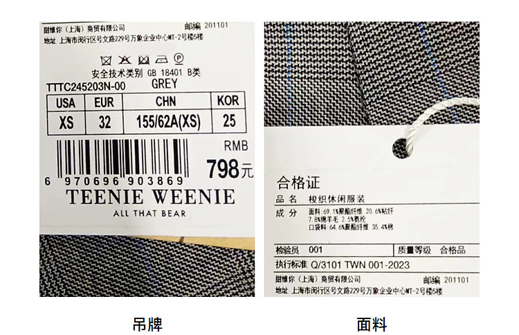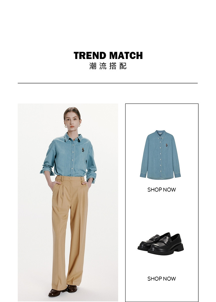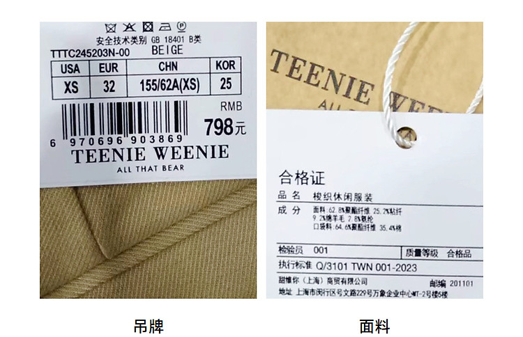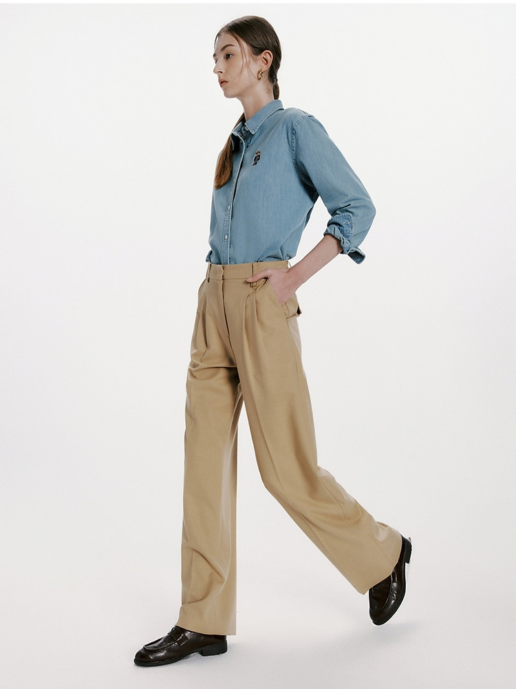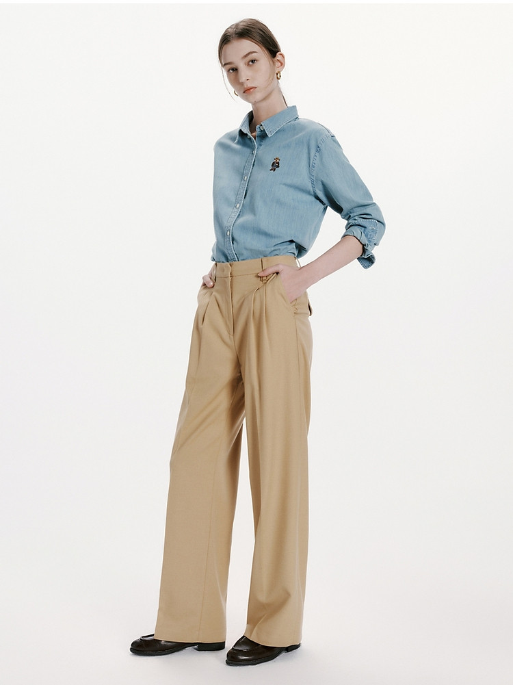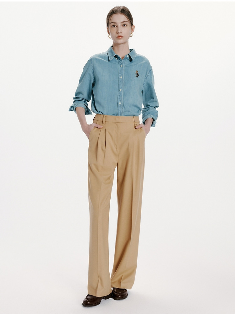 商品名称:小熊女装春季复古休闲裤直筒阔腿裤西装长裤 397825