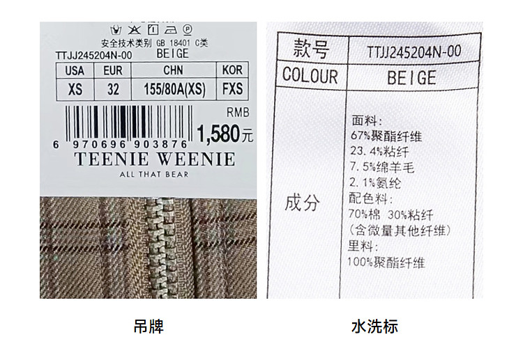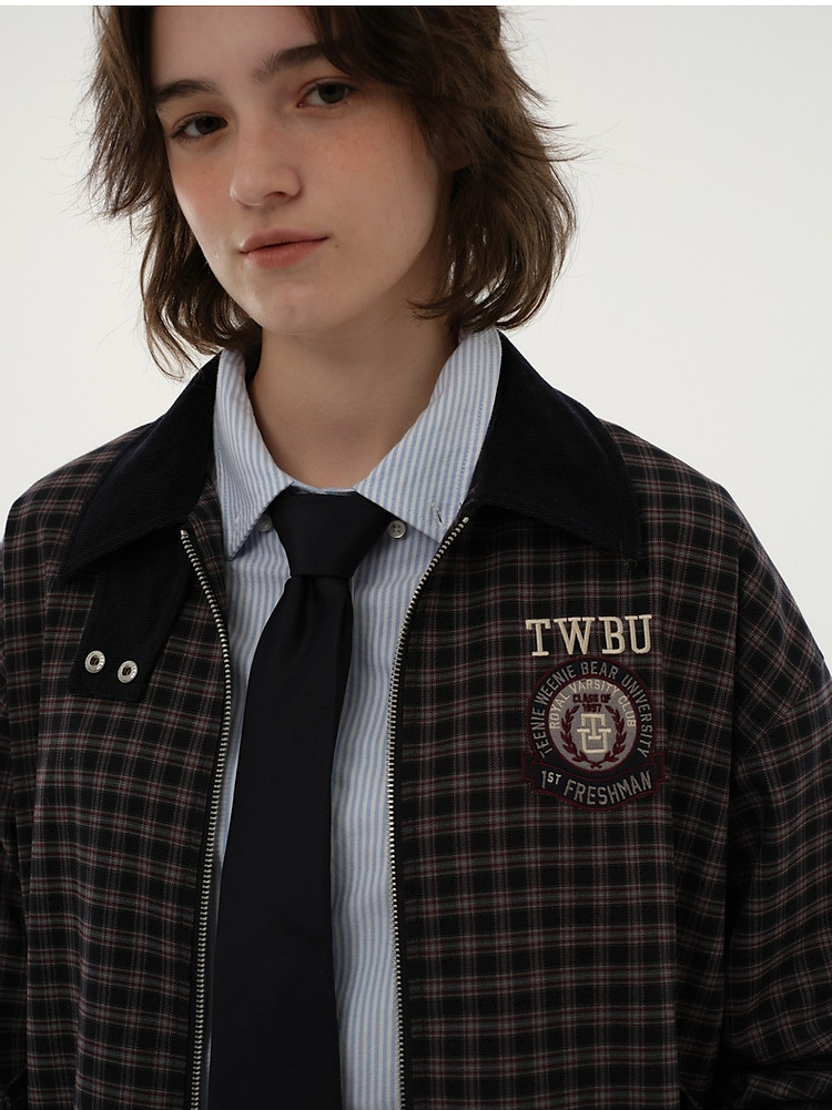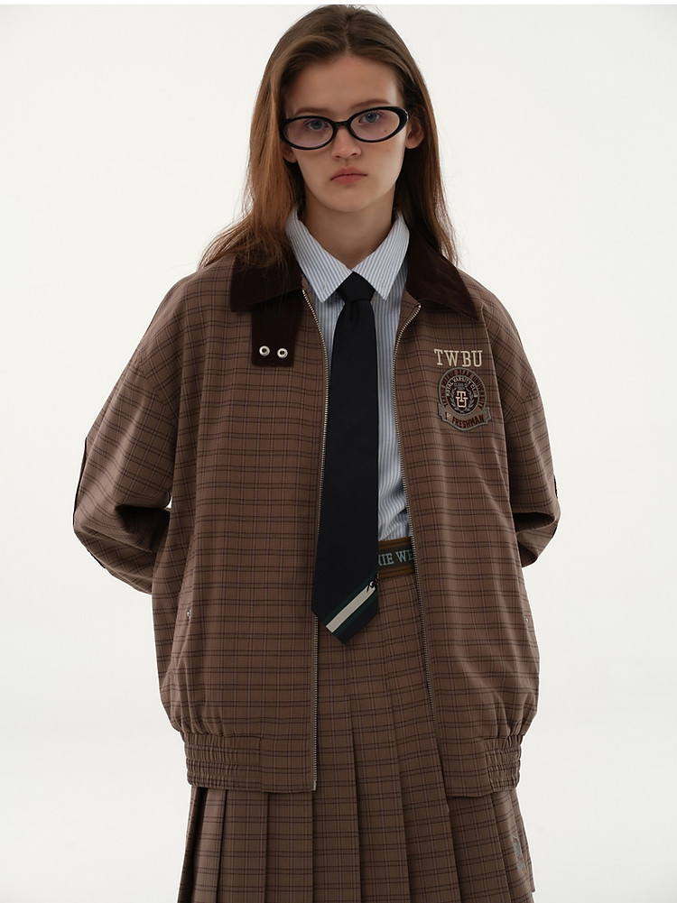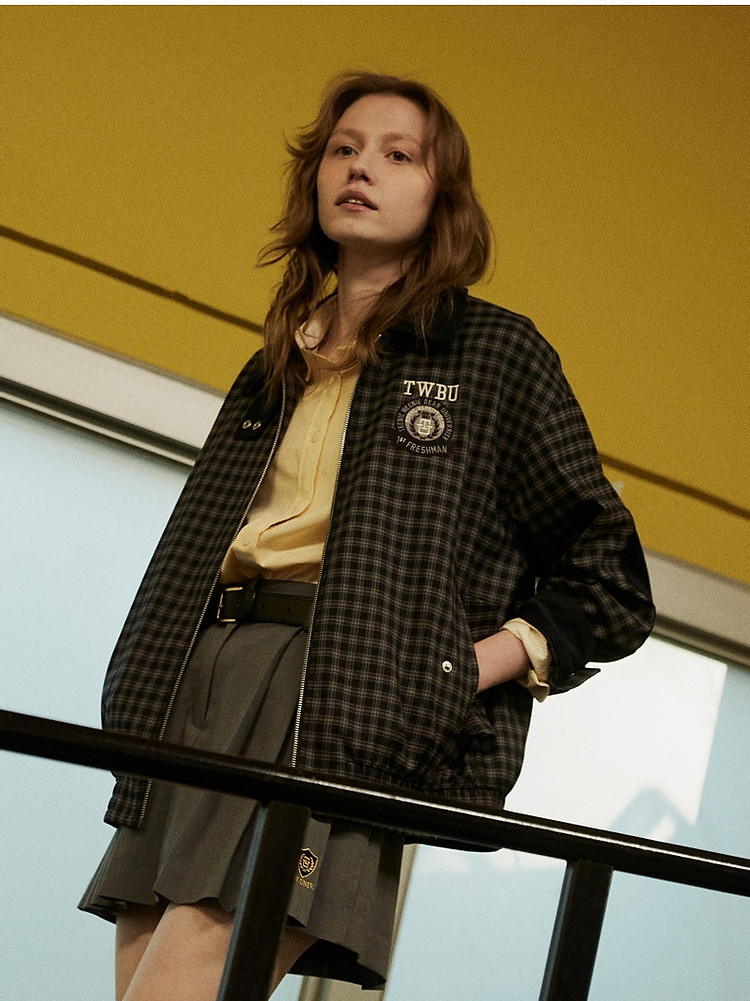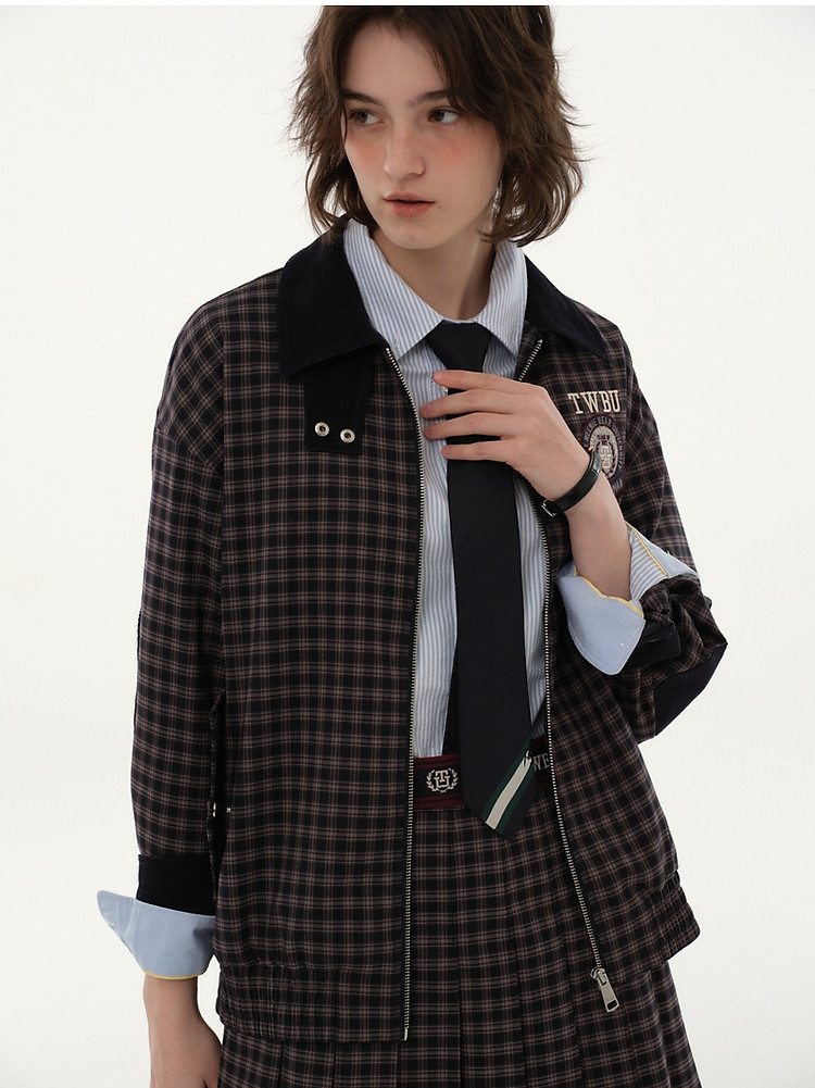 商品名称:小熊美式复古髦宽松格纹外套美拉德女装小个子 596225