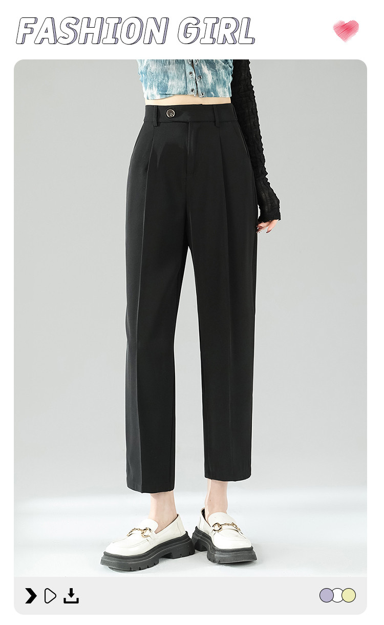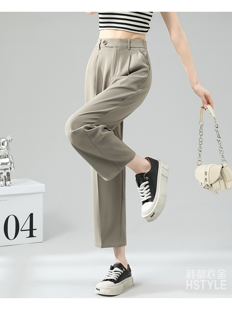商品名称:春季款裤子女休闲裤设计感九分裤女百搭高腰直筒裤女 292555