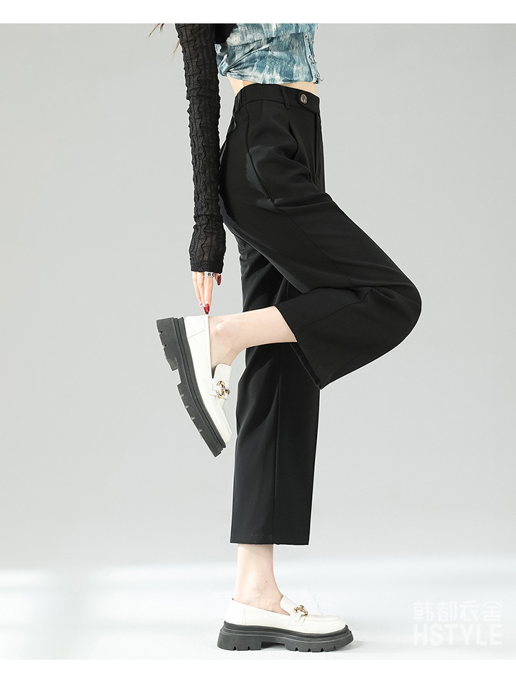 春季款裤子女休闲裤设计感九分裤女百搭高腰直筒裤女 292555