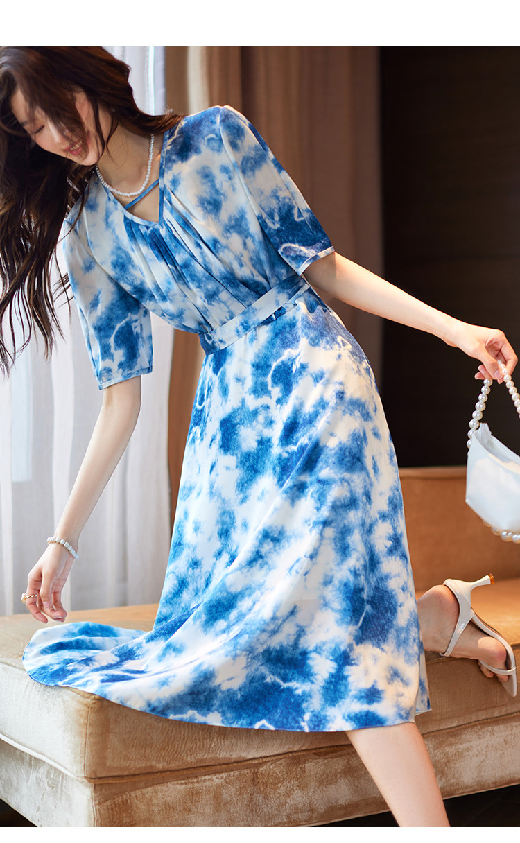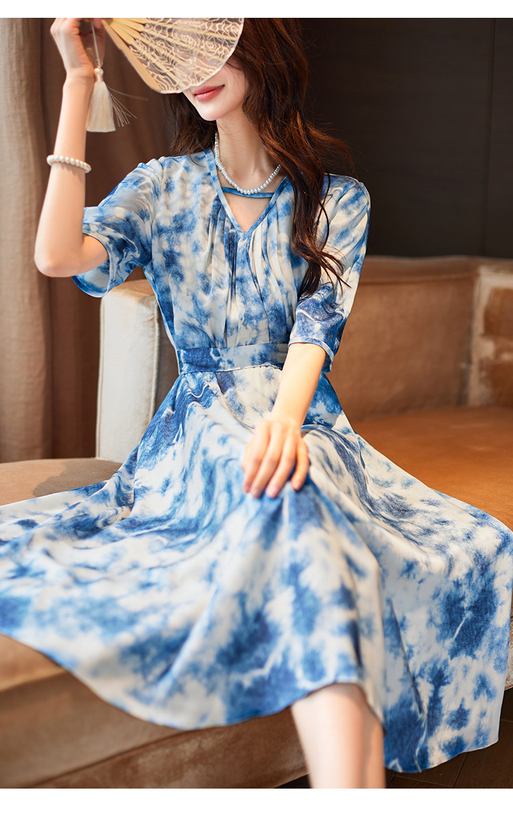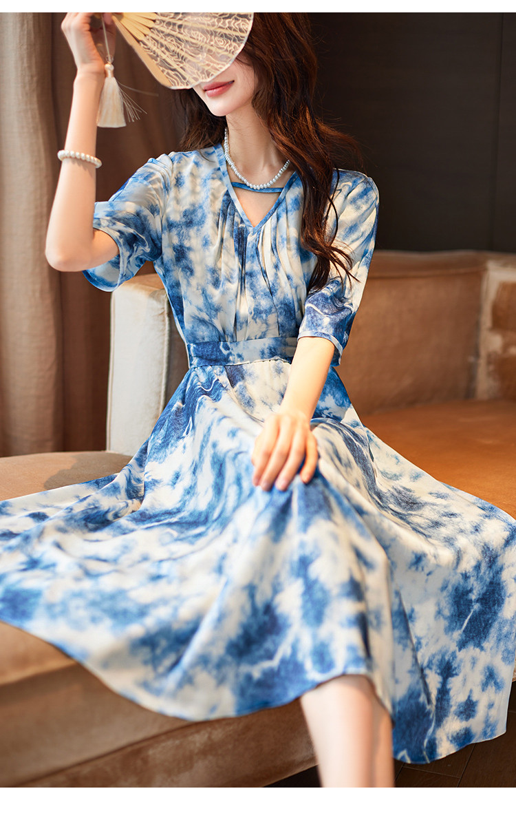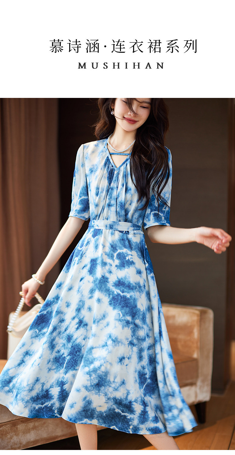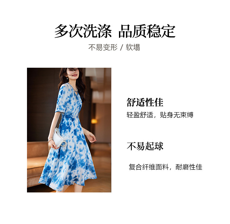 商品名称:水墨连衣裙2025夏新款高级感国风气质小众设计感V领连衣裙女 340489