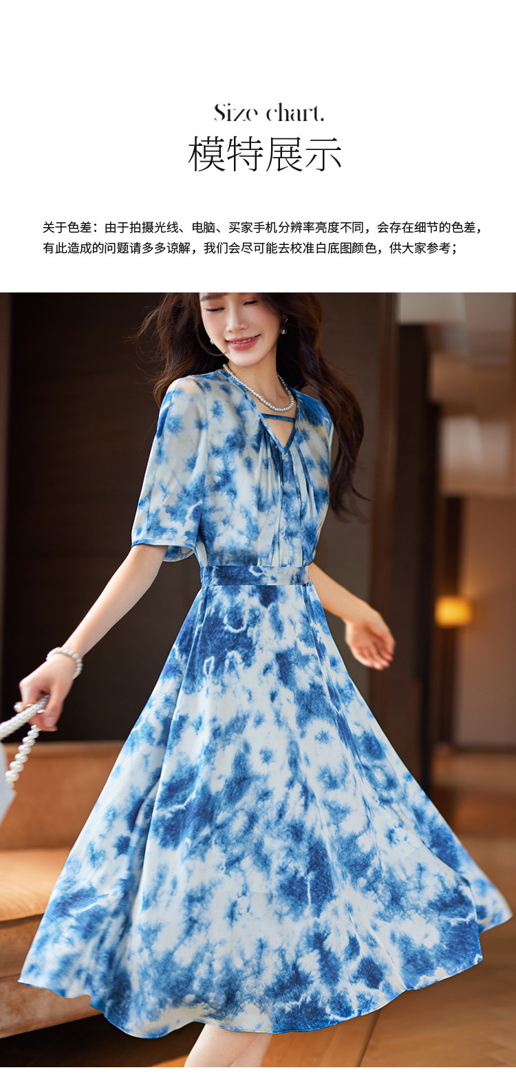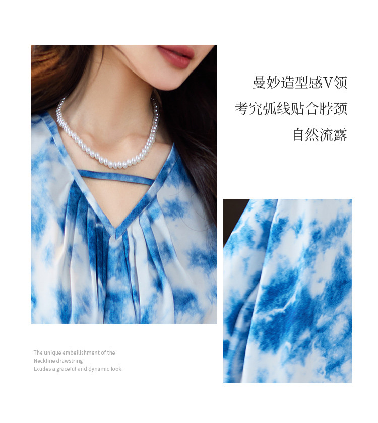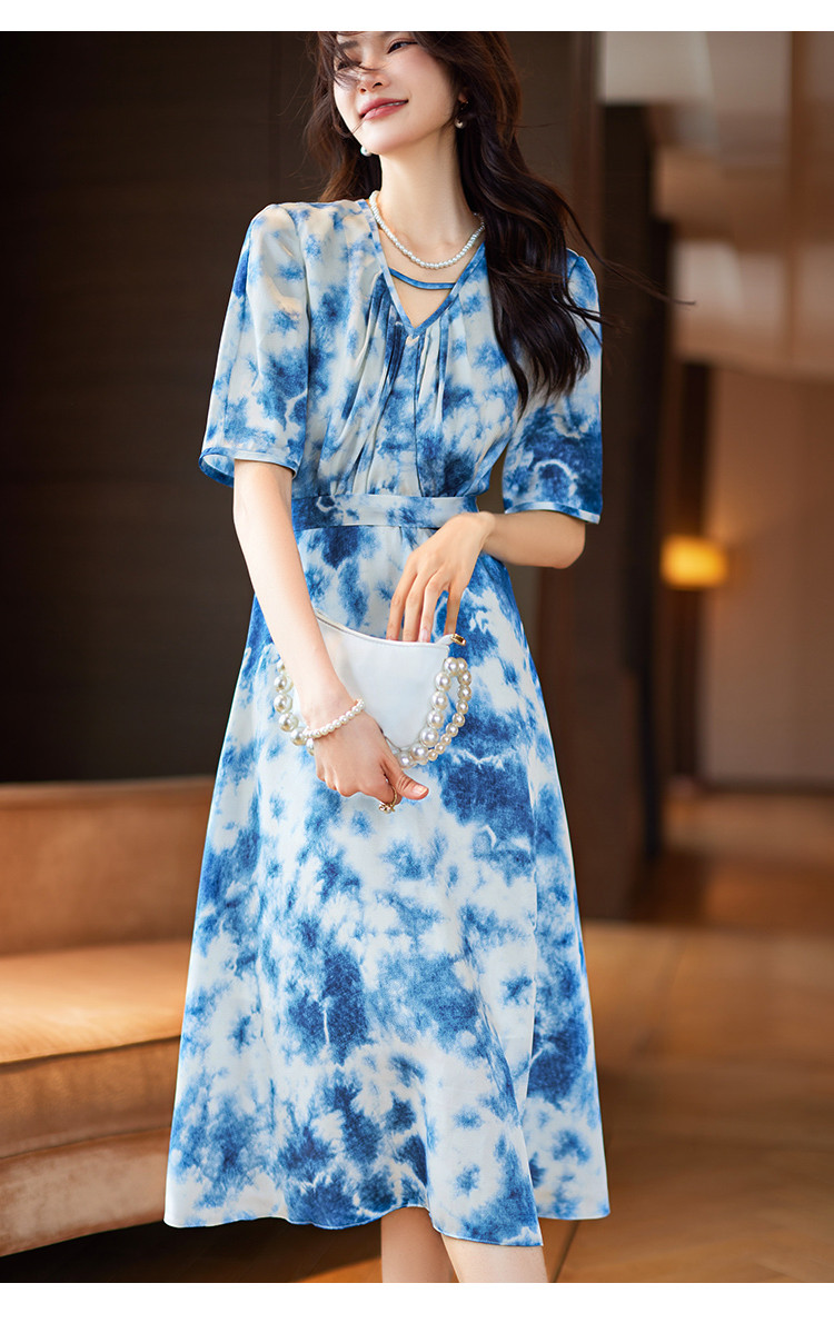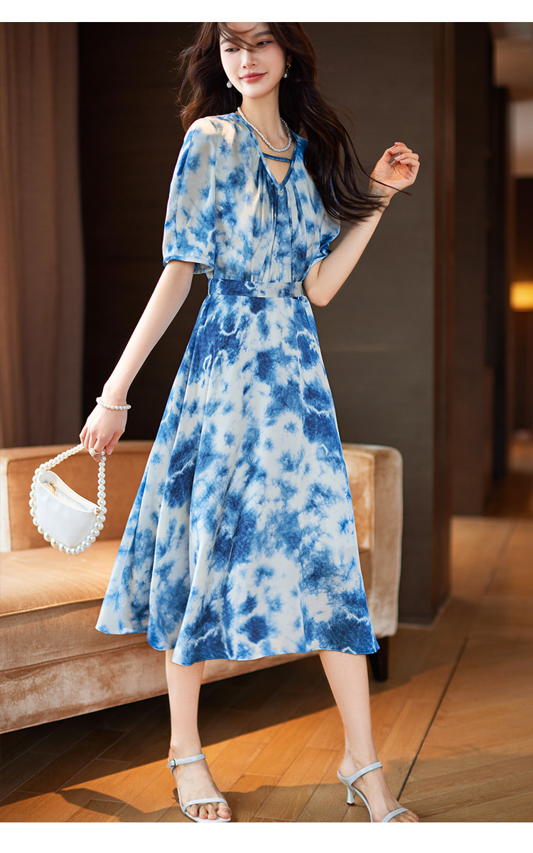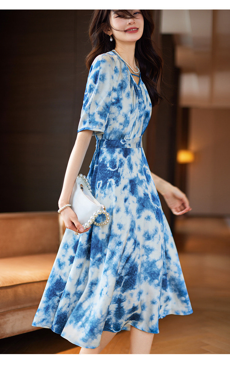 商品名称:水墨连衣裙2025夏新款高级感国风气质小众设计感V领连衣裙女 340489