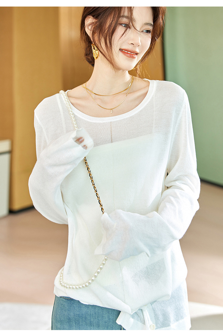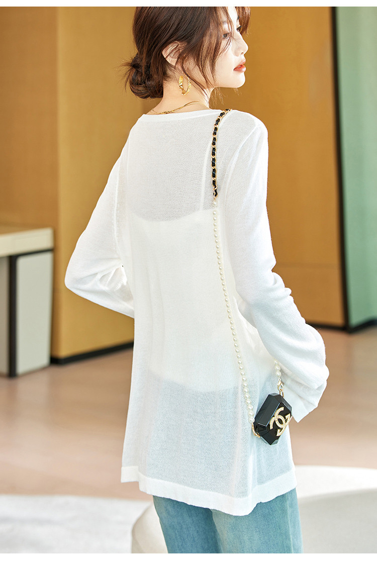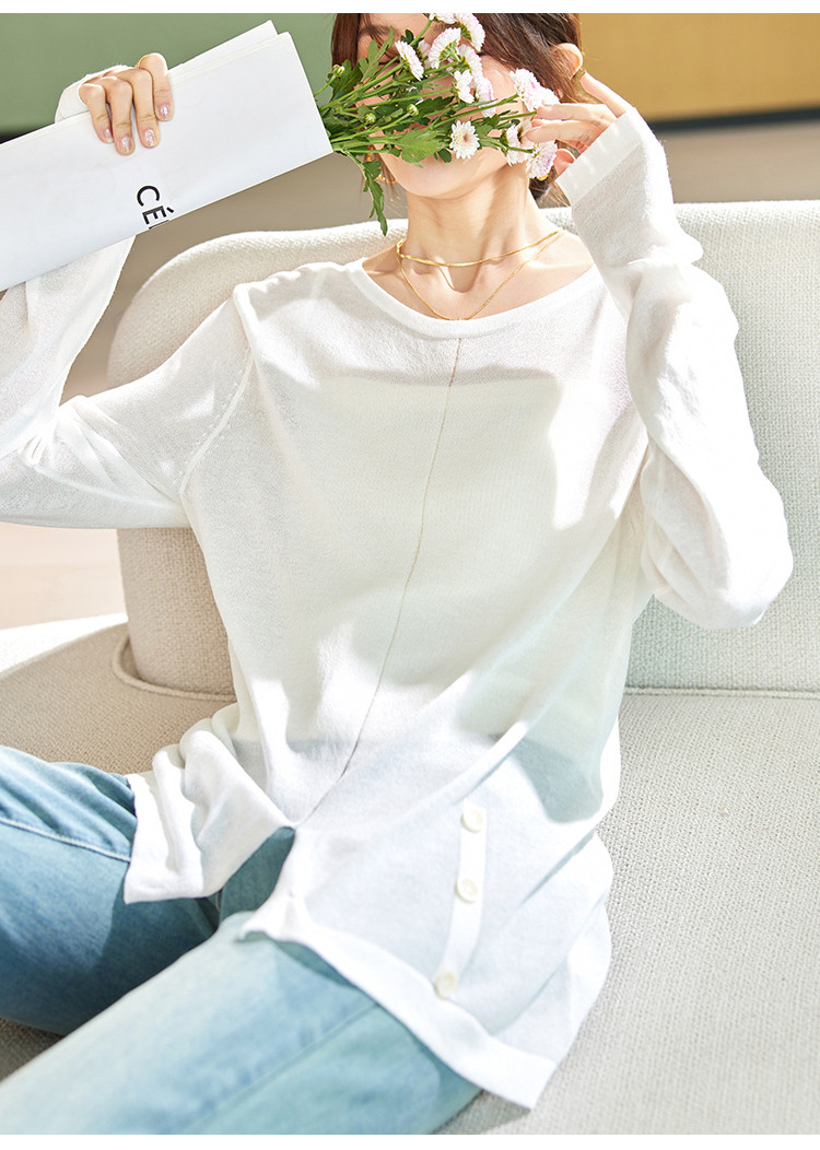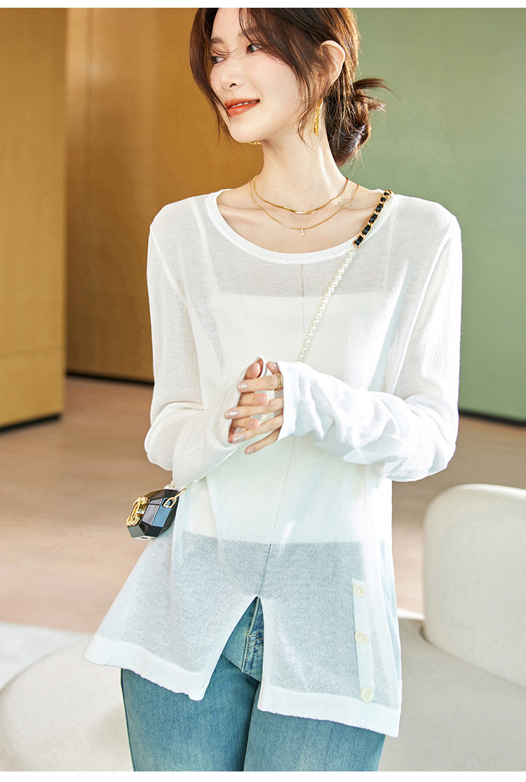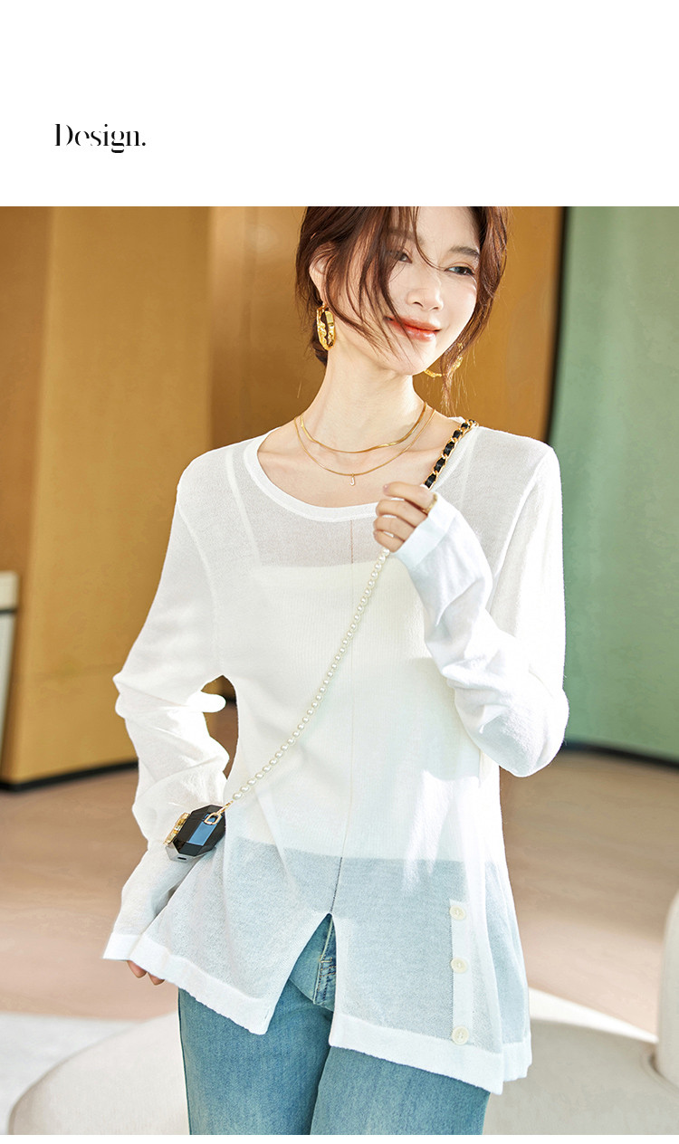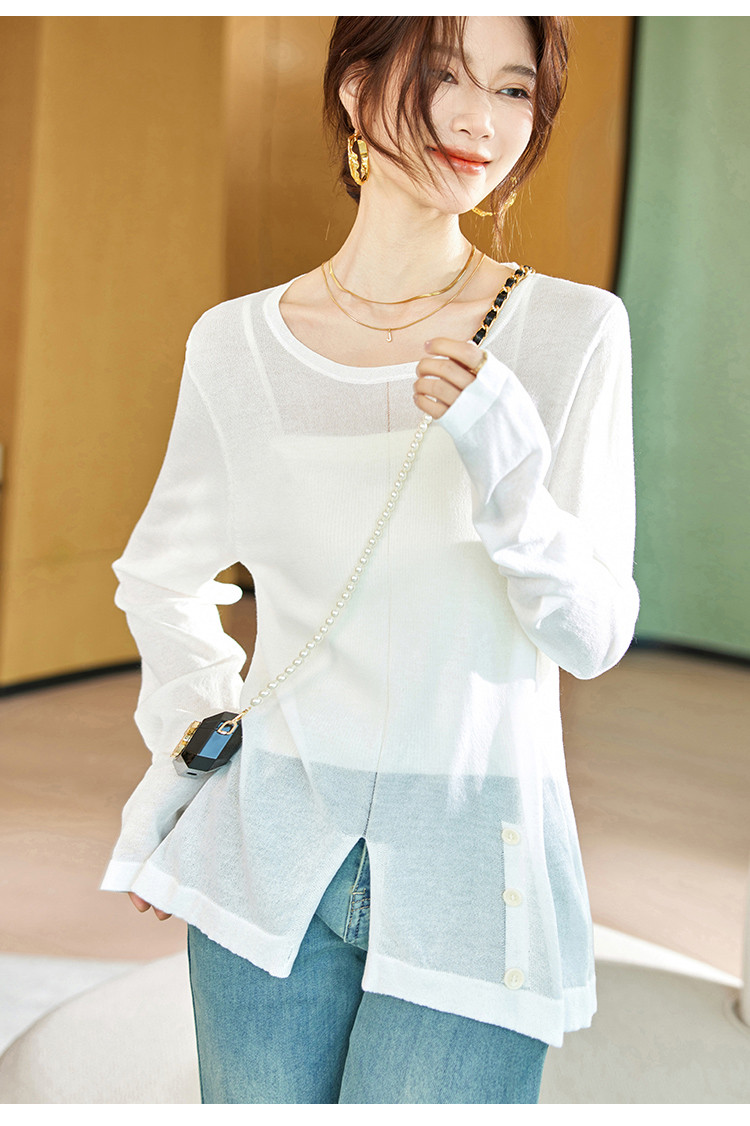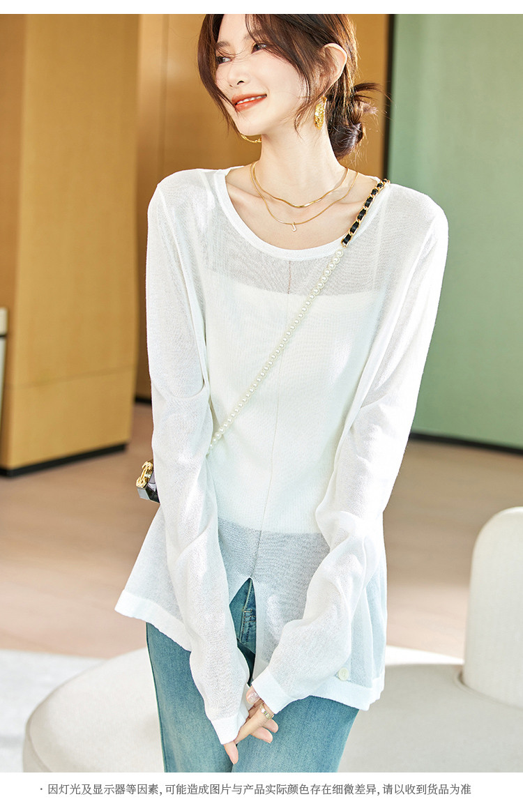 商品名称:针织衫女2025春夏新品休闲宽松空调衫长袖套头不规则T恤女 212809