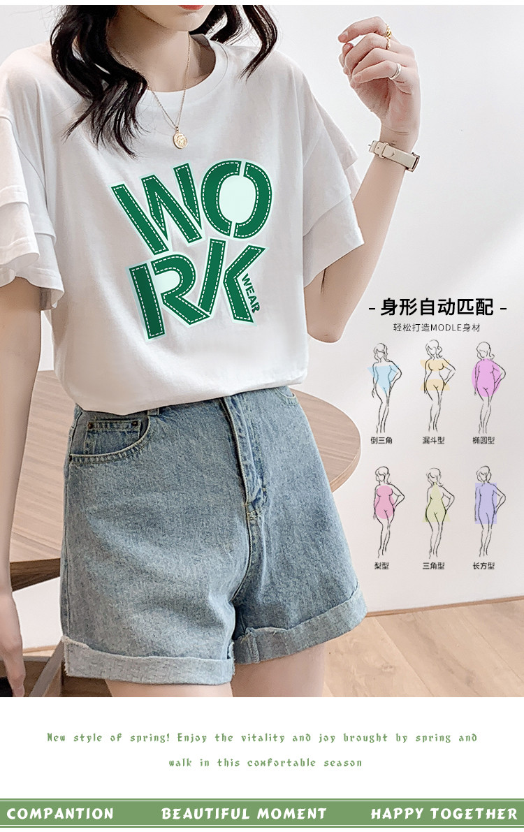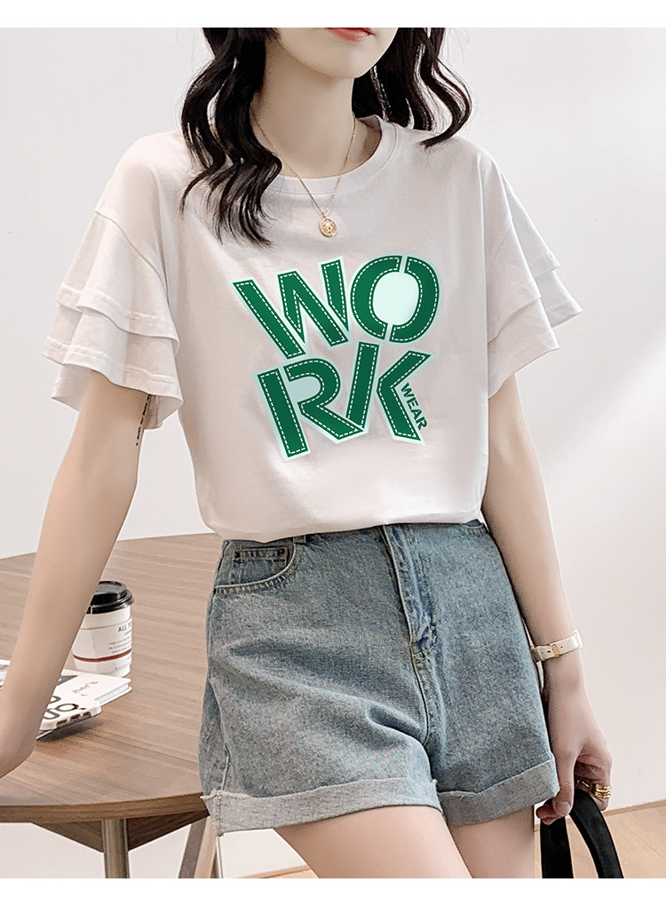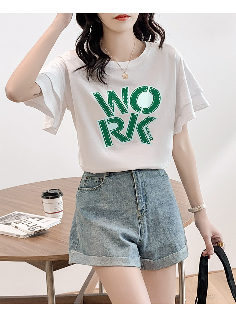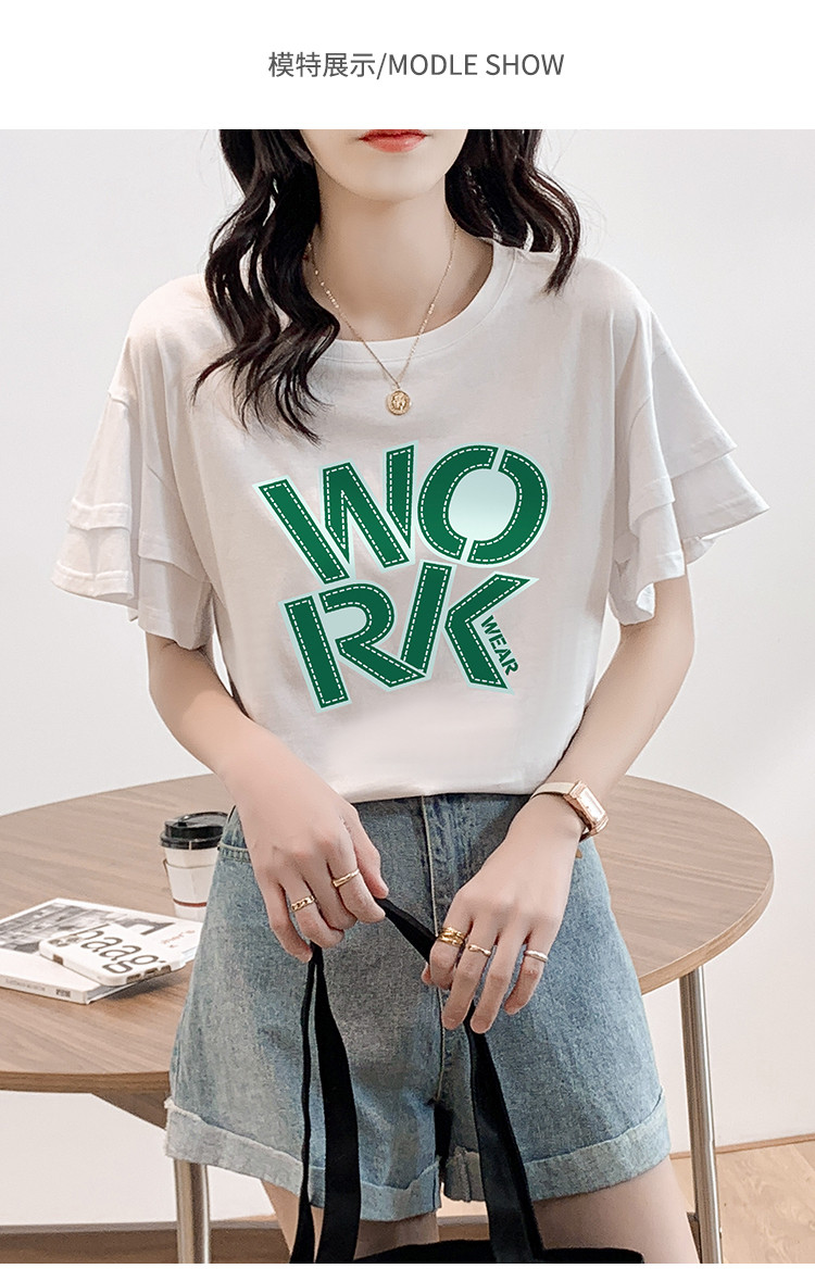 【100%棉短袖】夏季别致袖子圆领t袖时尚字母印花百搭上衣女 126232