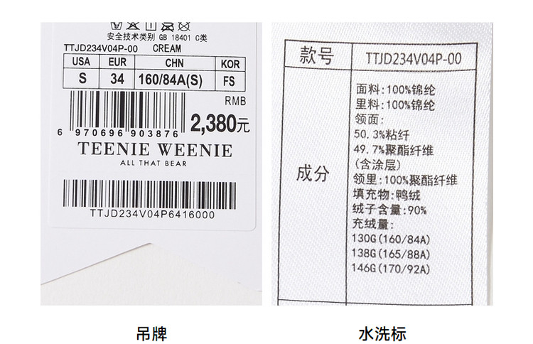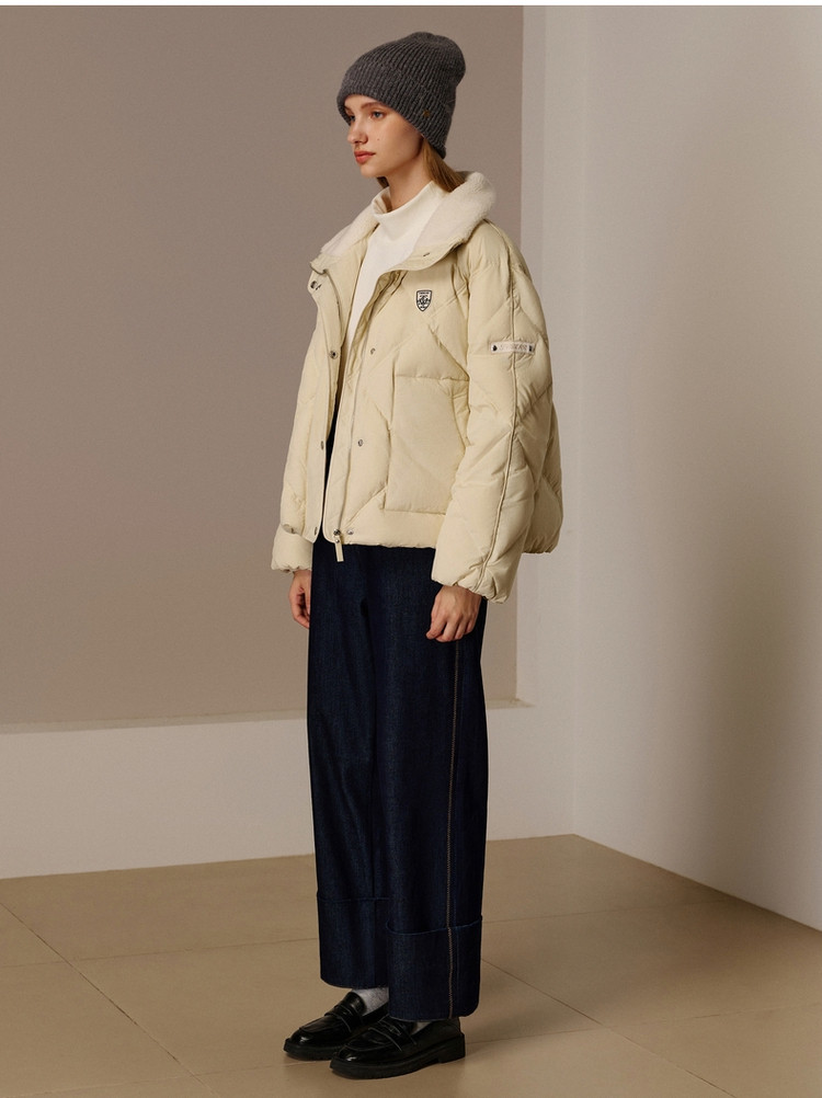 商品名称:小熊秋冬款保暖毛领泡芙羽绒服保暖外套女 763841