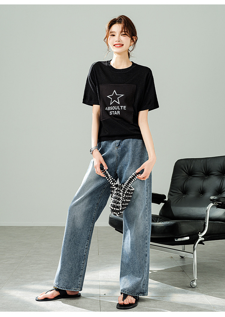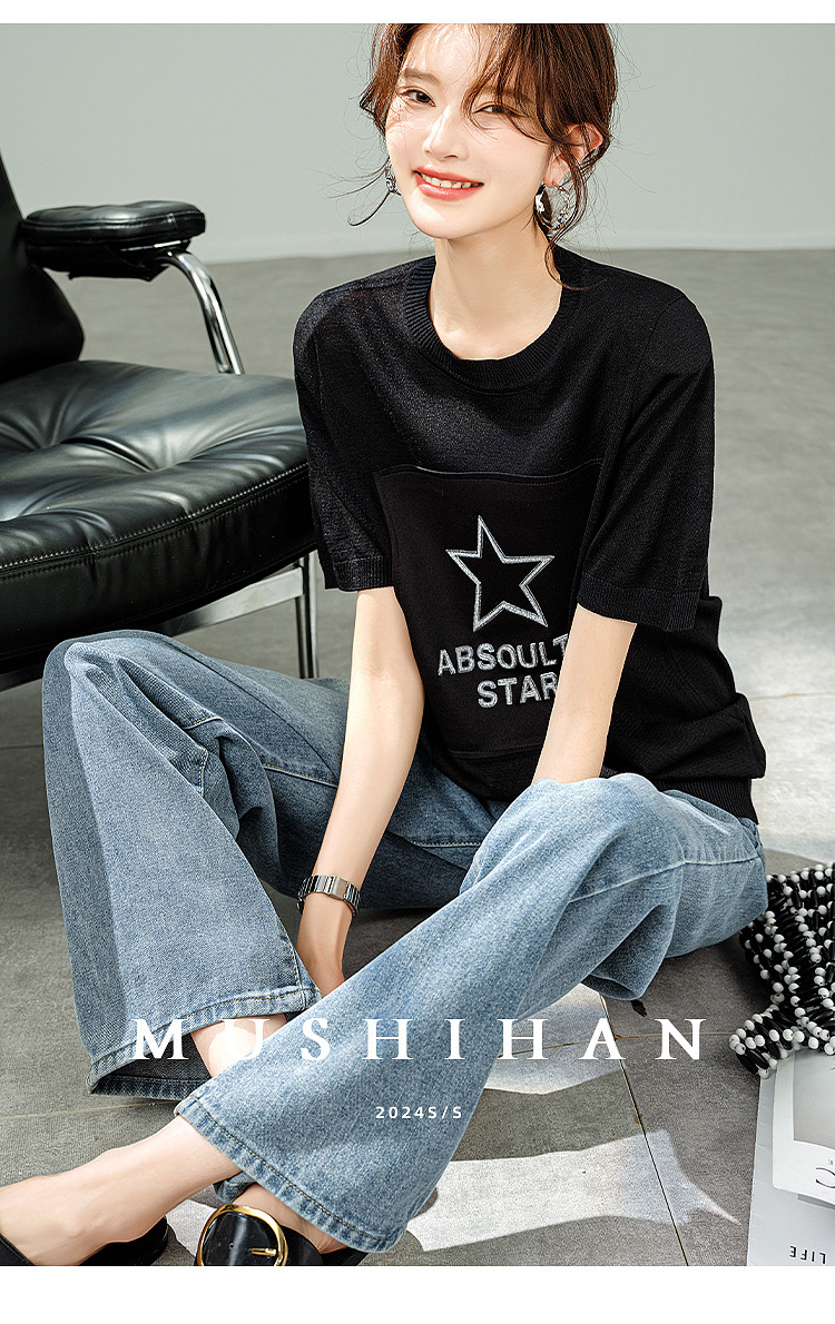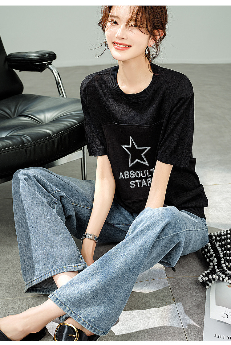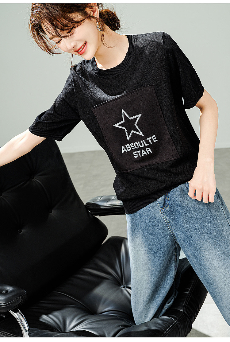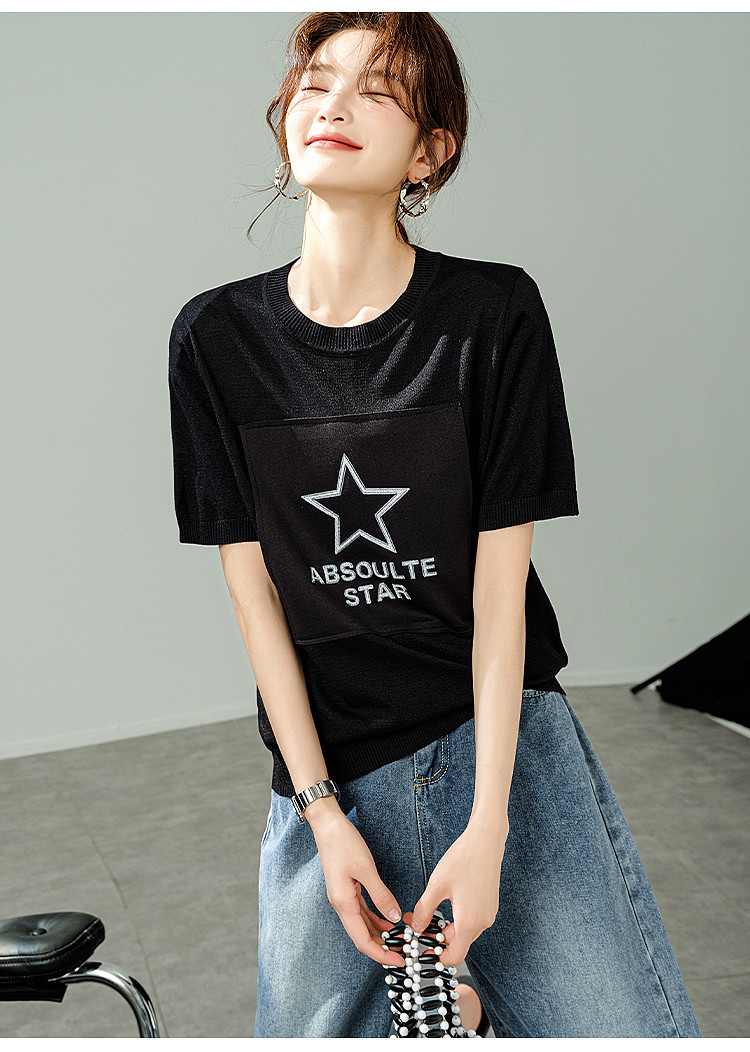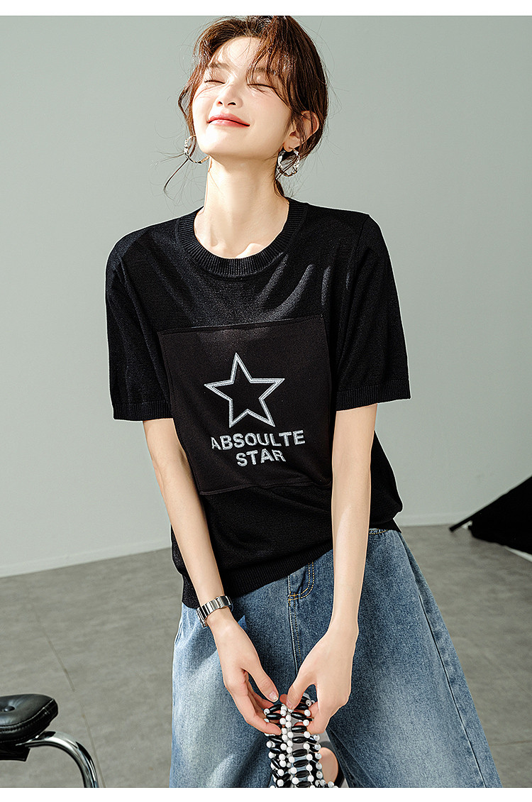 商品名称:【福利钜惠】2025夏新款宽松显瘦短袖T恤凉爽薄款减龄针织衫 409097