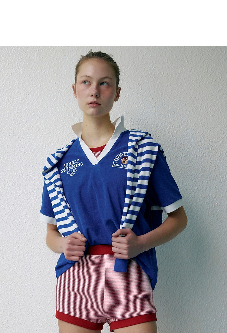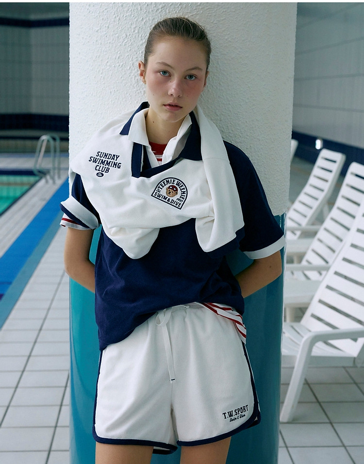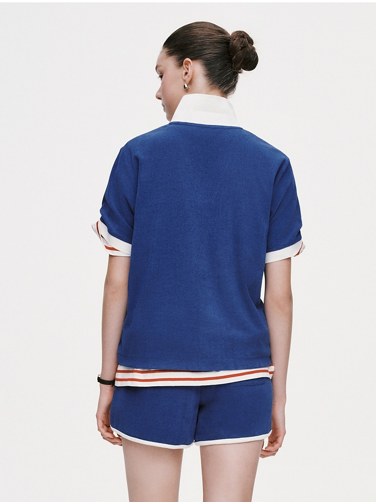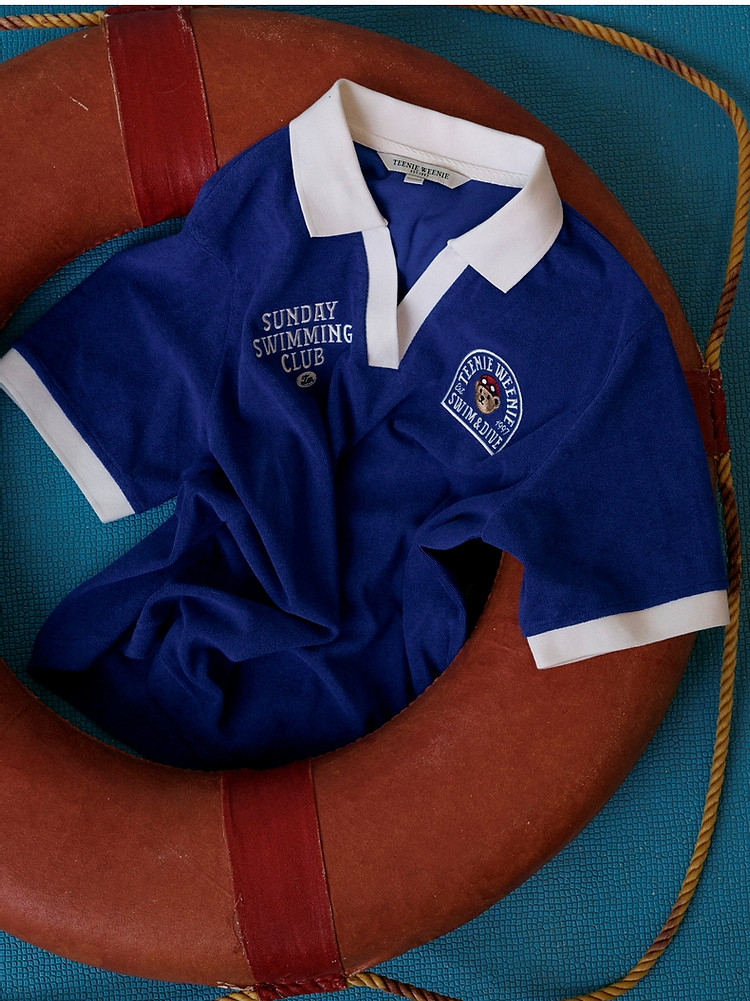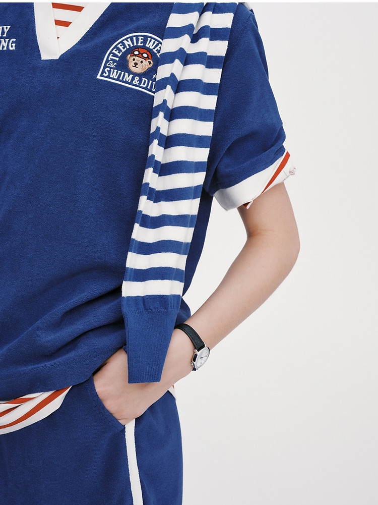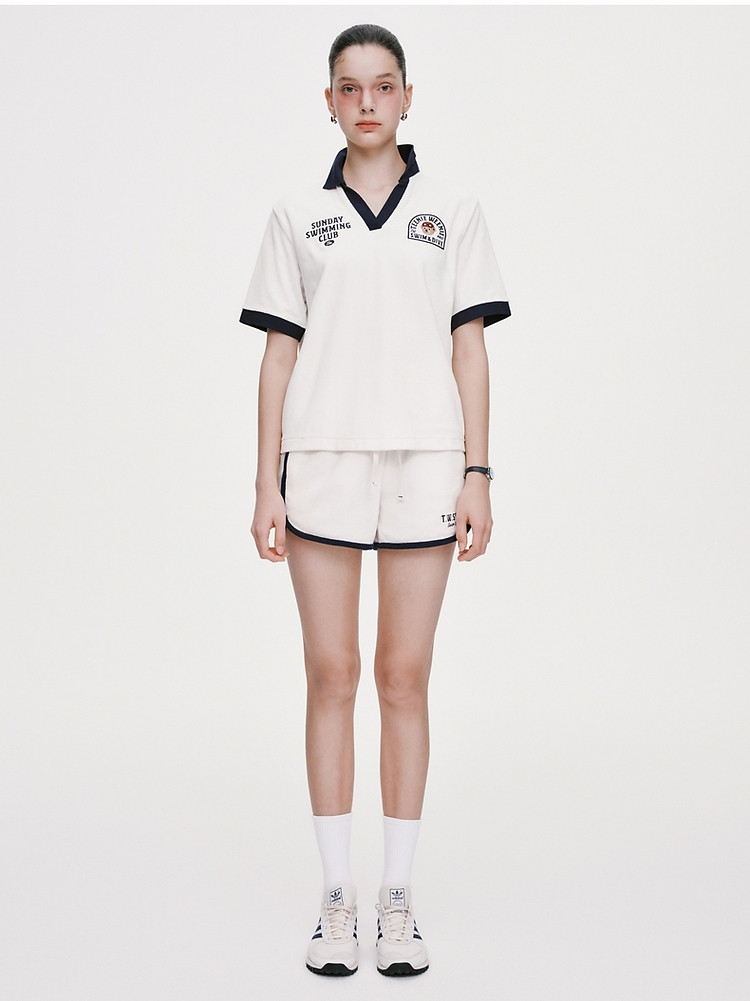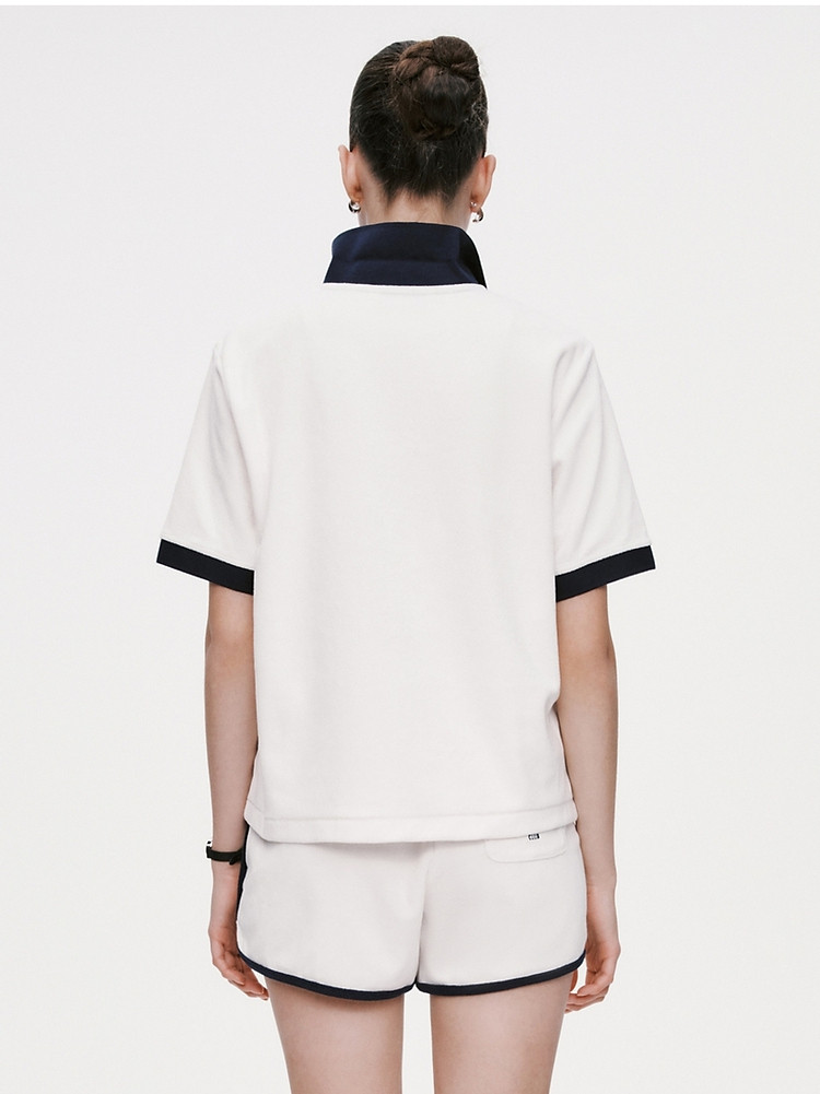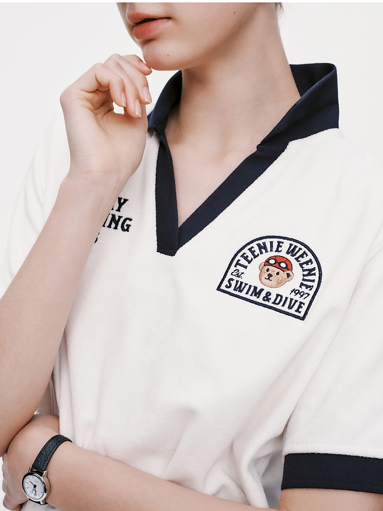 商品名称:小熊毛巾布软糯Polo领短袖T恤衫宽松慵懒上衣 044353