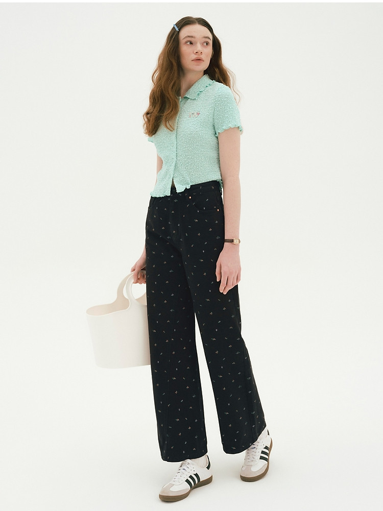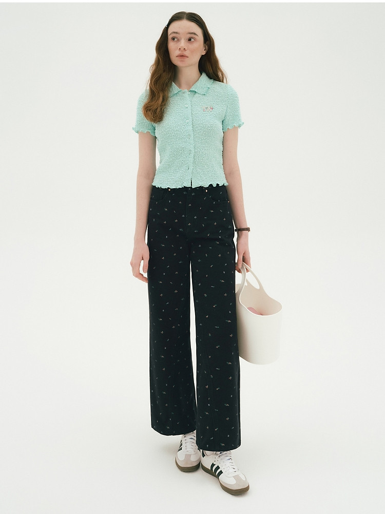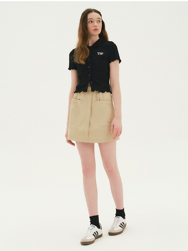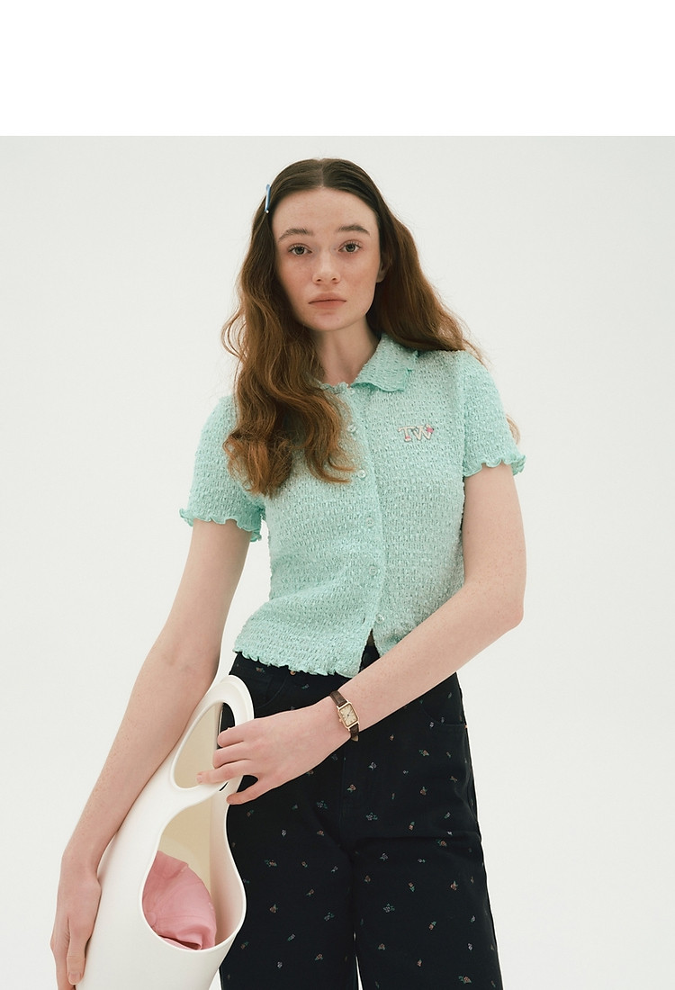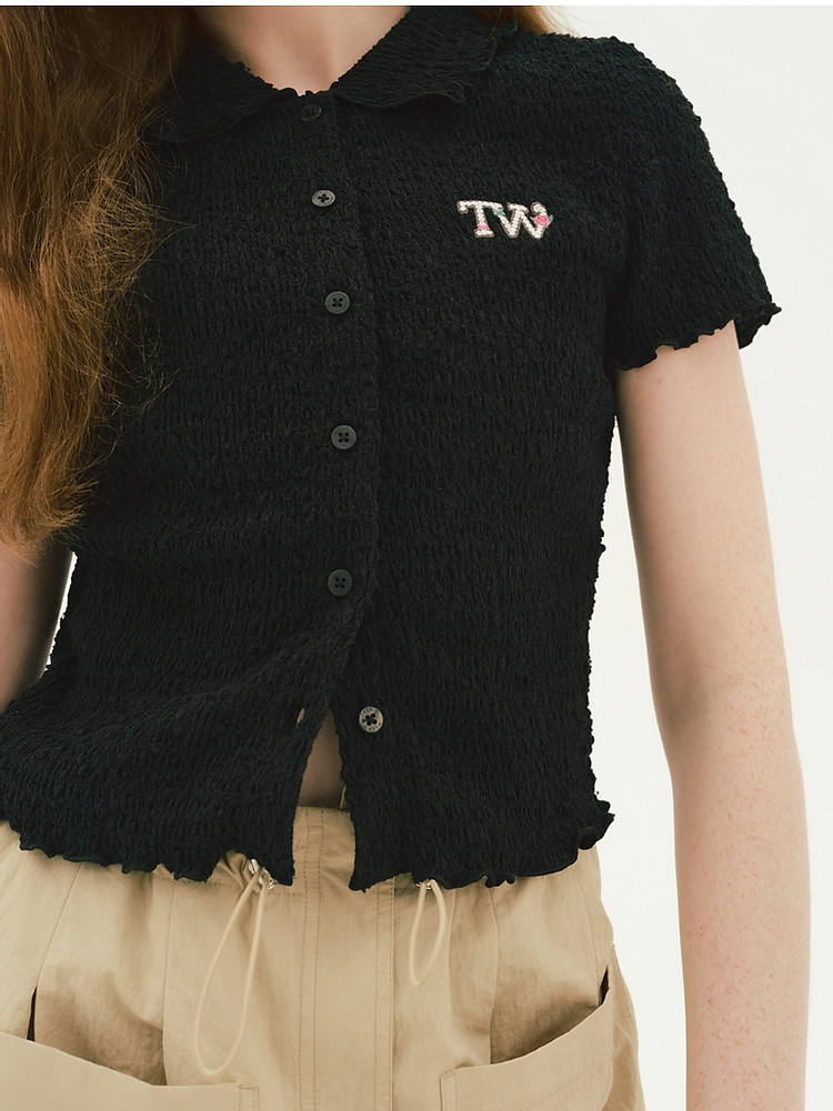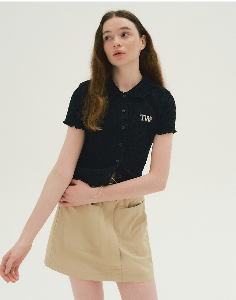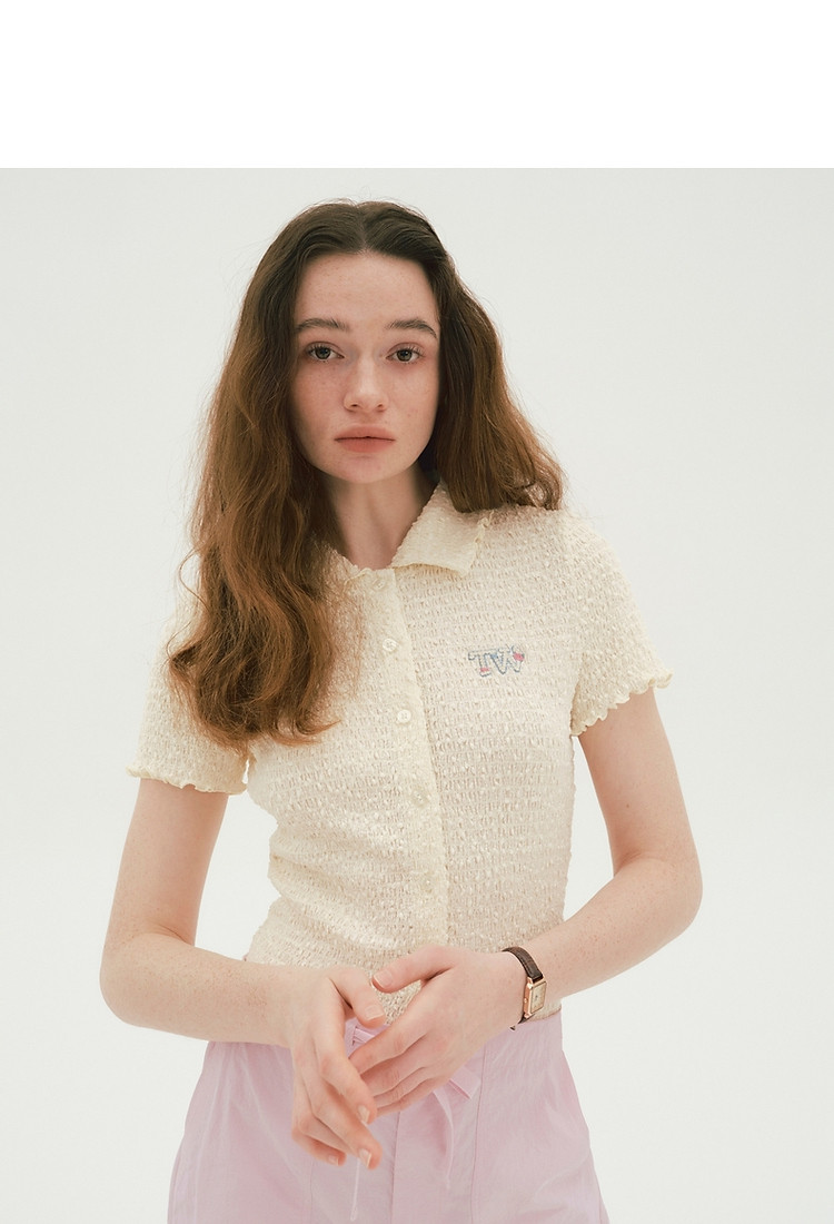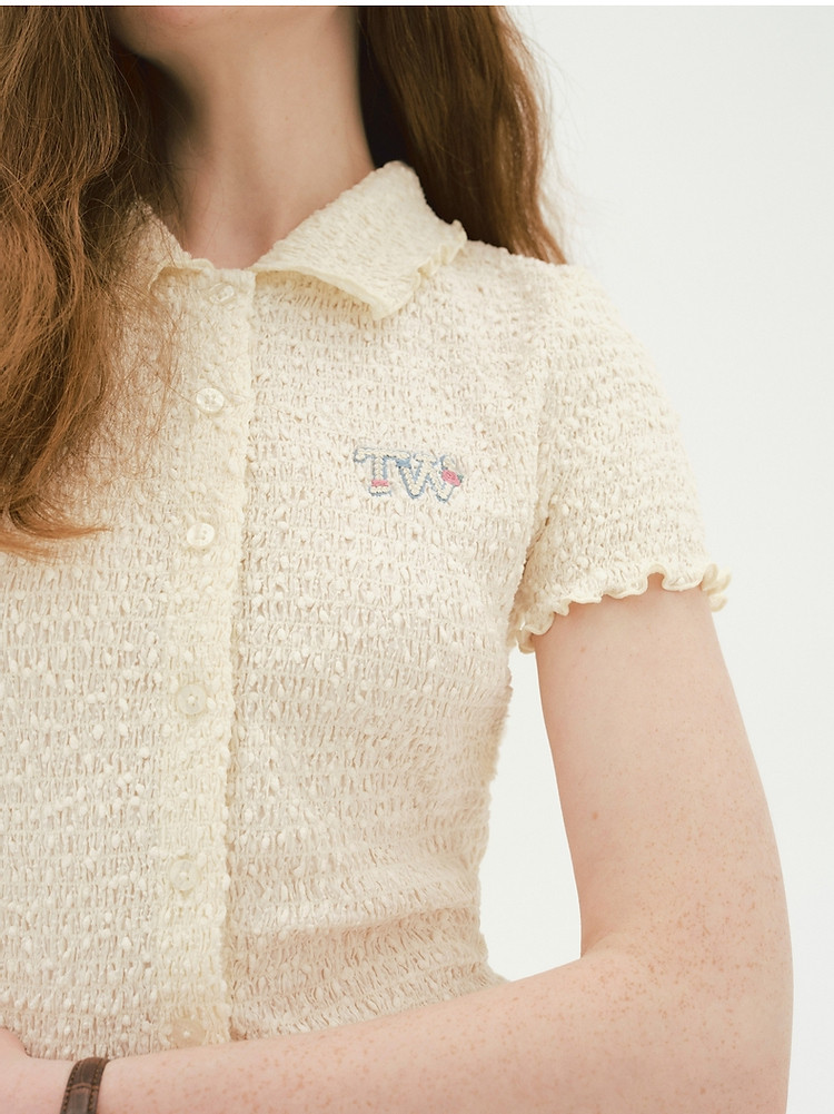 小熊小个子短袖翻领T恤肌理感木耳边上衣女 893249