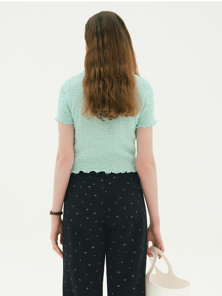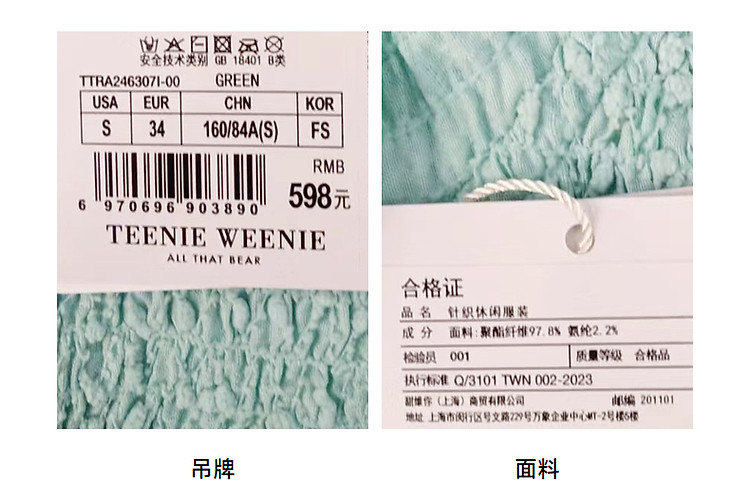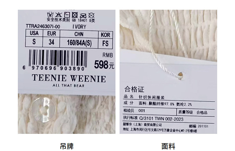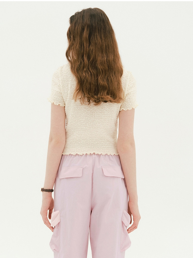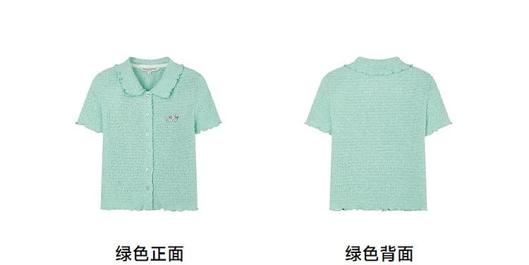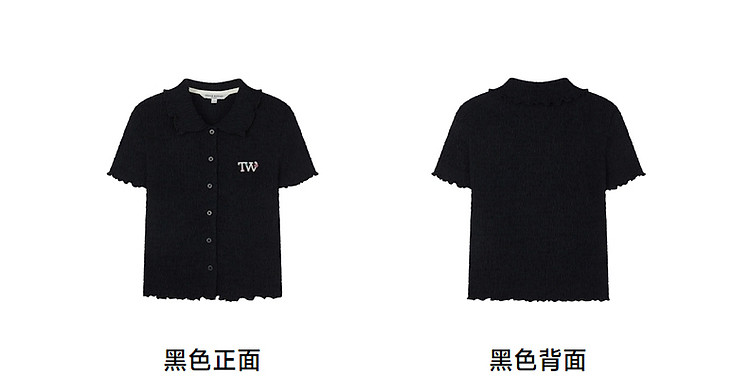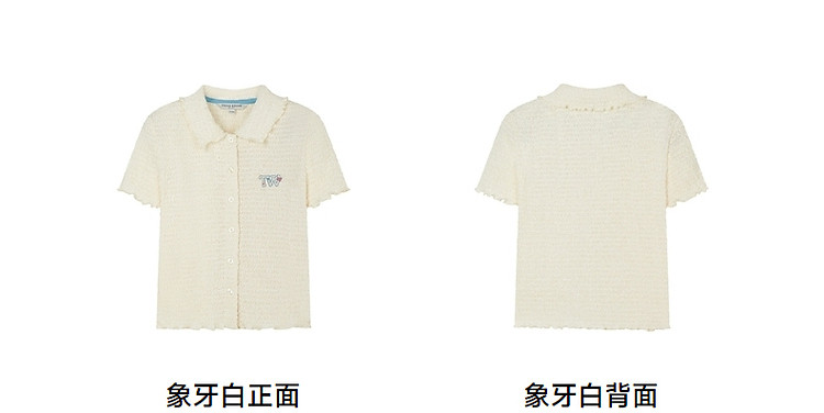 商品名称:小熊小个子短袖翻领T恤肌理感木耳边上衣女 893249
