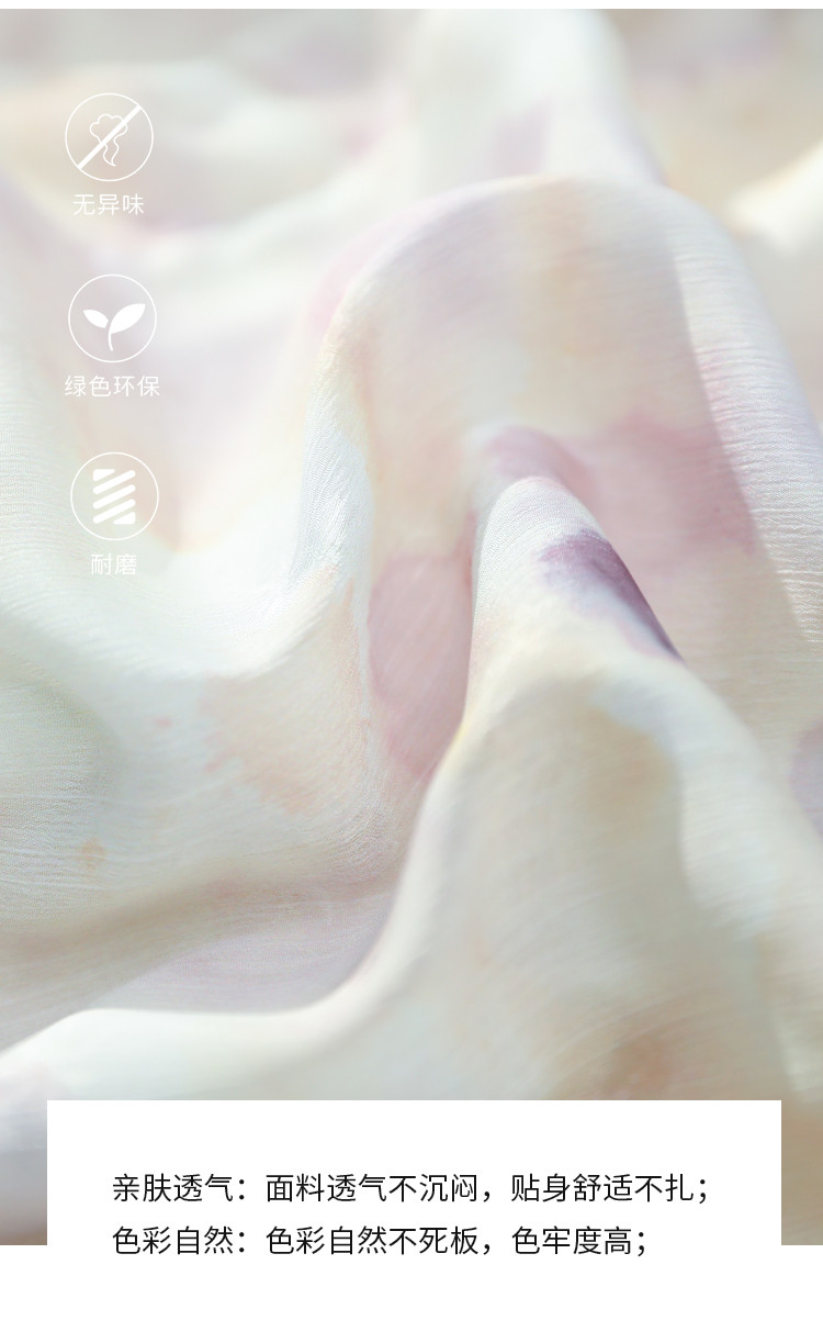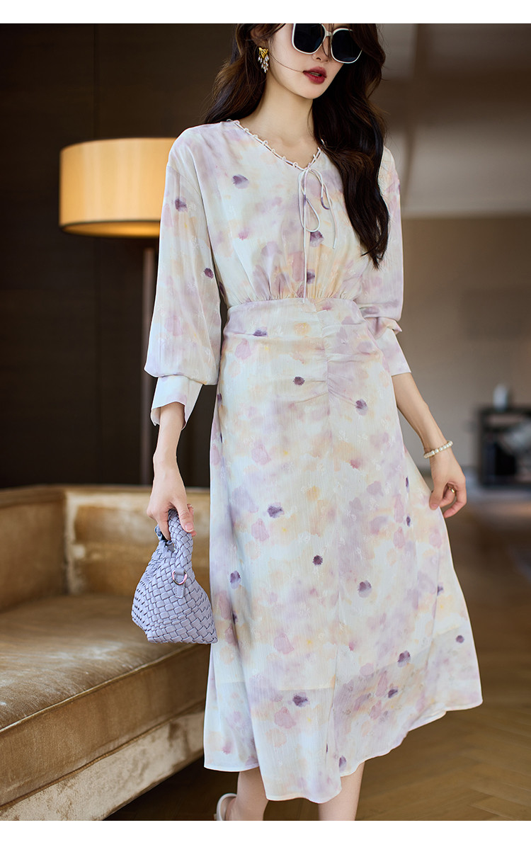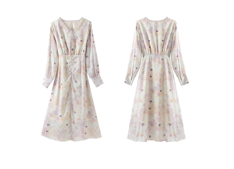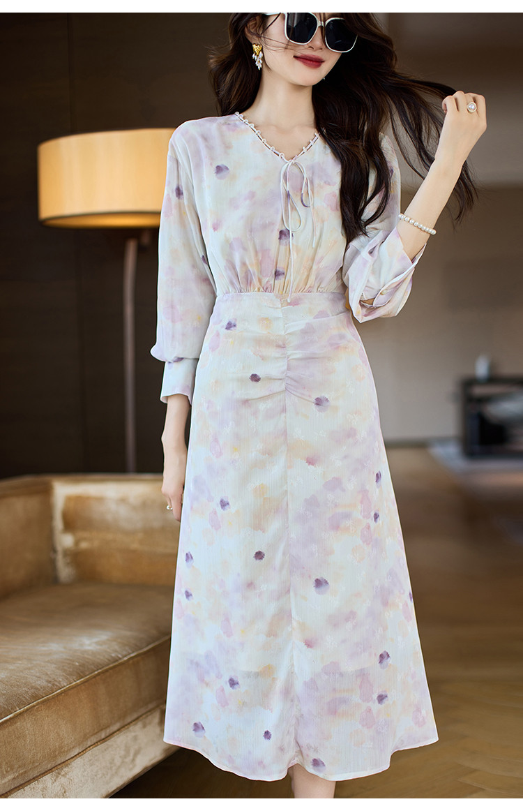 商品名称:国风水墨画连衣裙2025春夏新款气质绑带抽皱收腰中长款裙子女 673033