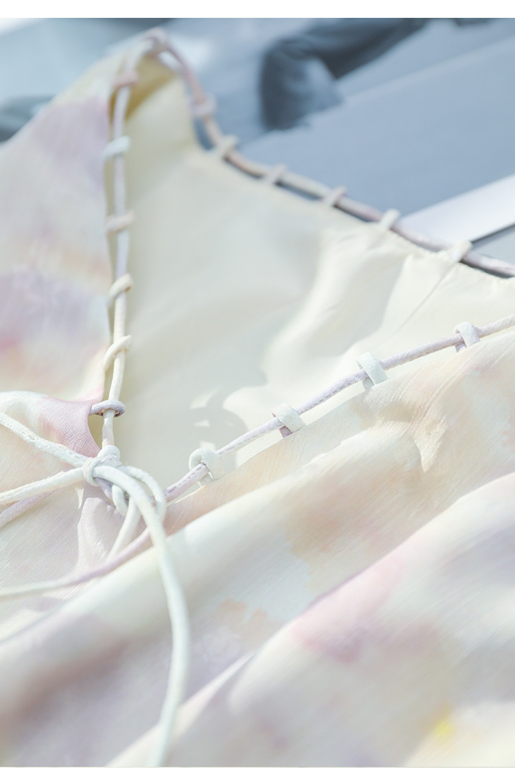 地素吊带连衣裙春蝴蝶纱肌理玫瑰胸针少女氛围感 018443