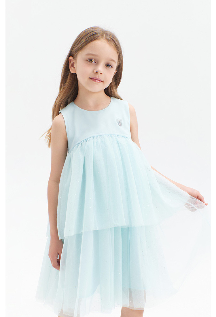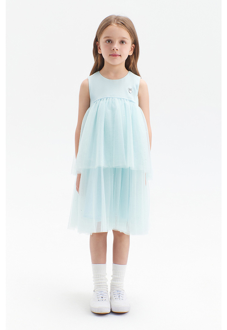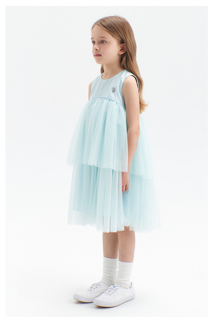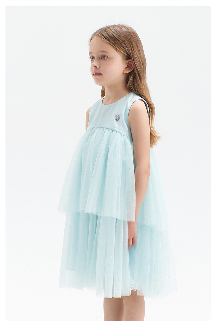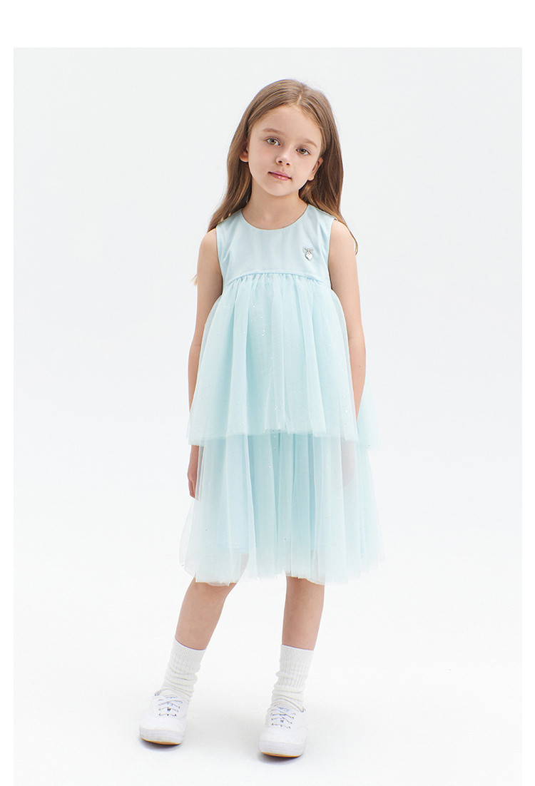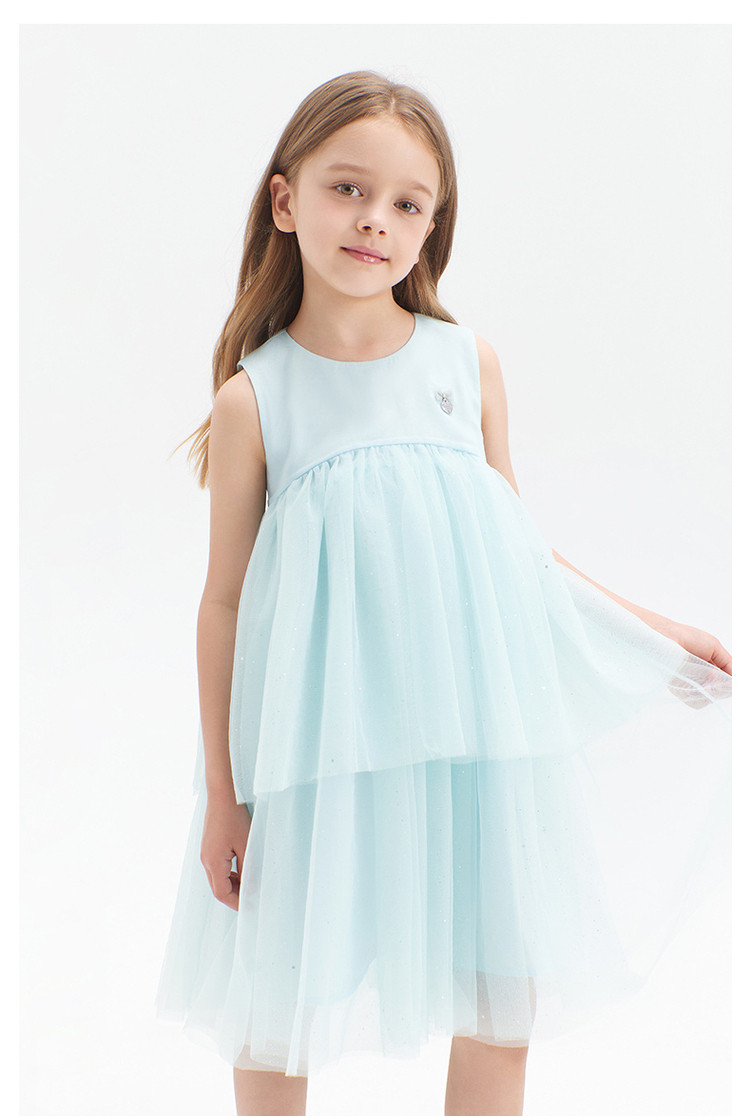 商品名称:小熊童装夏季女童无袖钻纱优雅连衣裙 713153