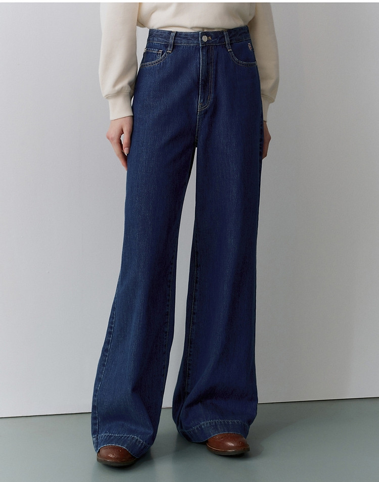 小熊简约时尚宽松阔腿牛仔裤休闲通勤长裤女 186561