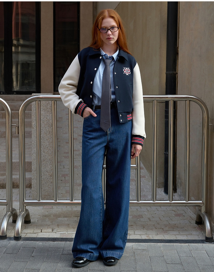 商品名称:小熊简约时尚宽松阔腿牛仔裤休闲通勤长裤女 186561