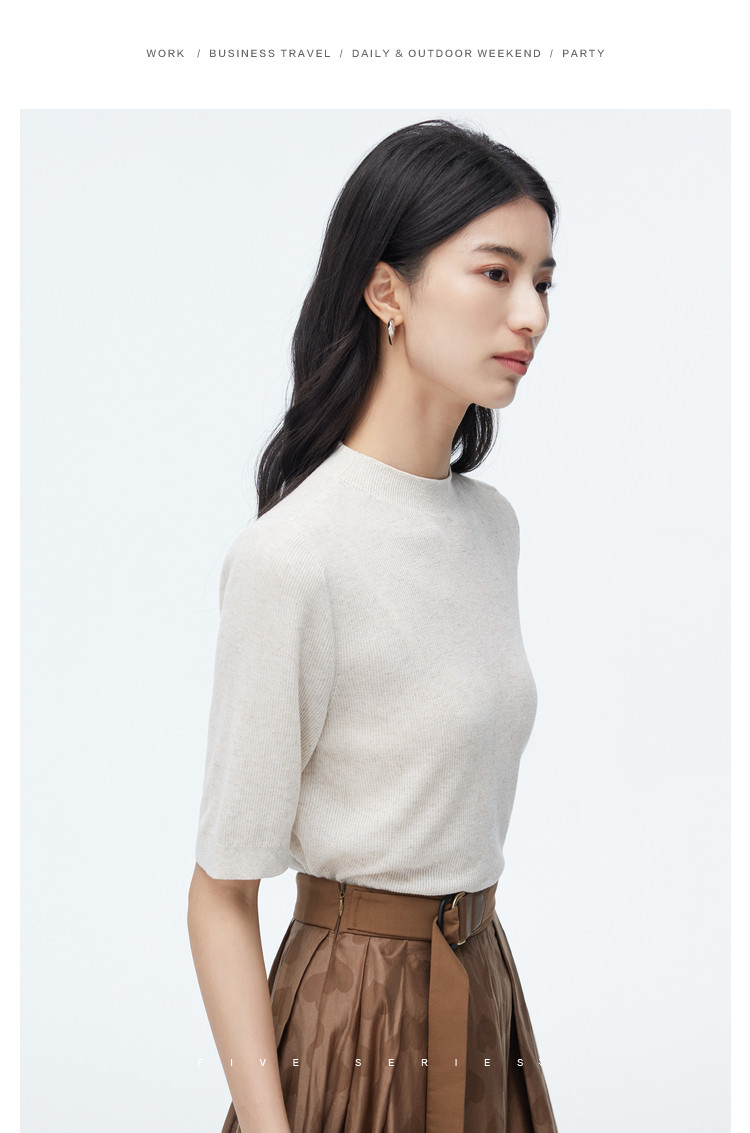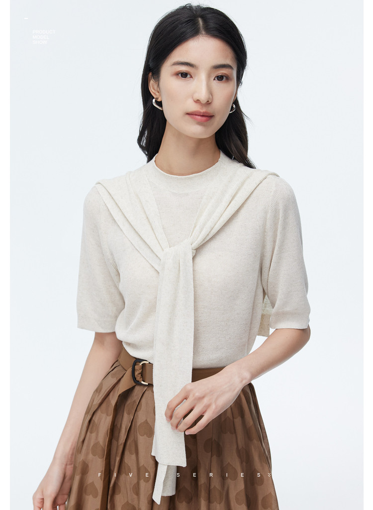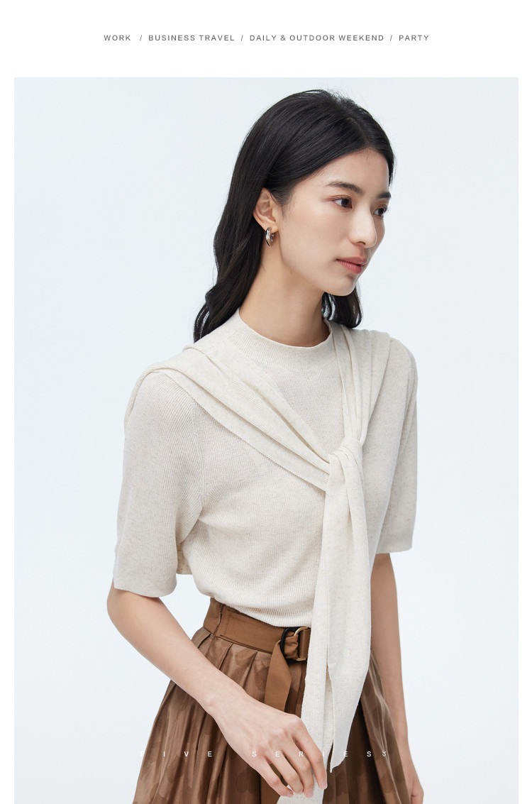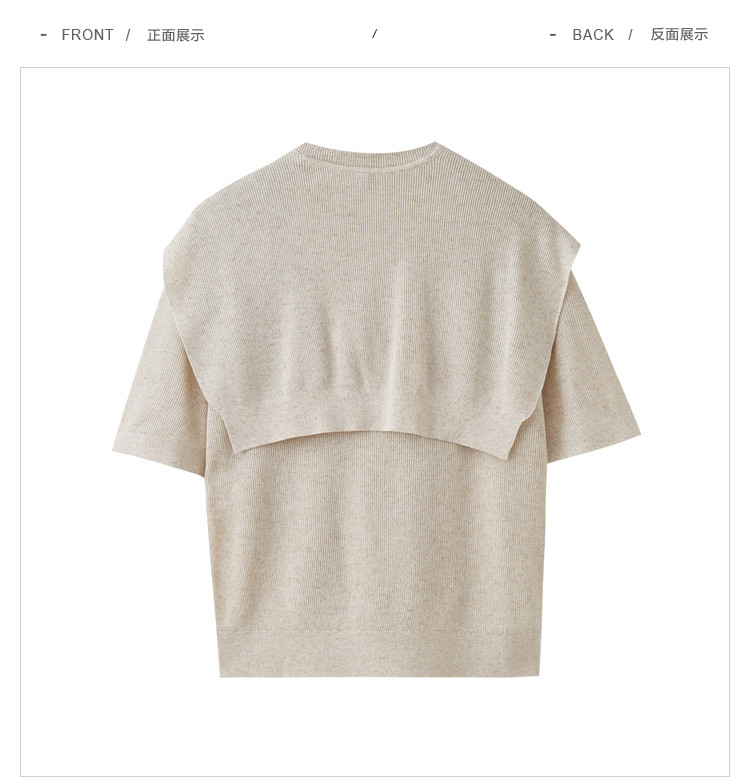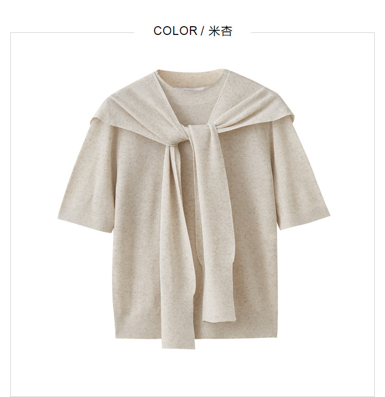 商品名称:气质半高领针织短袖T恤女春夏叠穿时尚披肩设计感纯色半袖上衣 882563