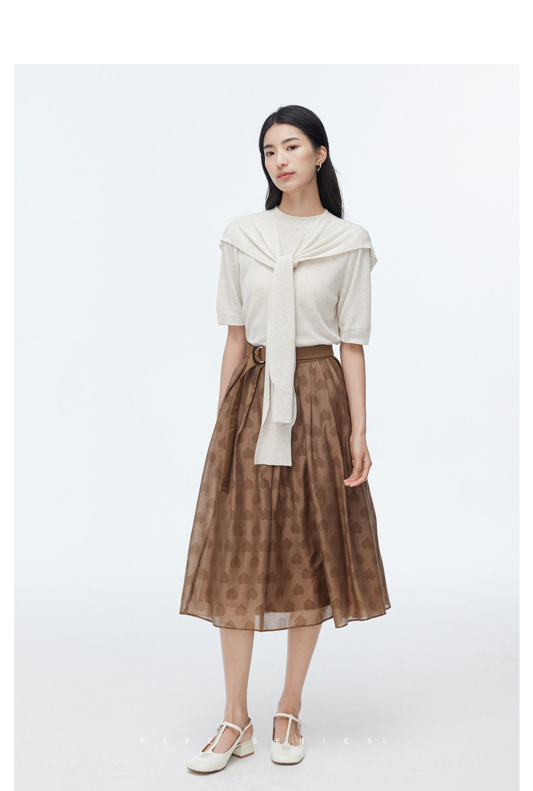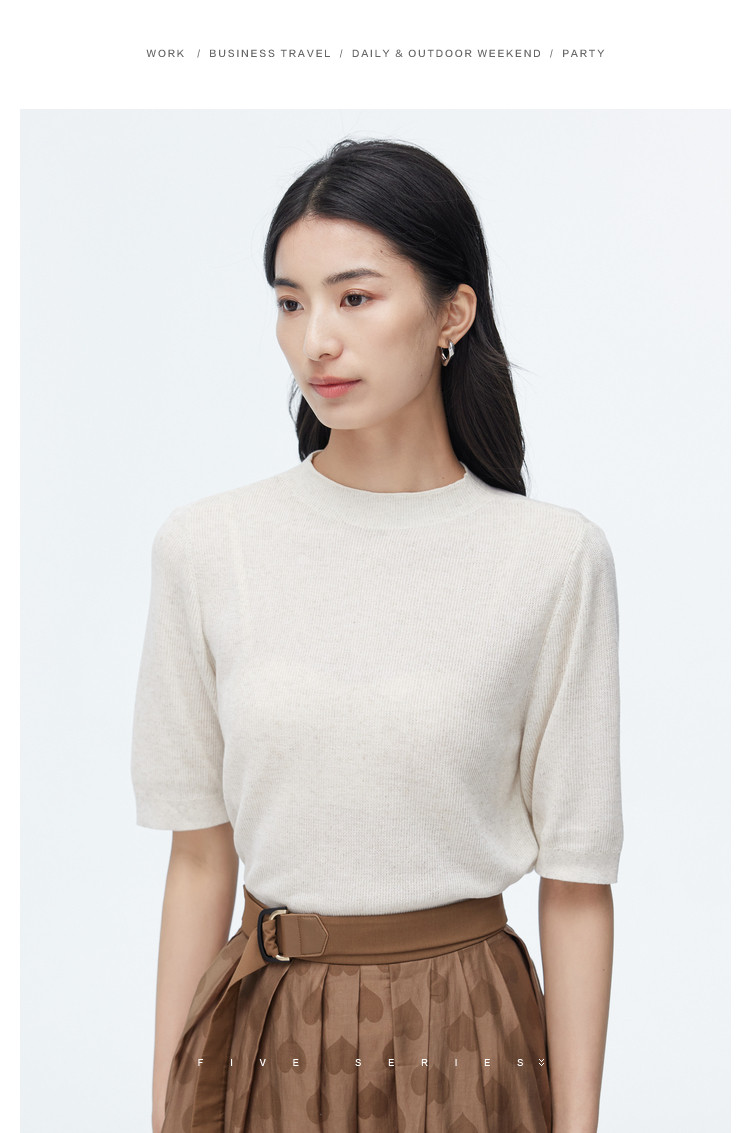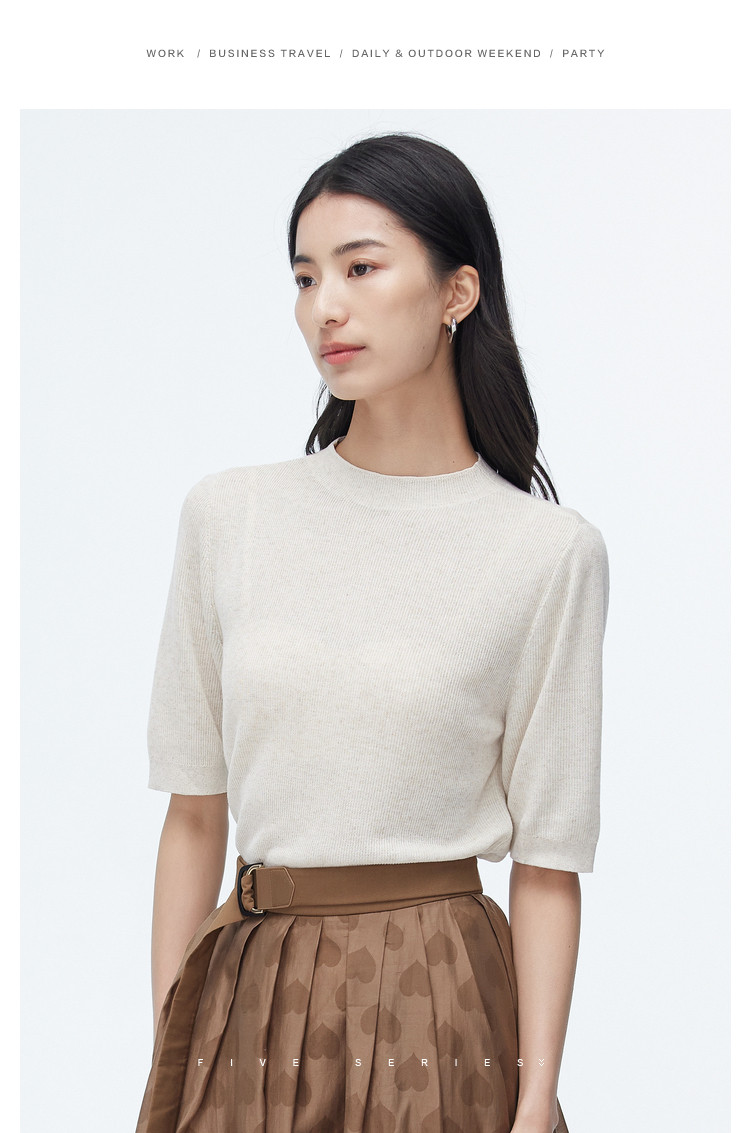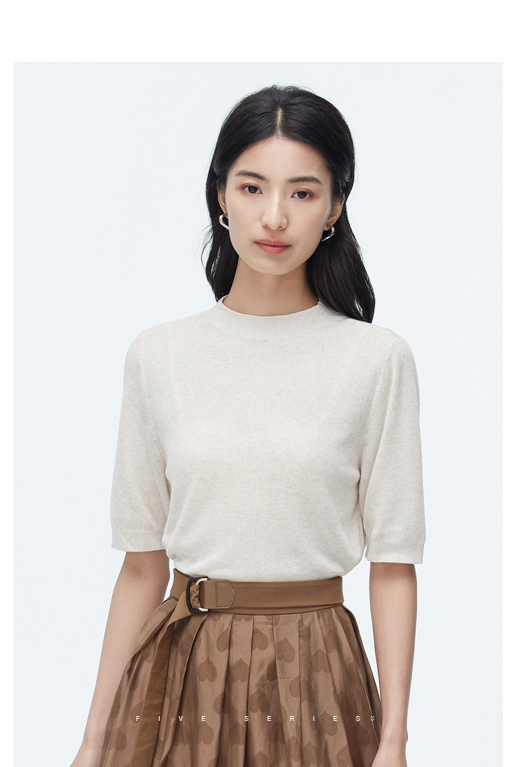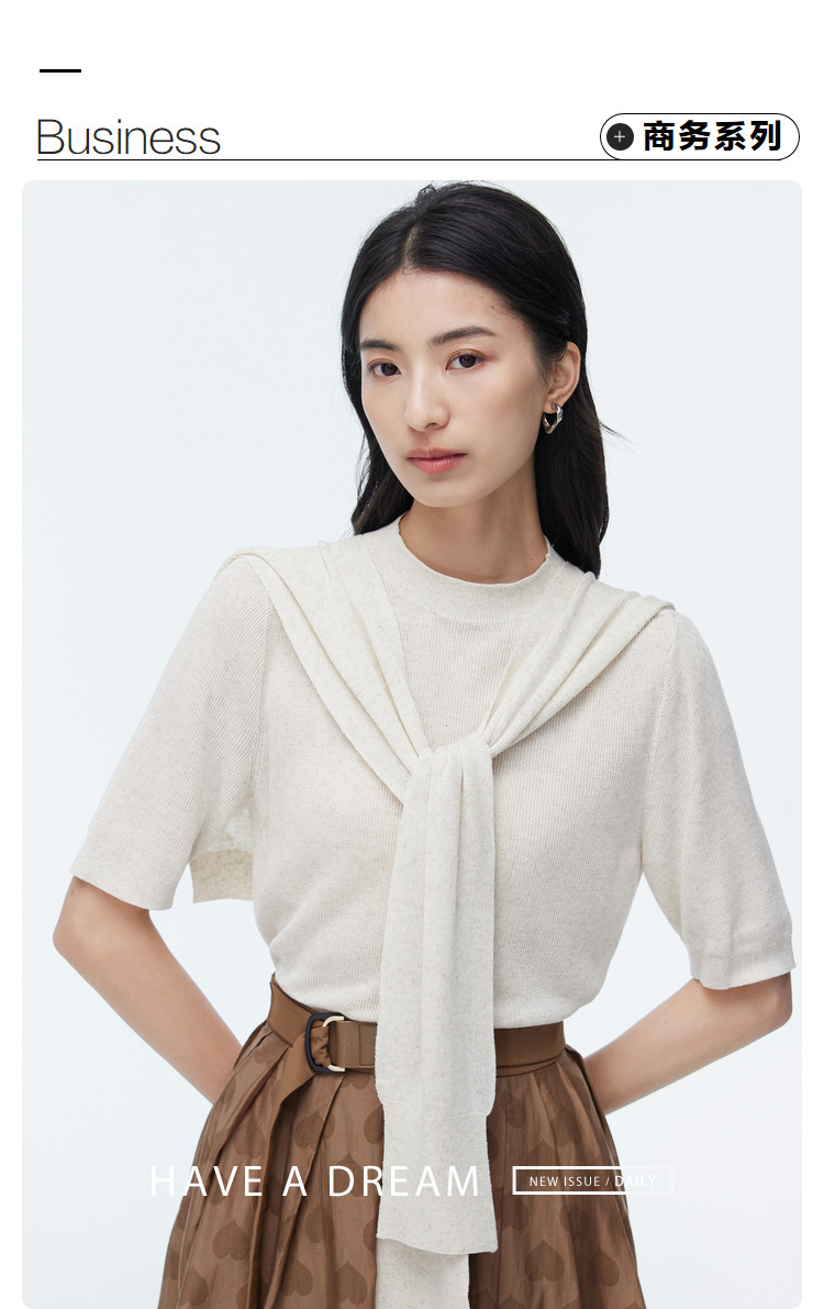 商品名称:气质半高领针织短袖T恤女春夏叠穿时尚披肩设计感纯色半袖上衣 882563
