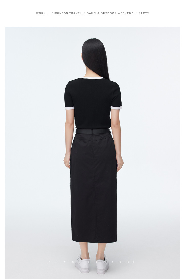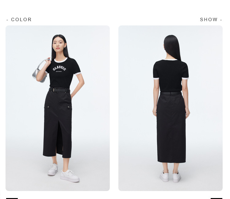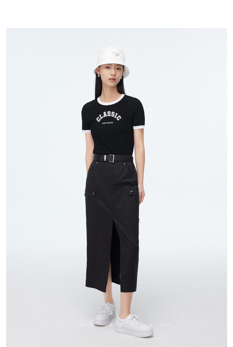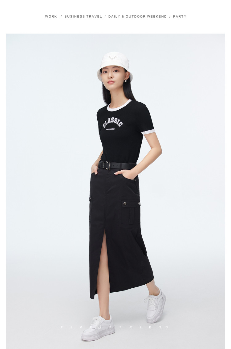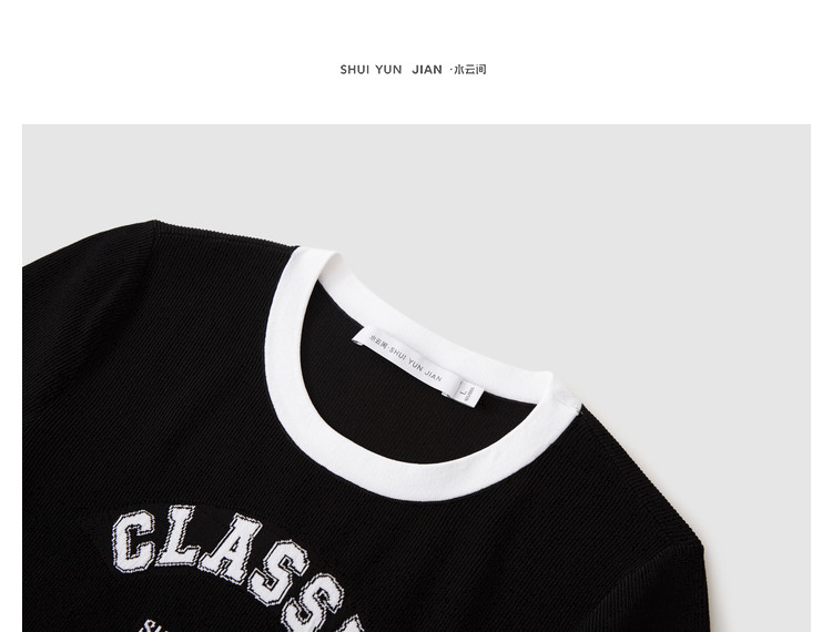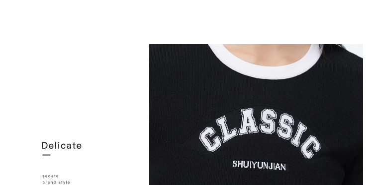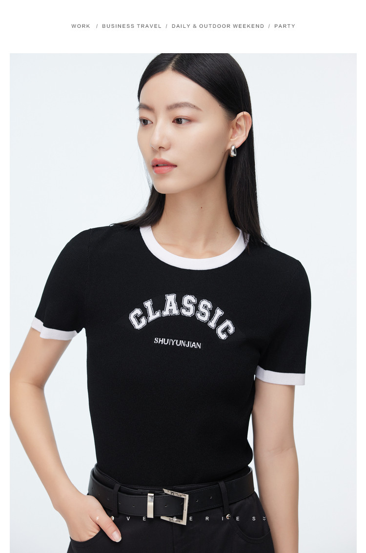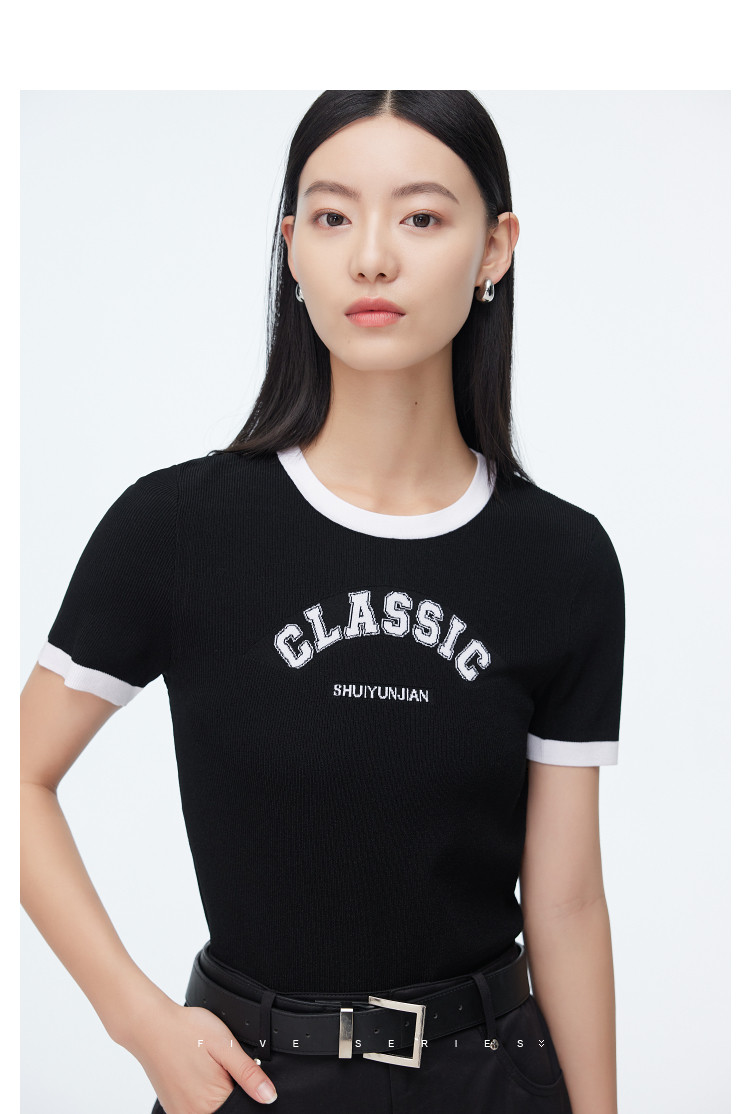 商品名称:黑色圆领短袖T恤女夏款百搭字母印花设计修身休闲上衣女 874371