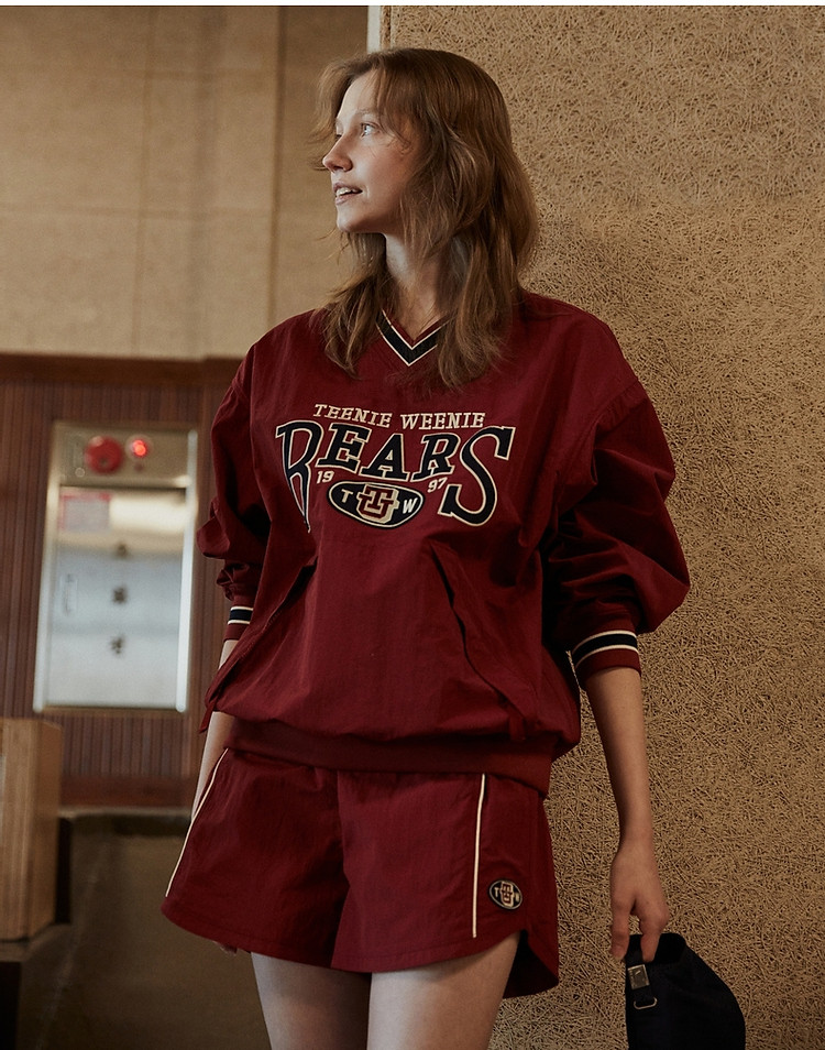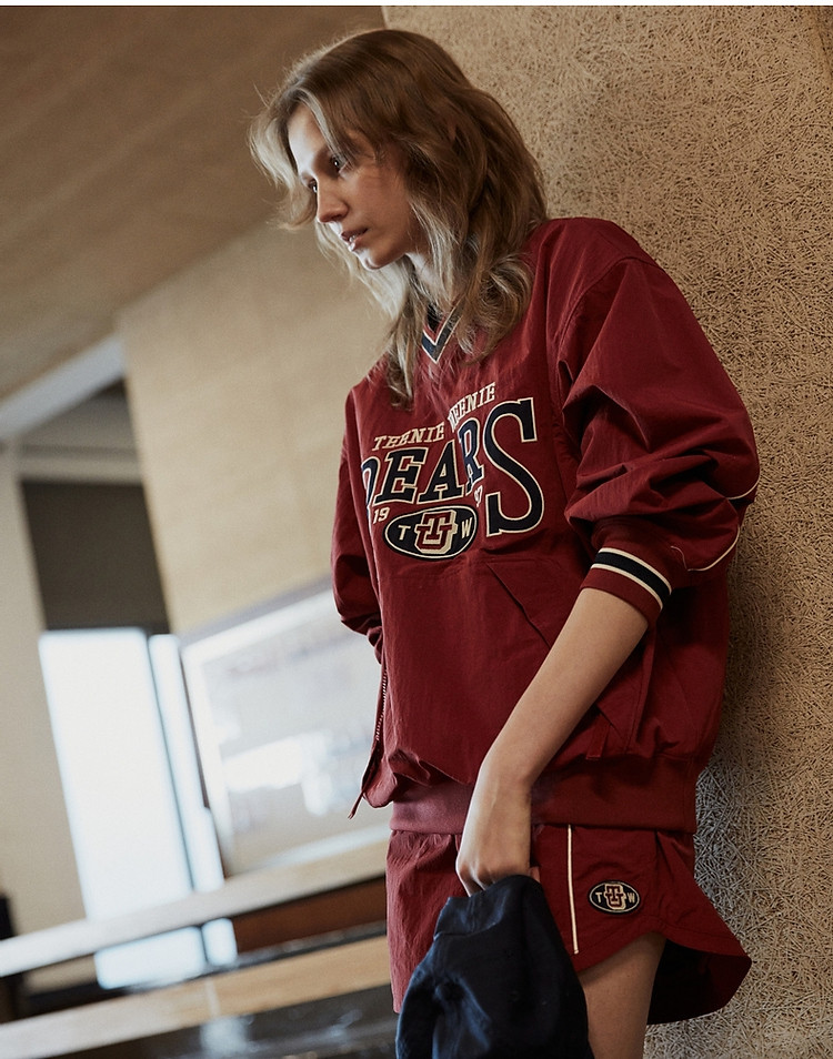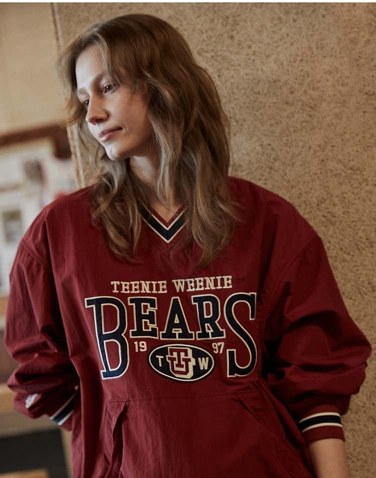 商品名称:小熊复古红色外套宽松落肩卫衣女美式慵懒chic 399617