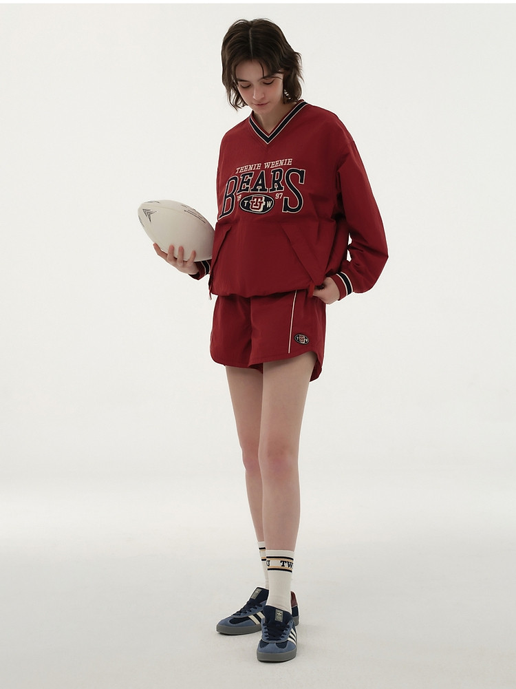 小熊复古红色外套宽松落肩卫衣女美式慵懒chic 399617