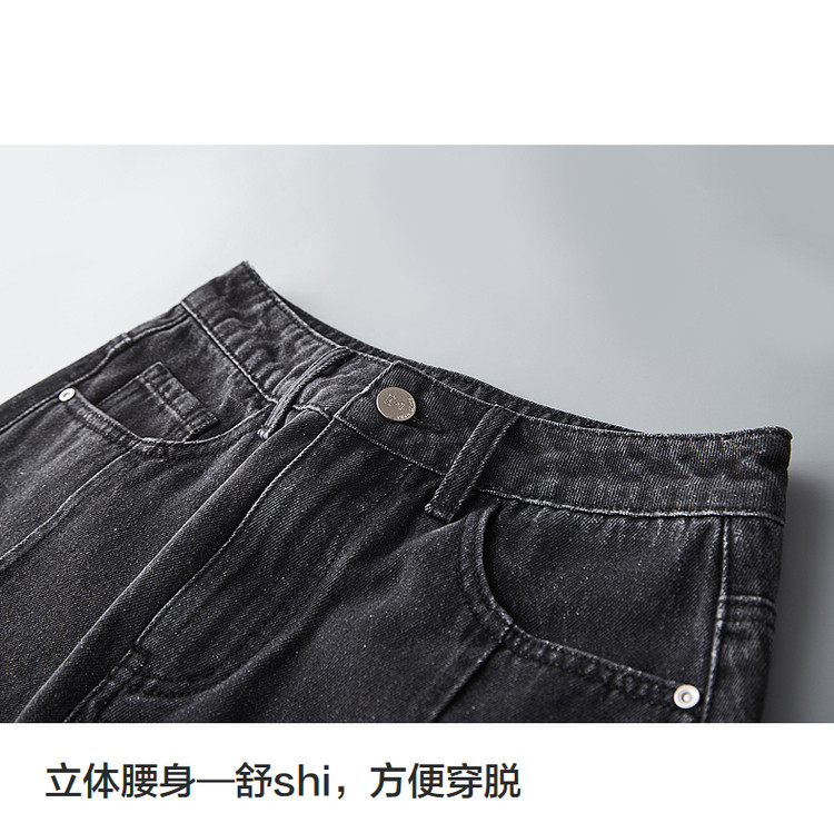 米子旗秋冬女中腰牛仔裤通勤穿搭舒适显瘦九分阔腿裤长裤 269146