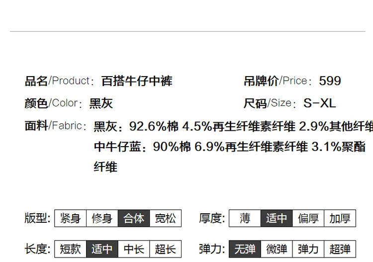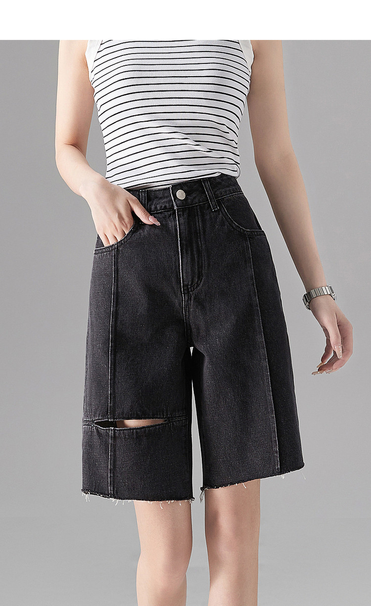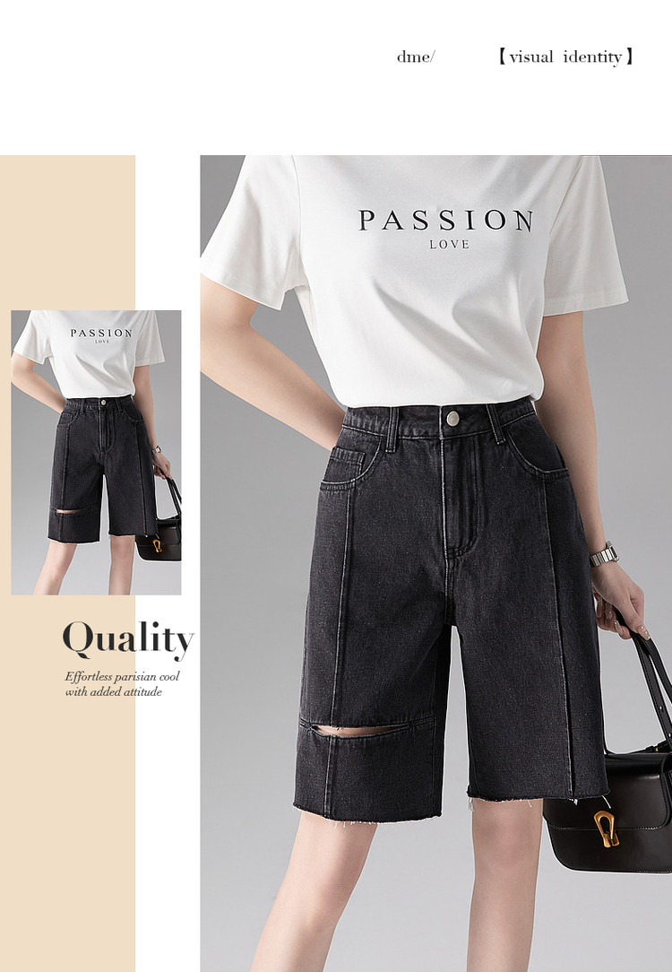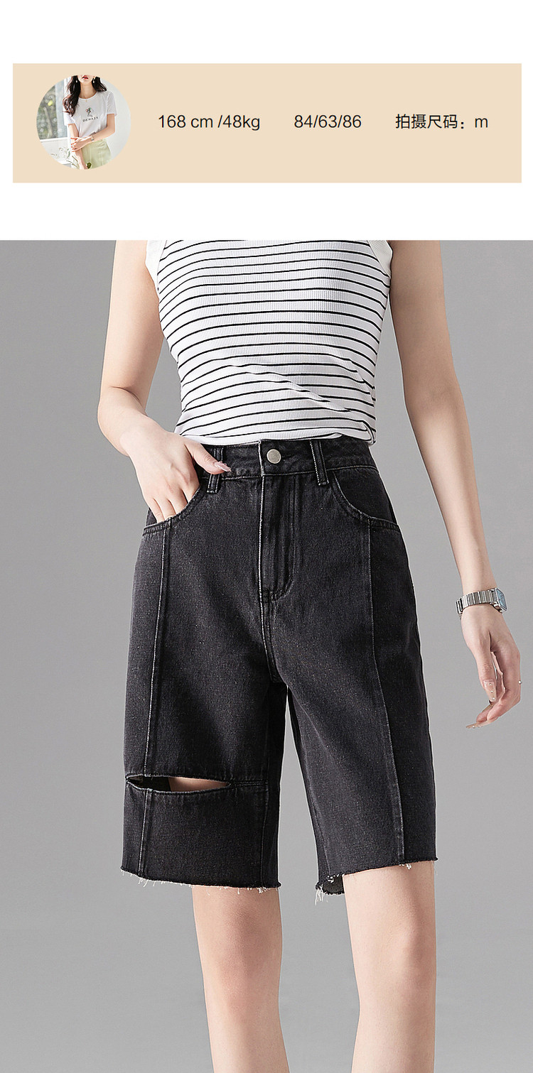 商品名称:【棉质破洞牛仔五分裤】夏季割破直筒女裤子女式牛仔短裤 660993