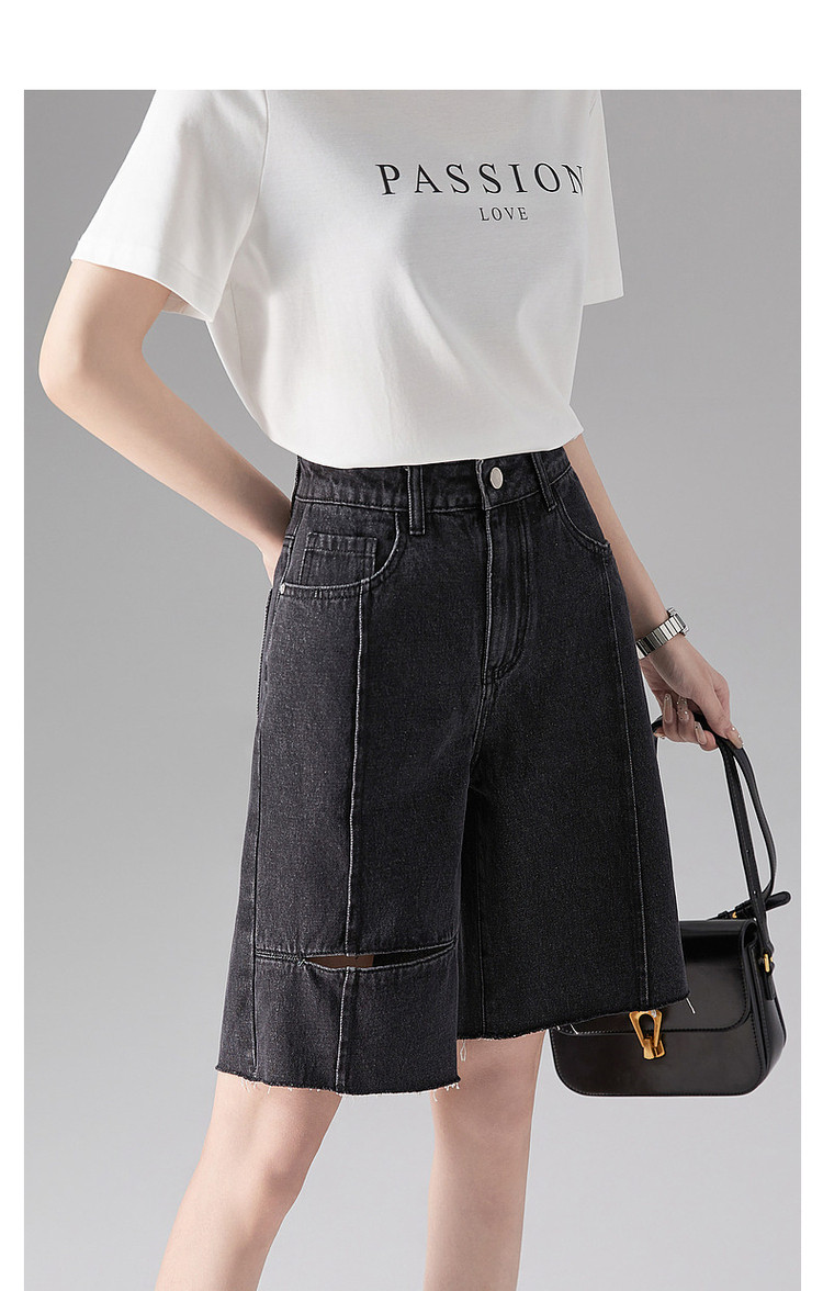 【棉质破洞牛仔五分裤】夏季割破直筒女裤子女式牛仔短裤 660993