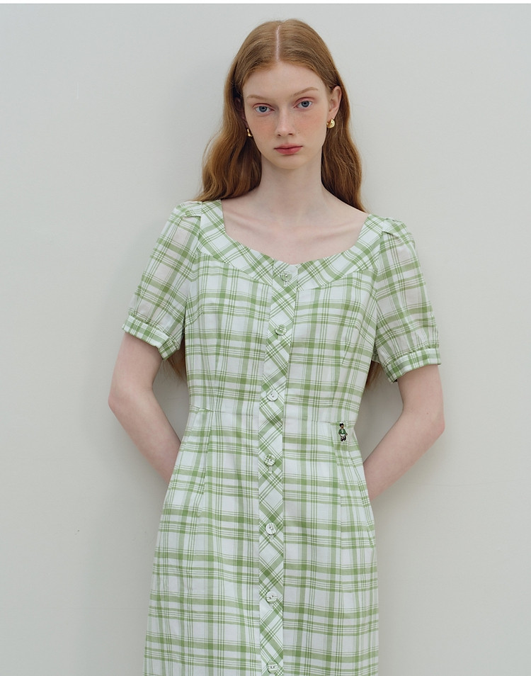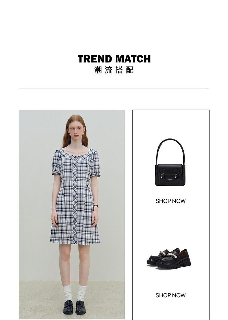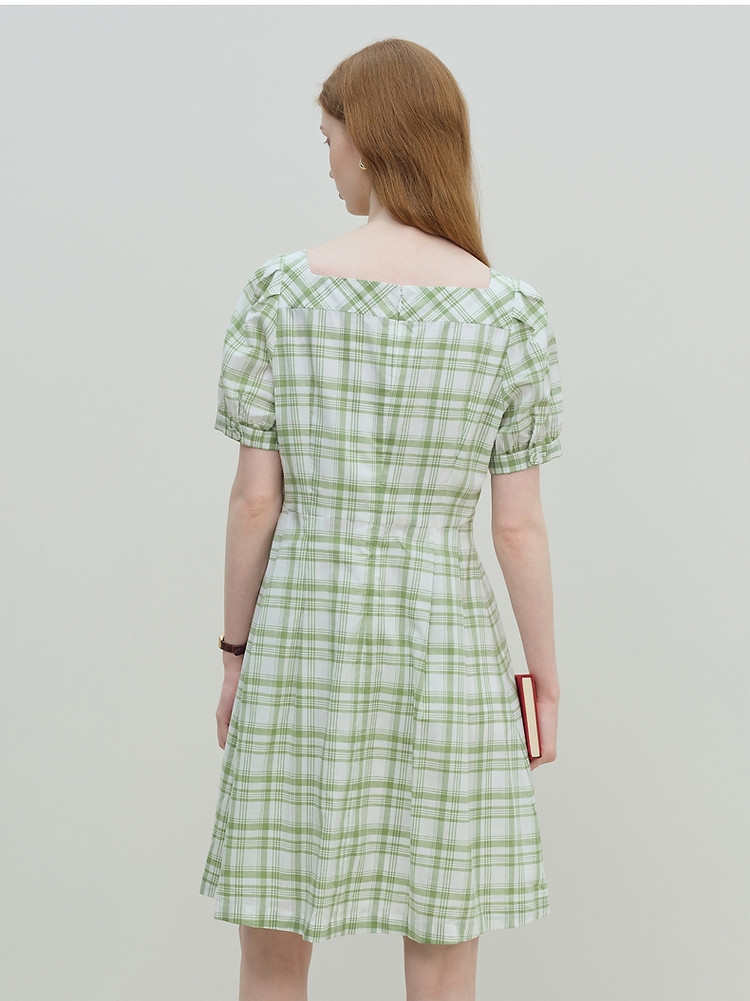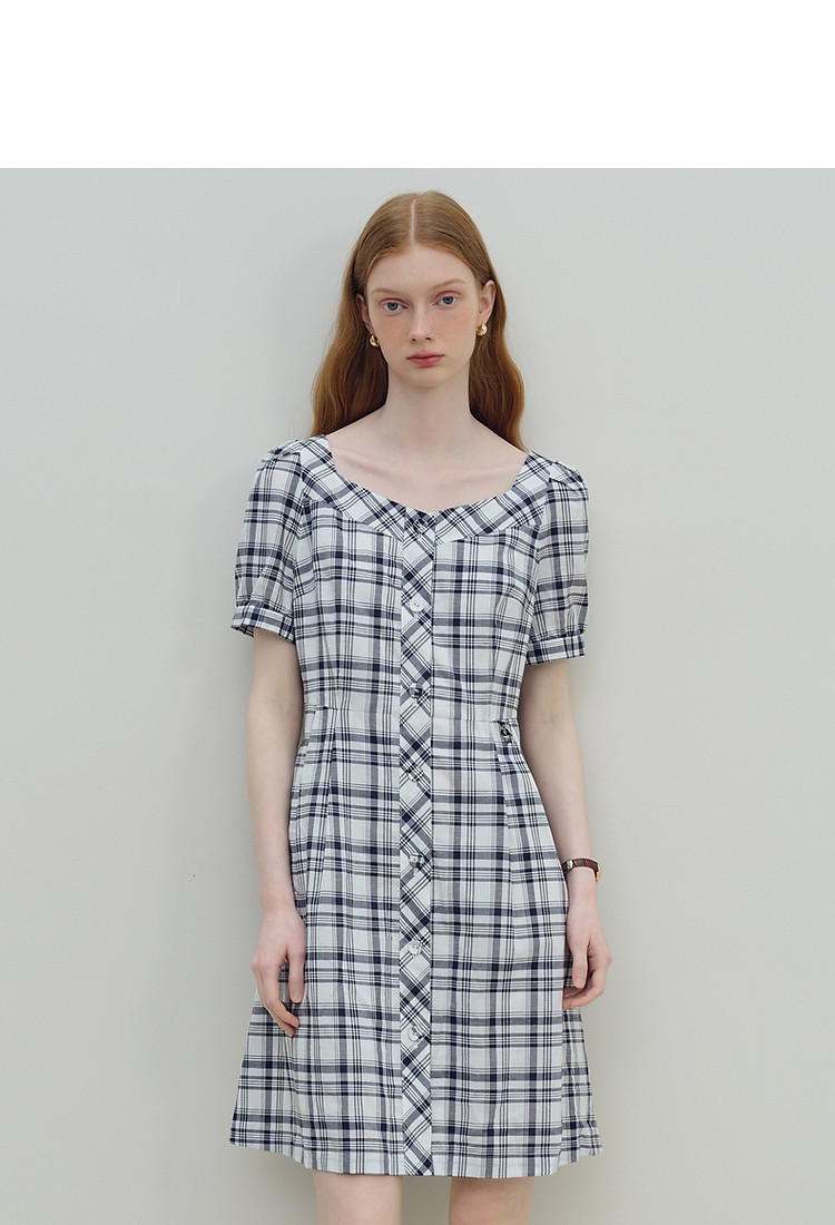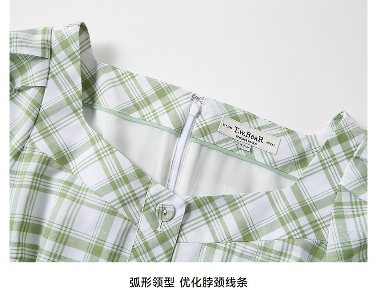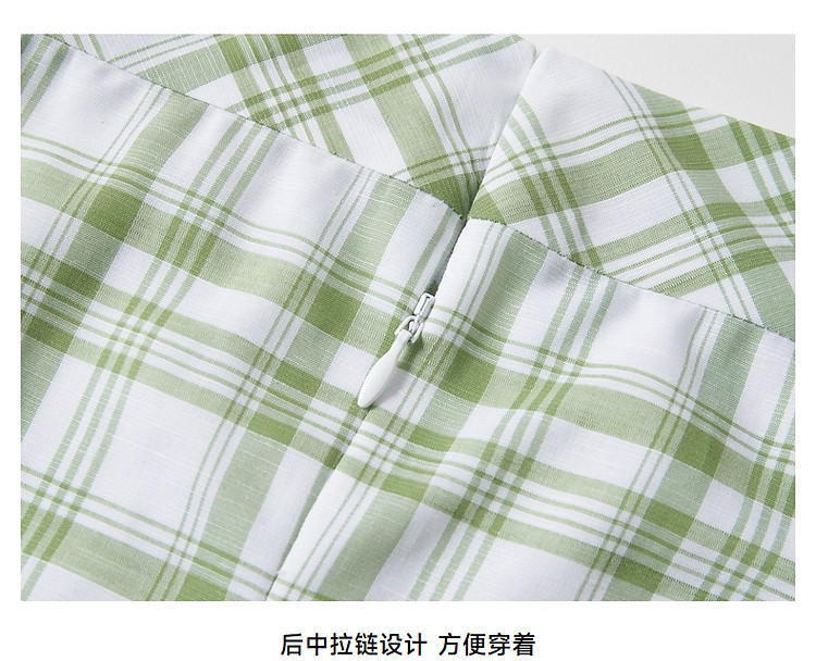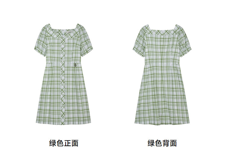 商品名称:连衣裙女夏季复古气质格纹短袖连衣裙裙子女 621889