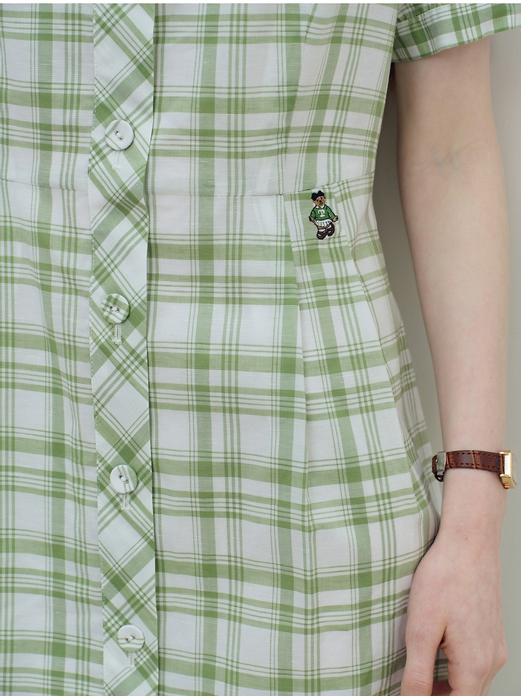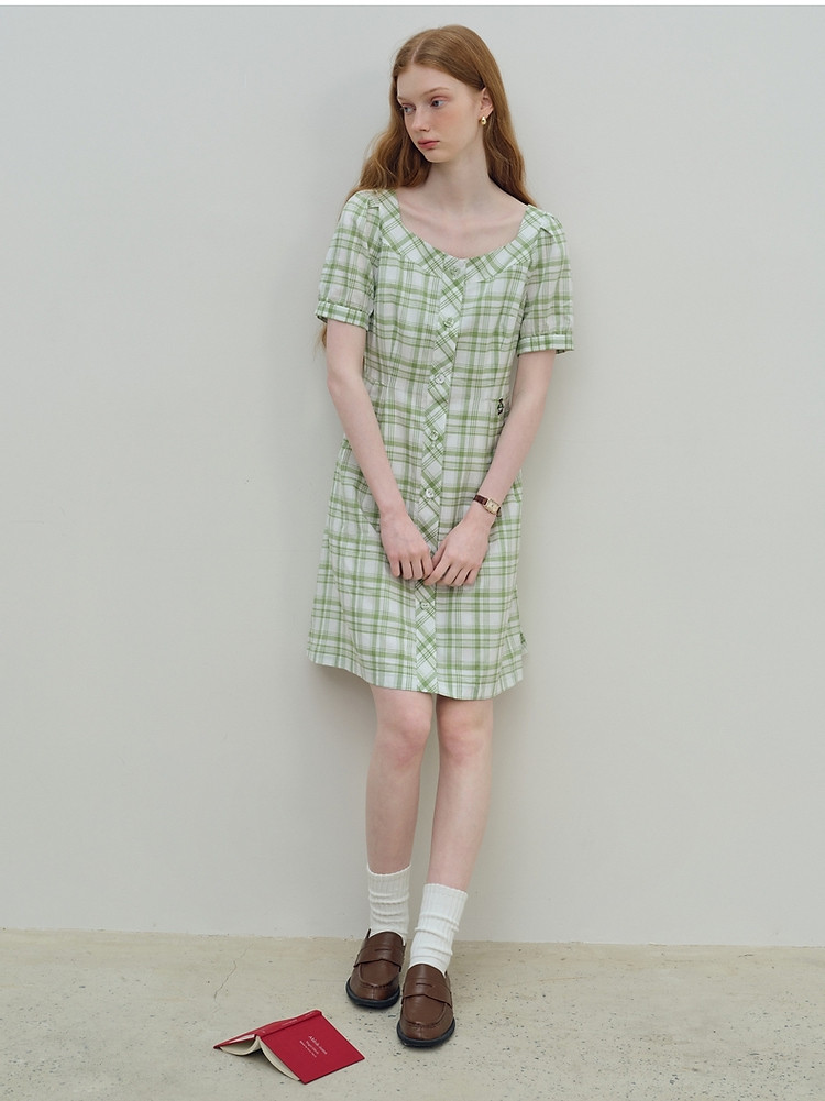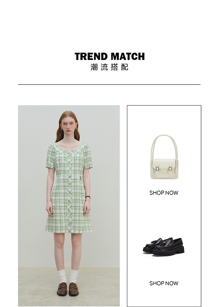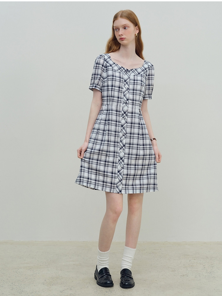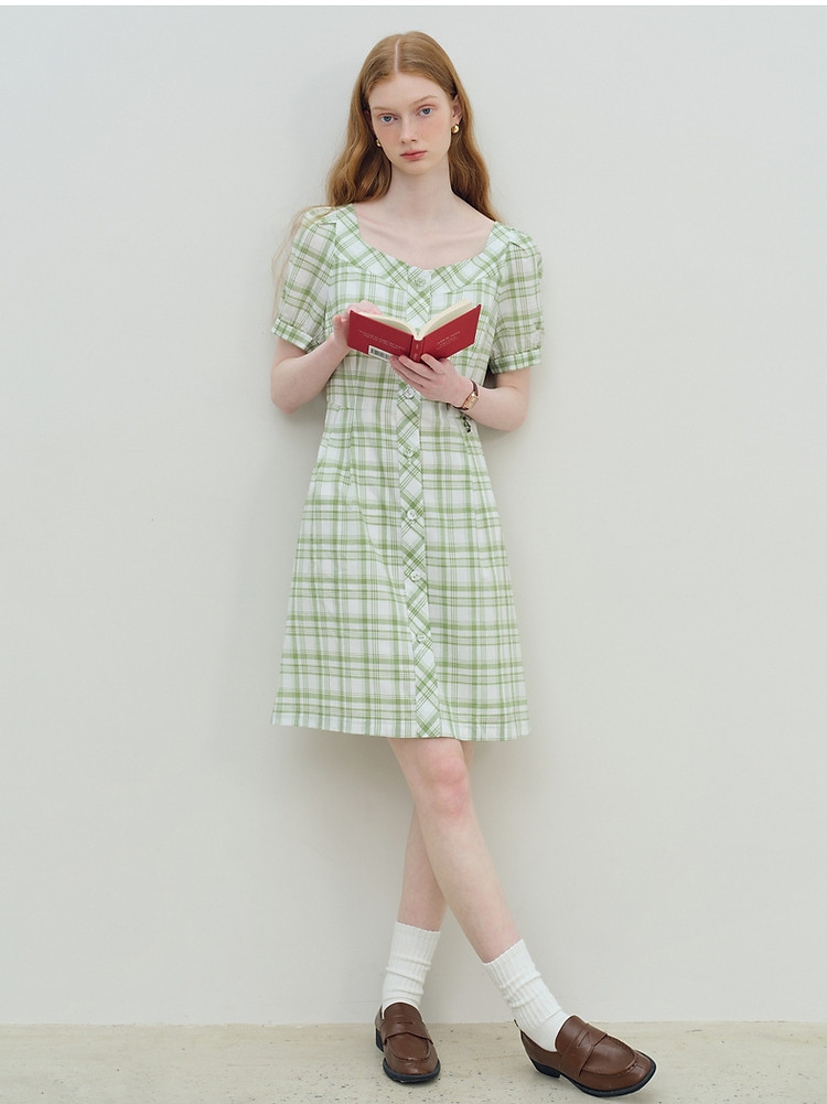 商品名称:连衣裙女夏季复古气质格纹短袖连衣裙裙子女 621889
