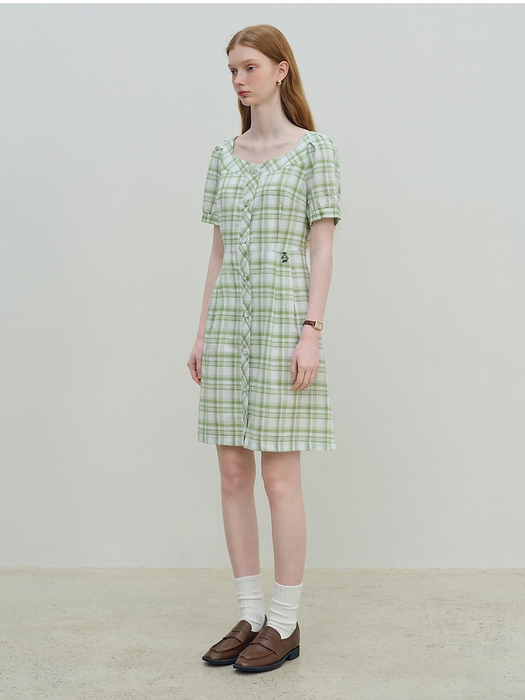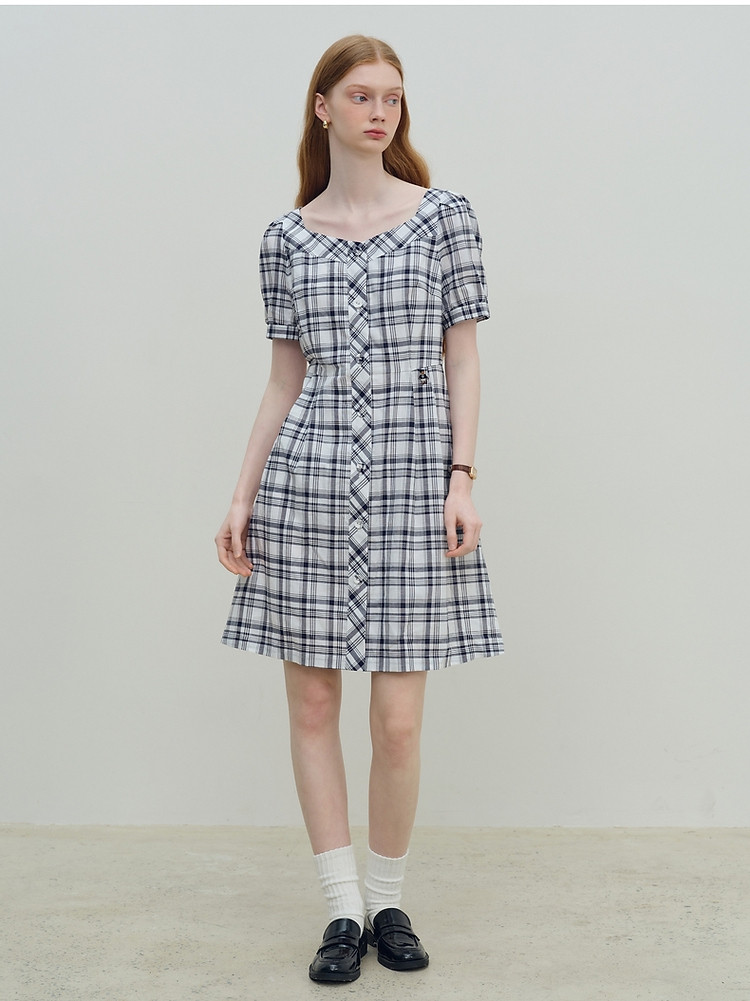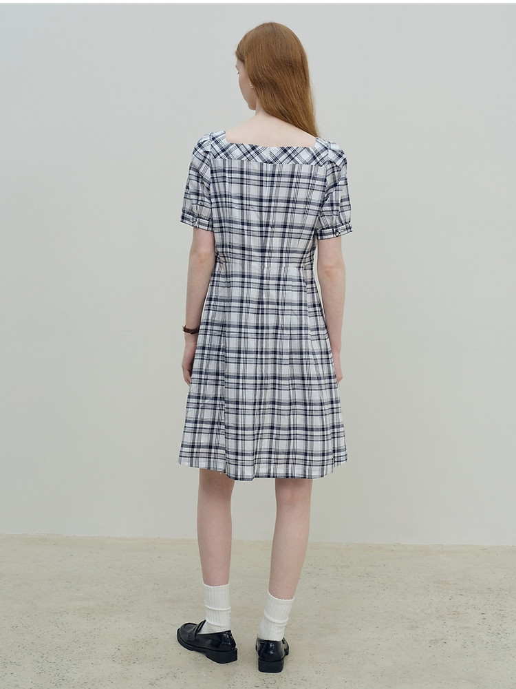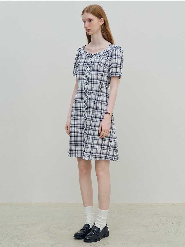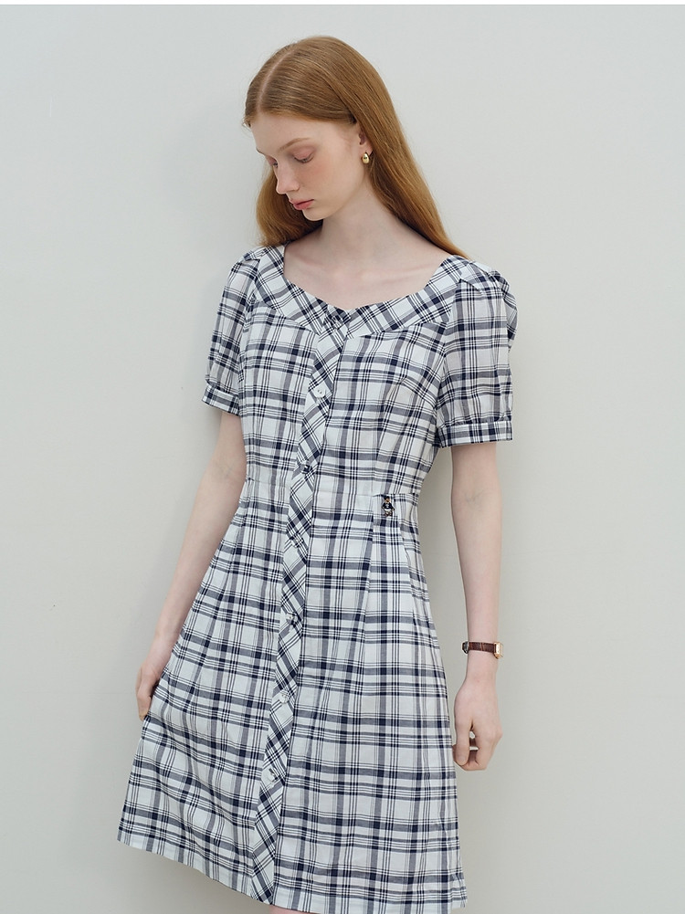 连衣裙女夏季复古气质格纹短袖连衣裙裙子女 621889