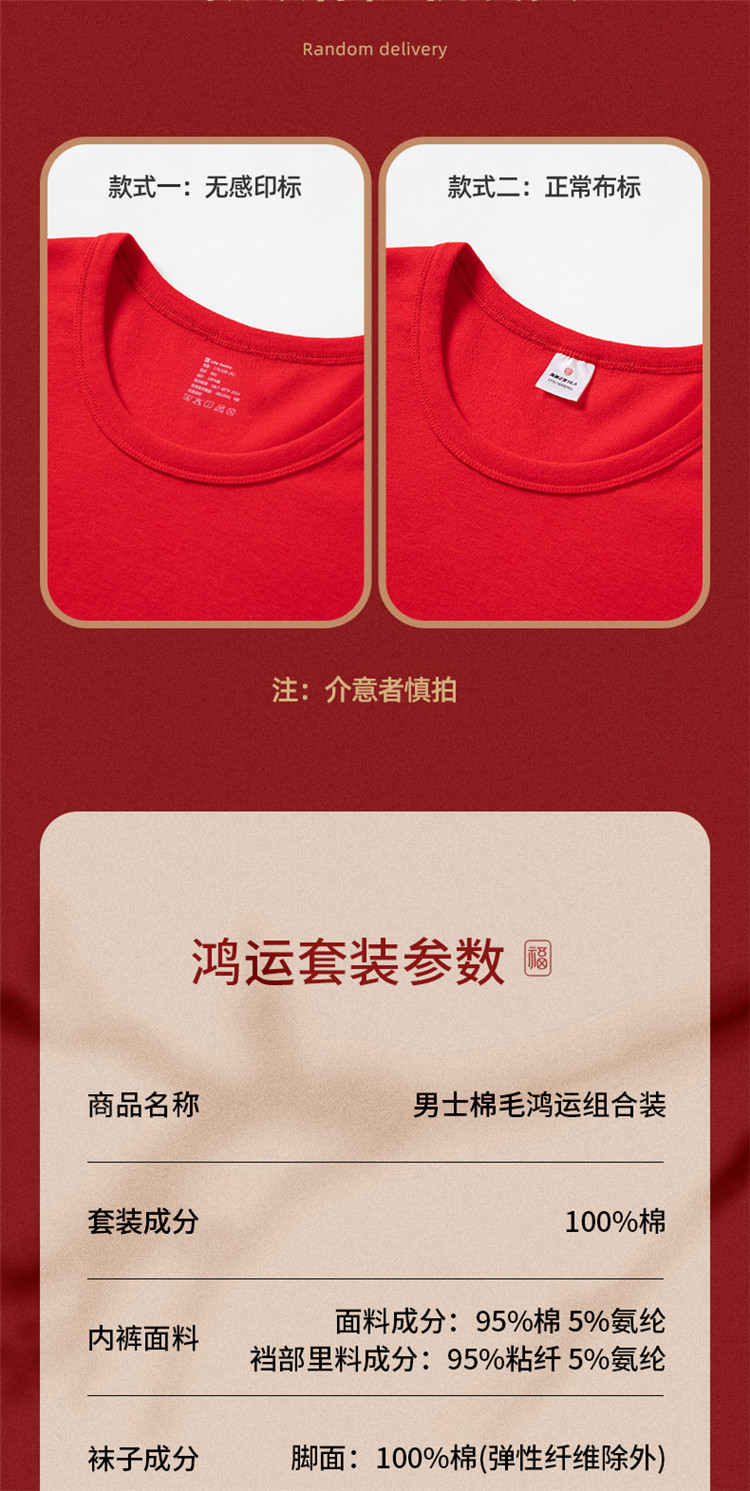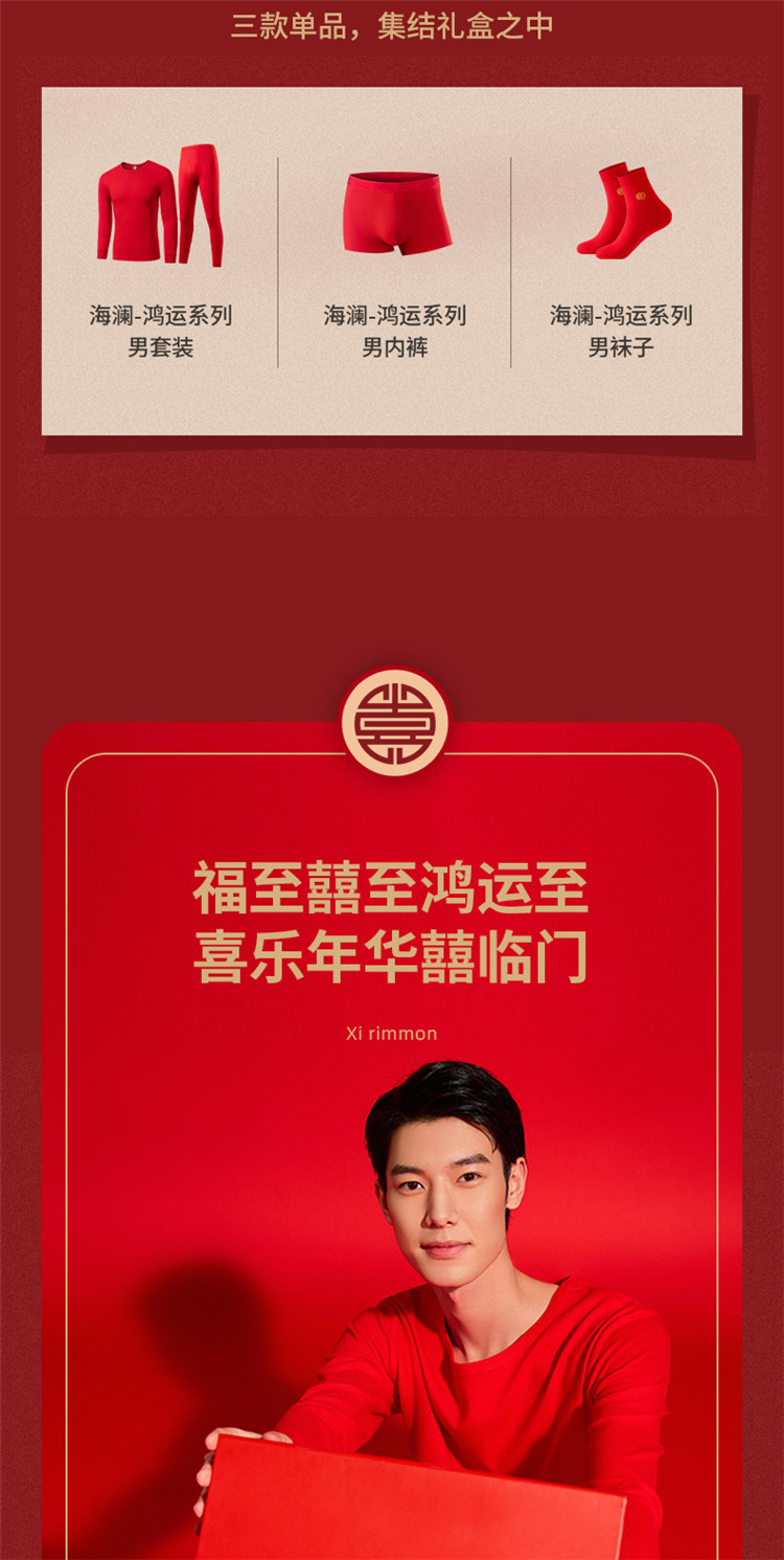 商品名称:【鸿运礼盒】3件套男士薄款保暖内衣套装蛇年本命年纯棉秋衣秋裤 513562