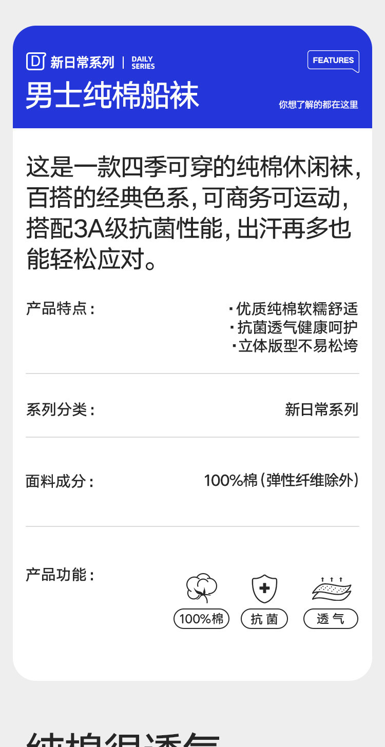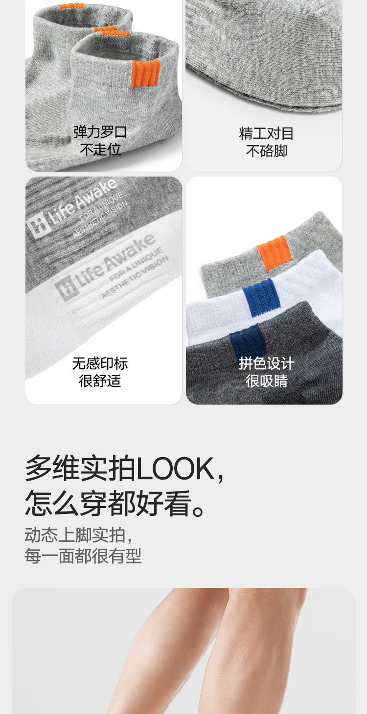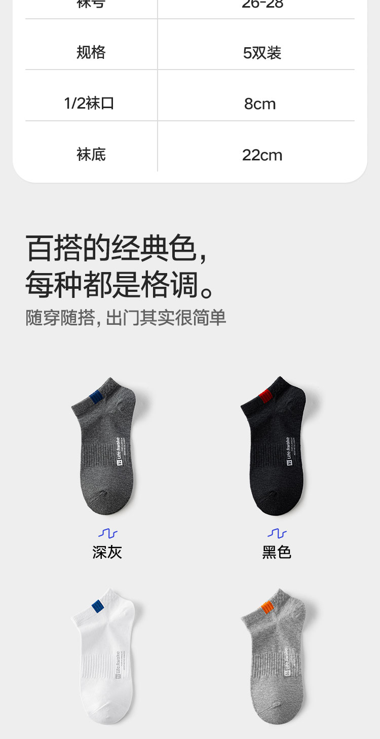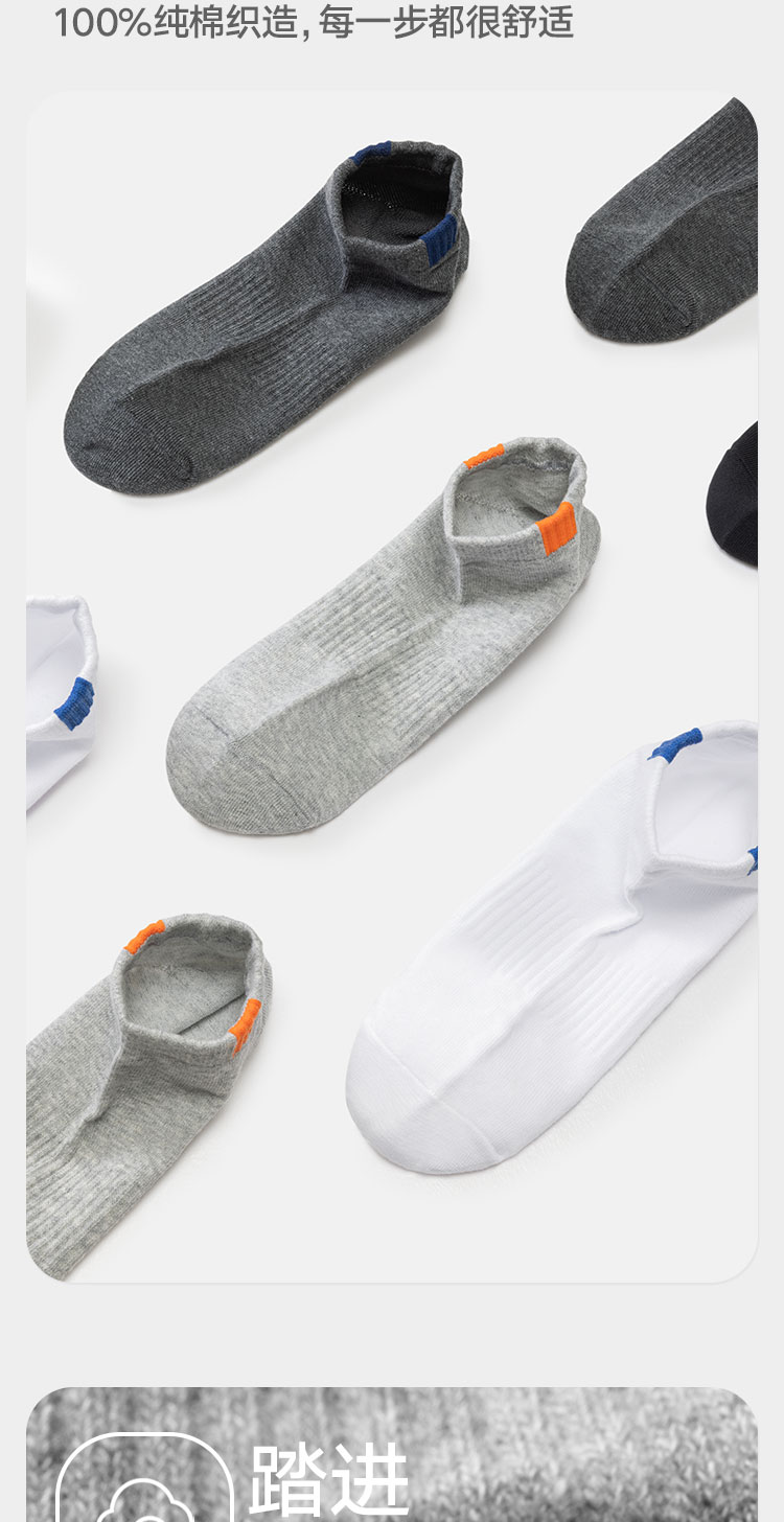 商品名称:【100%纯棉】5双装男士袜子防臭吸汗短袜男袜抑菌运动袜棉袜 742298